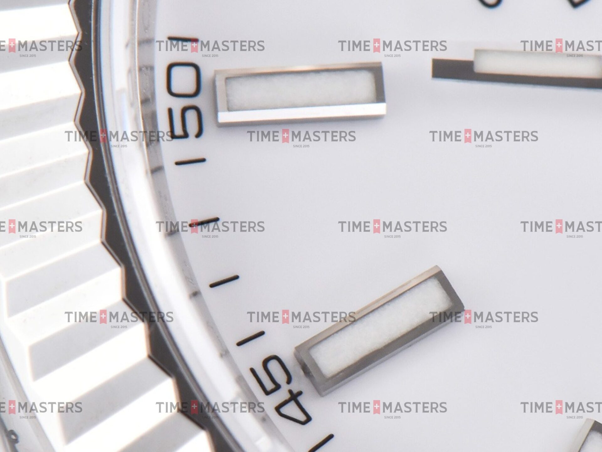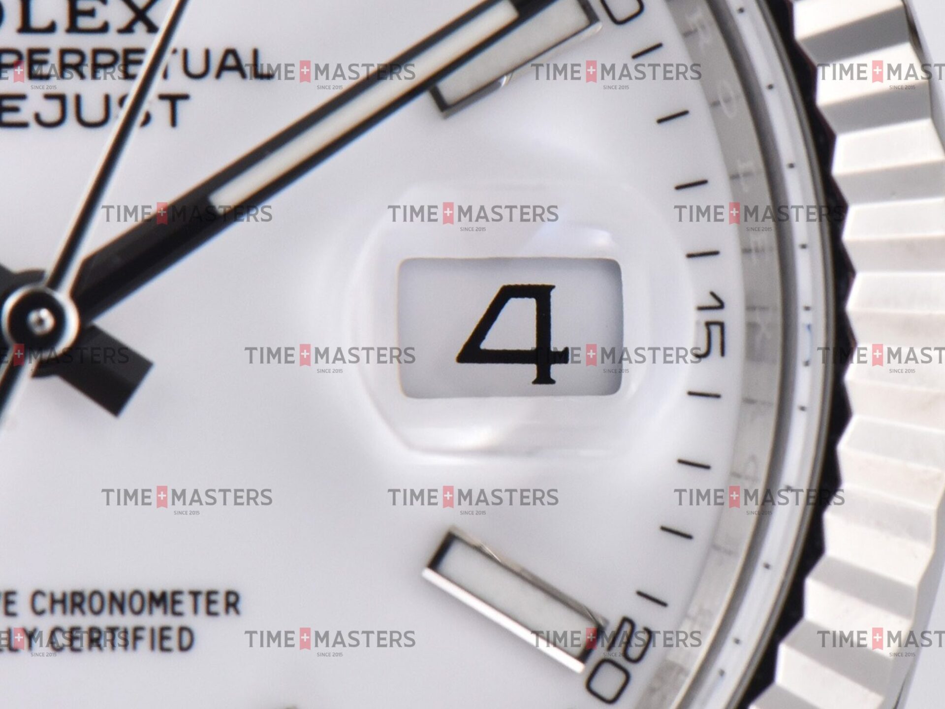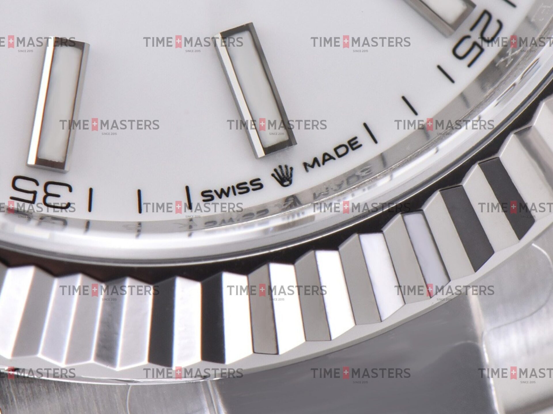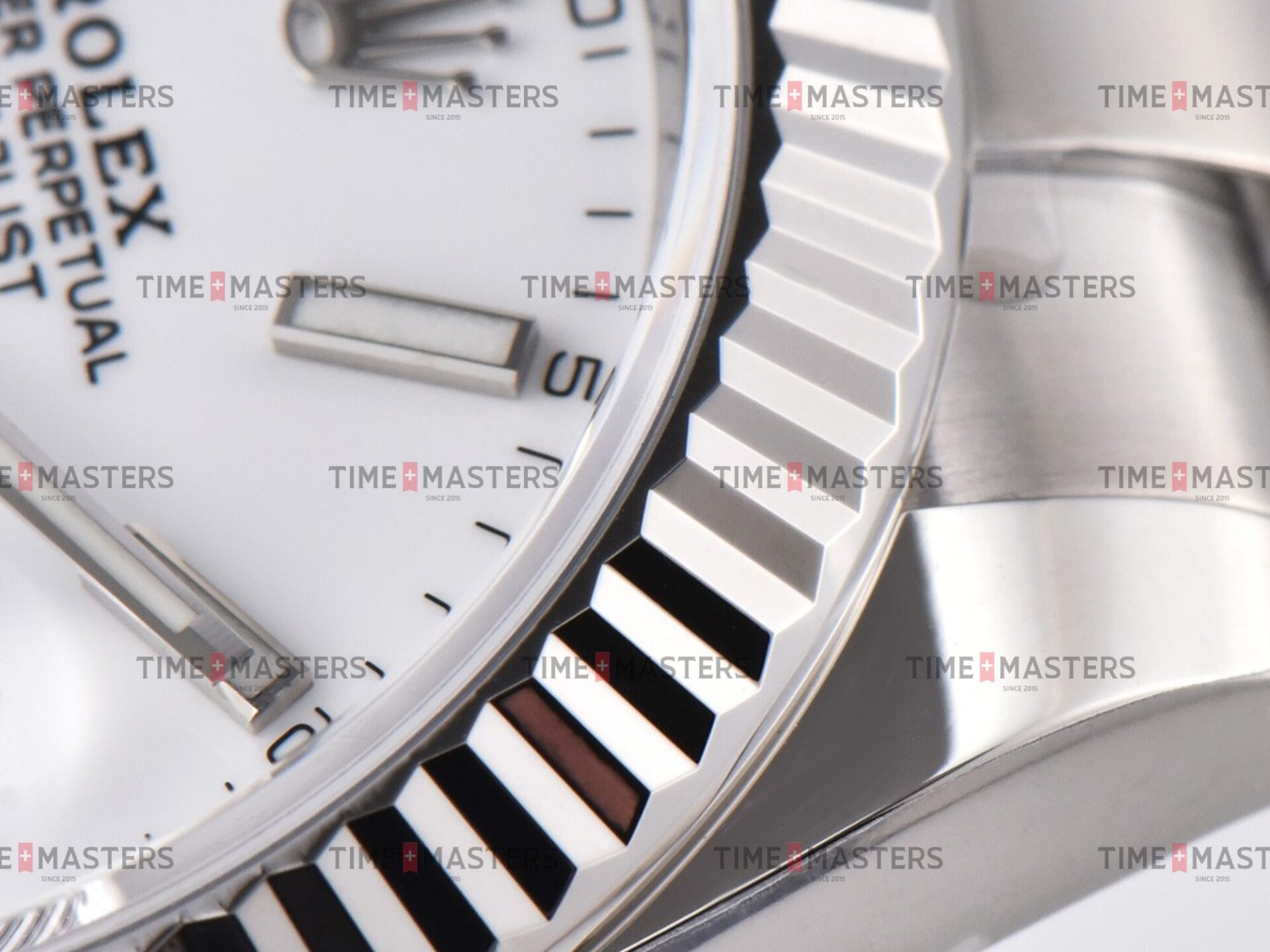 Rolex Datejust – 41 mm – פלדה רצועת אויסטר באזל משונן לוח לבן גימור קצה