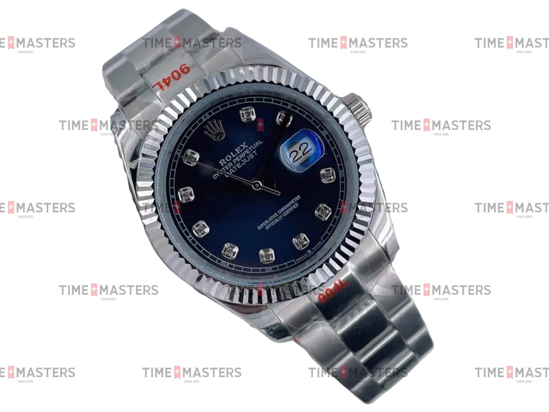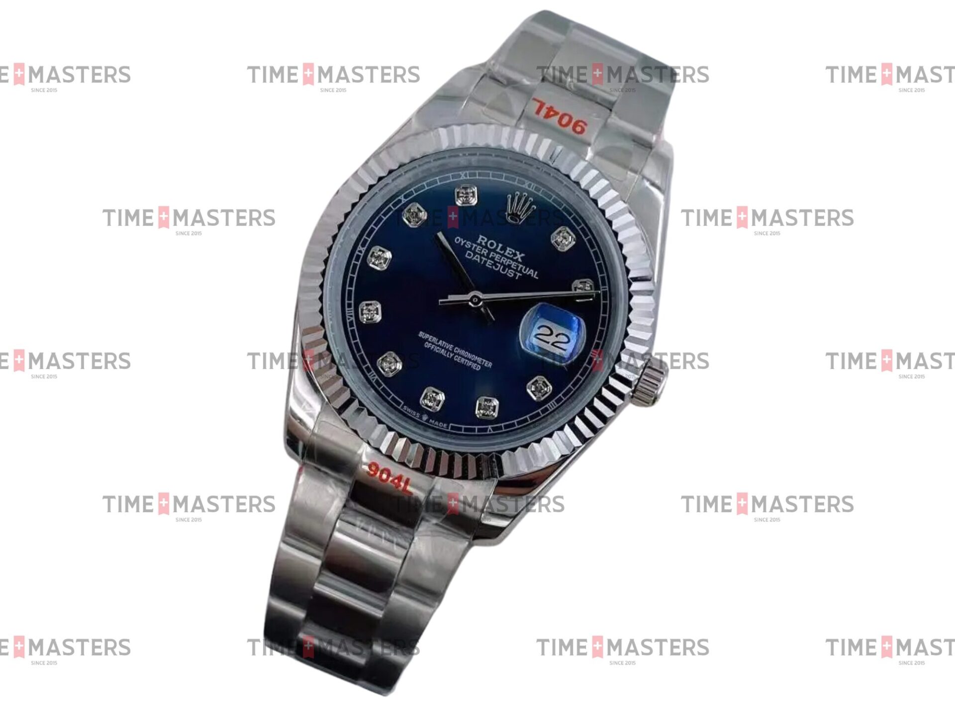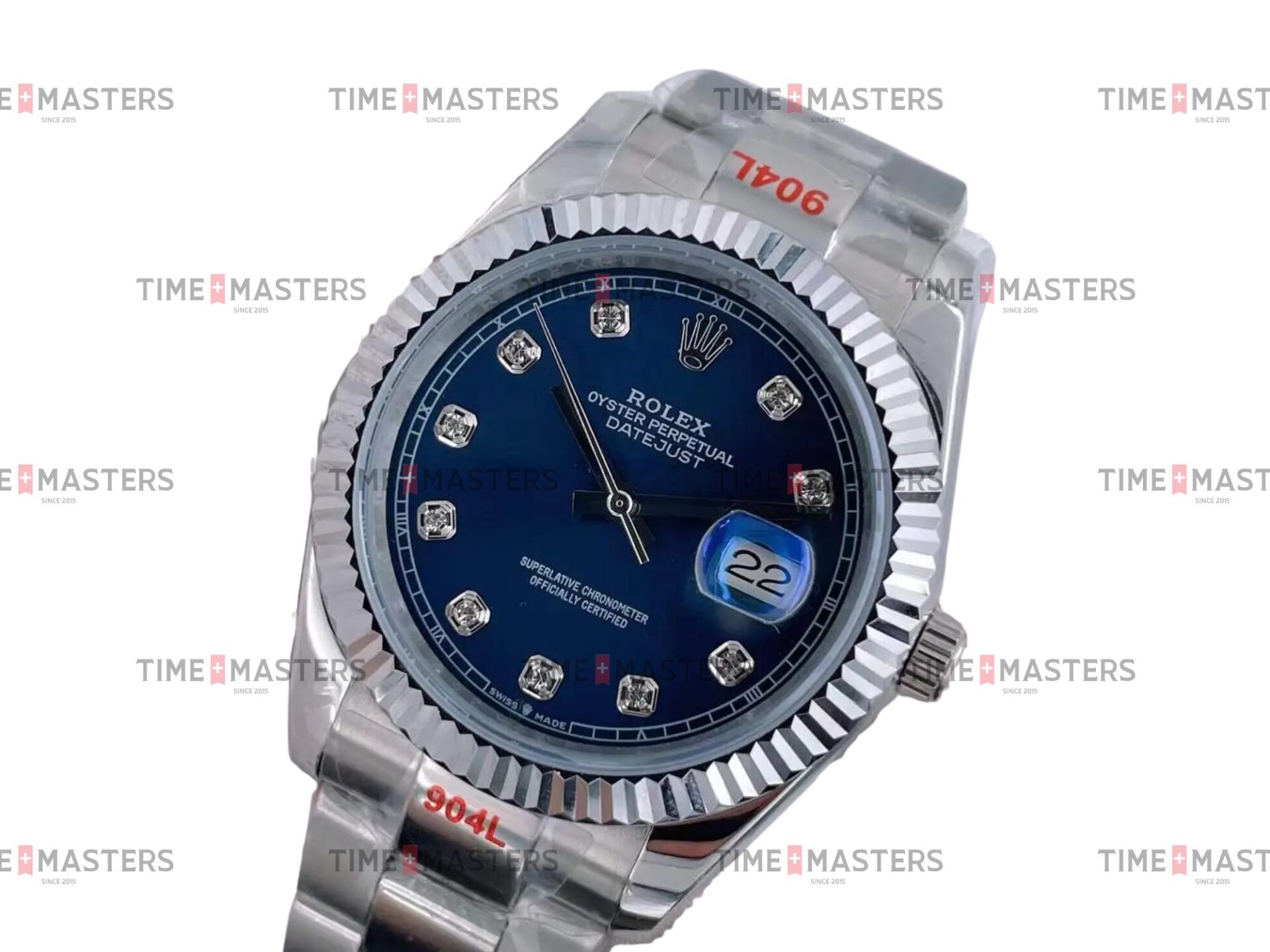 Rolex Datejust – 41 mm – פלדה רצועת אויסטר באזל משונן לוח כחול יהלומים גימור שוויצרי