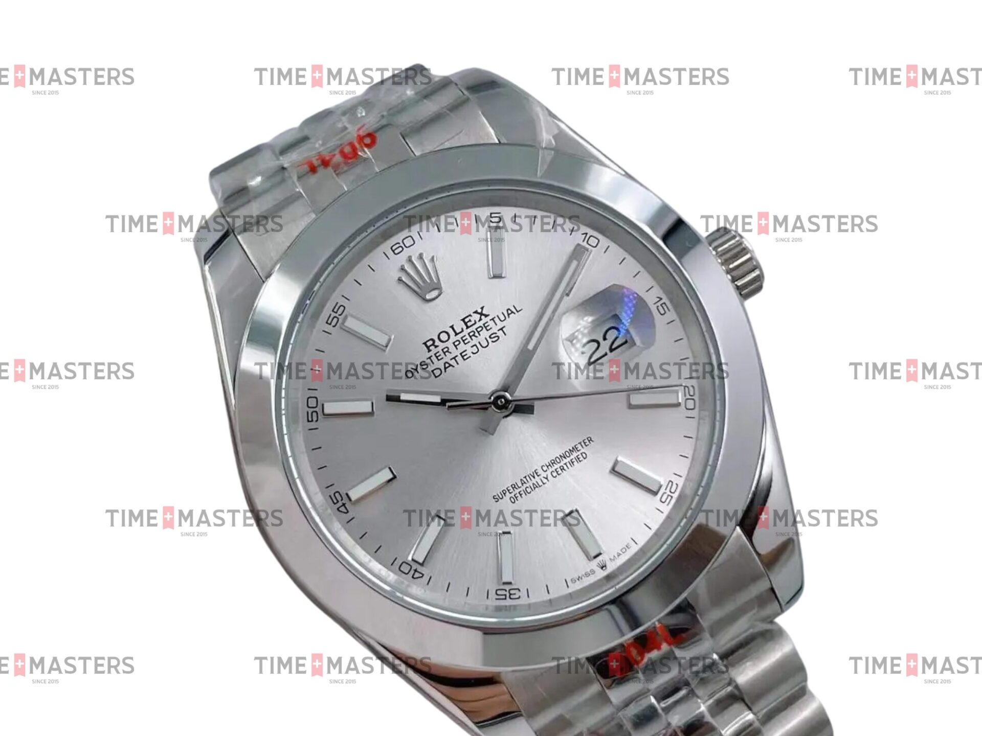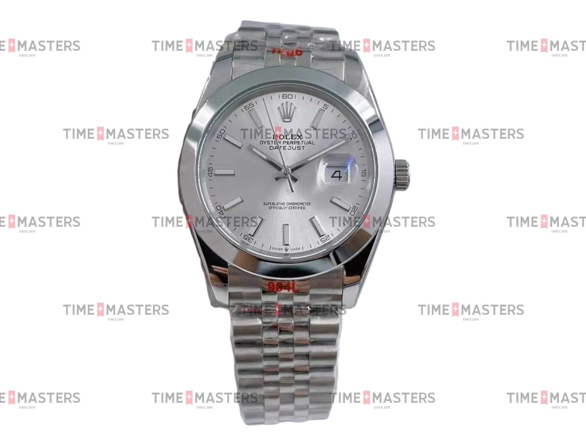 Rolex Datejust – 41 mm – פלדה רצועת ג'ובילי באזל חלק לוח לבן גימור שוויצרי