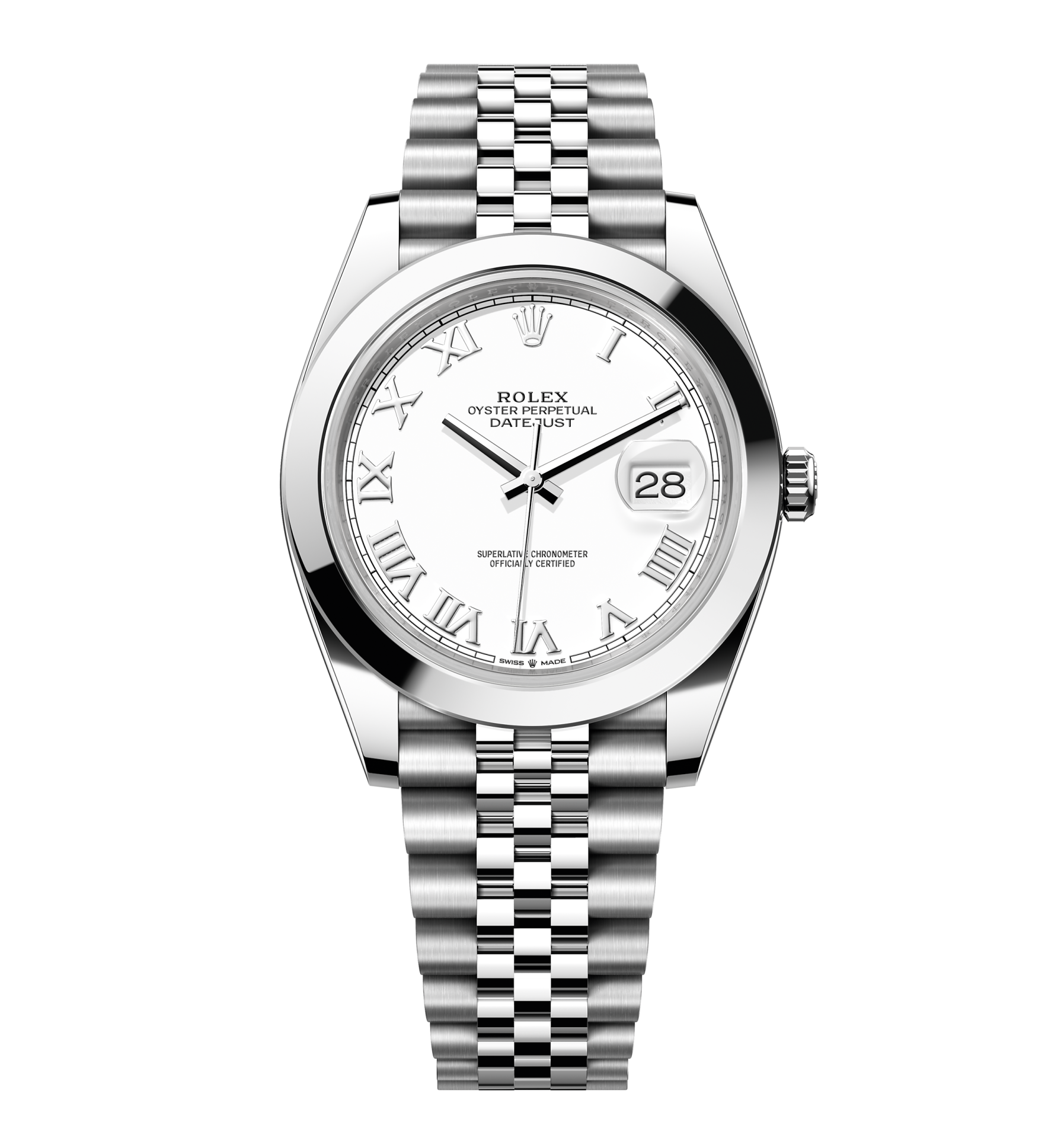 Rolex Datejust – 41 mm – פלדה רצועת ג'ובילי באזל חלק לוח רומי לבן גימור שוויצרי