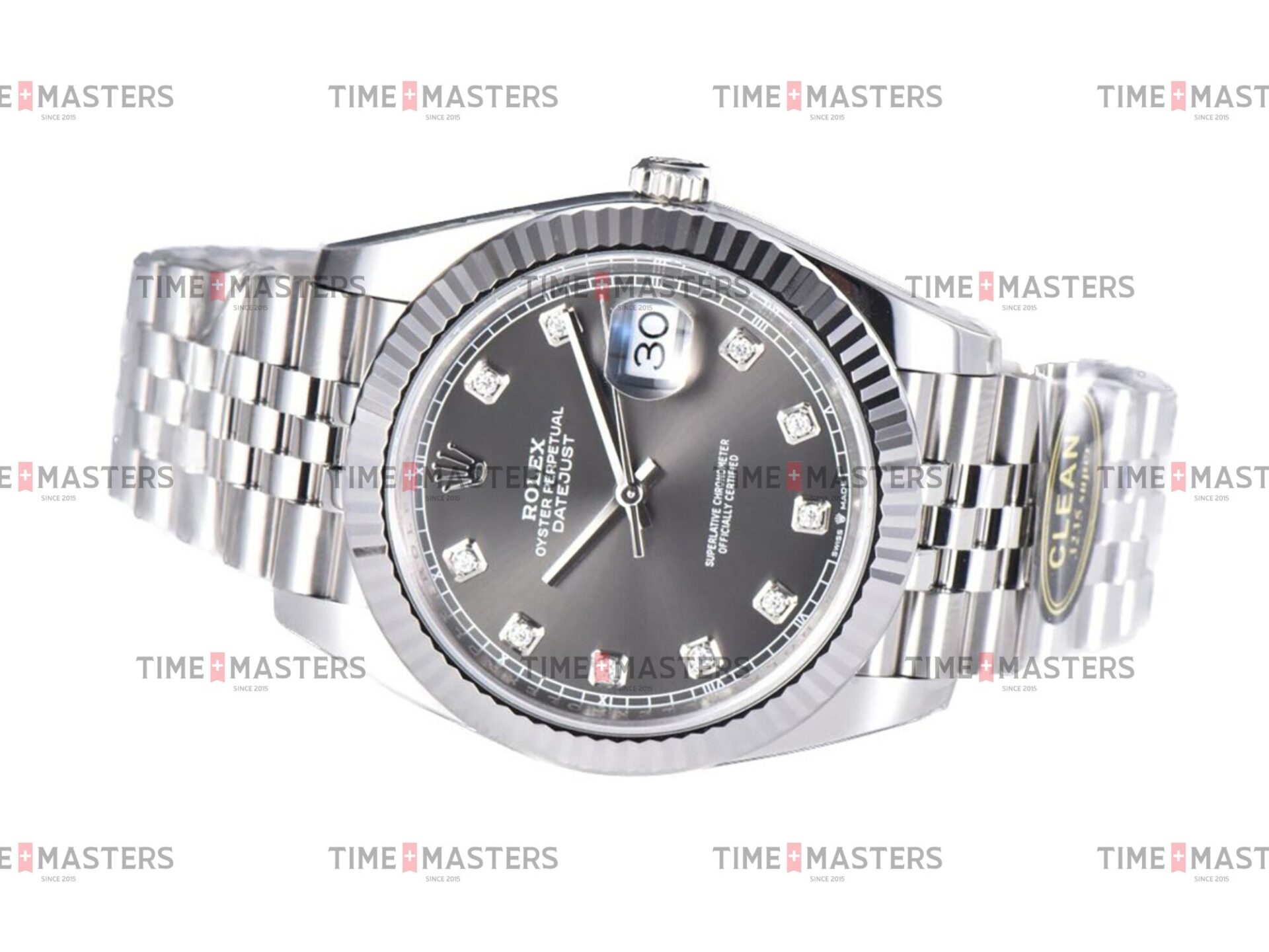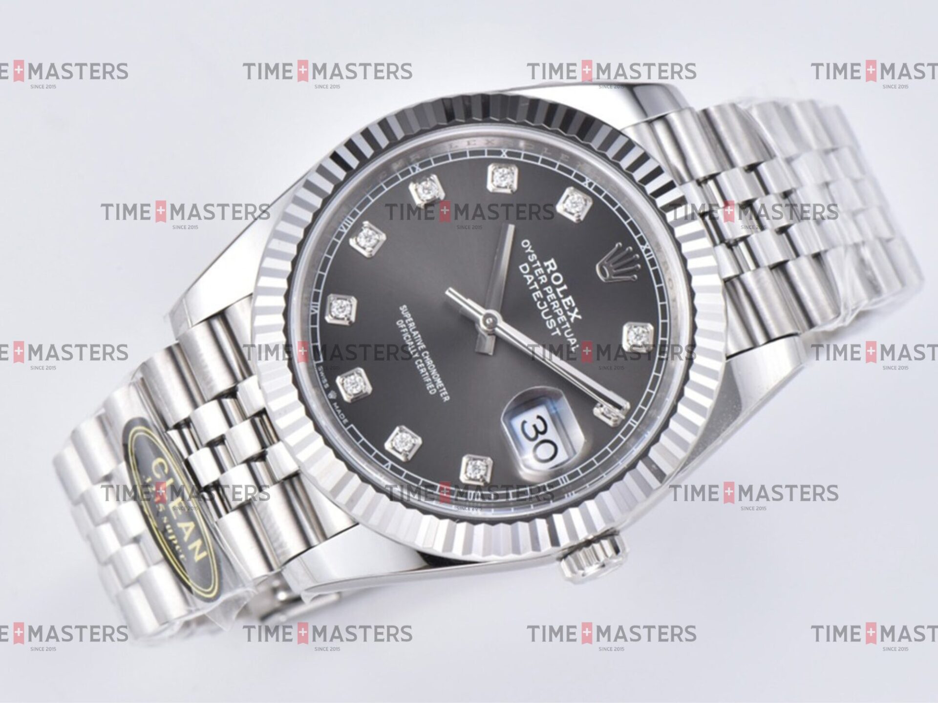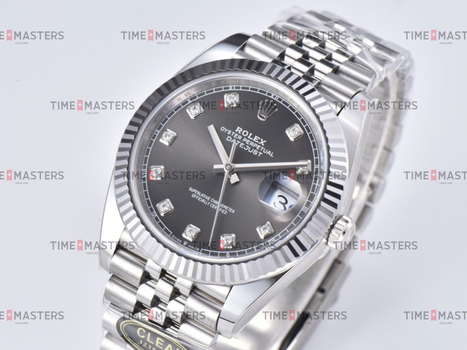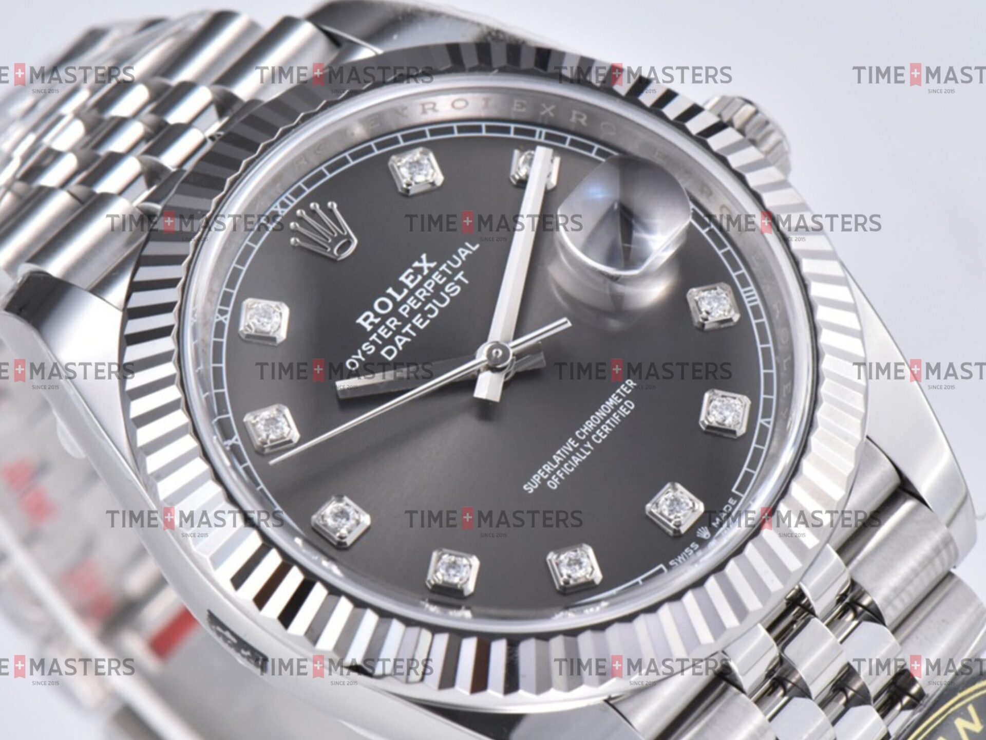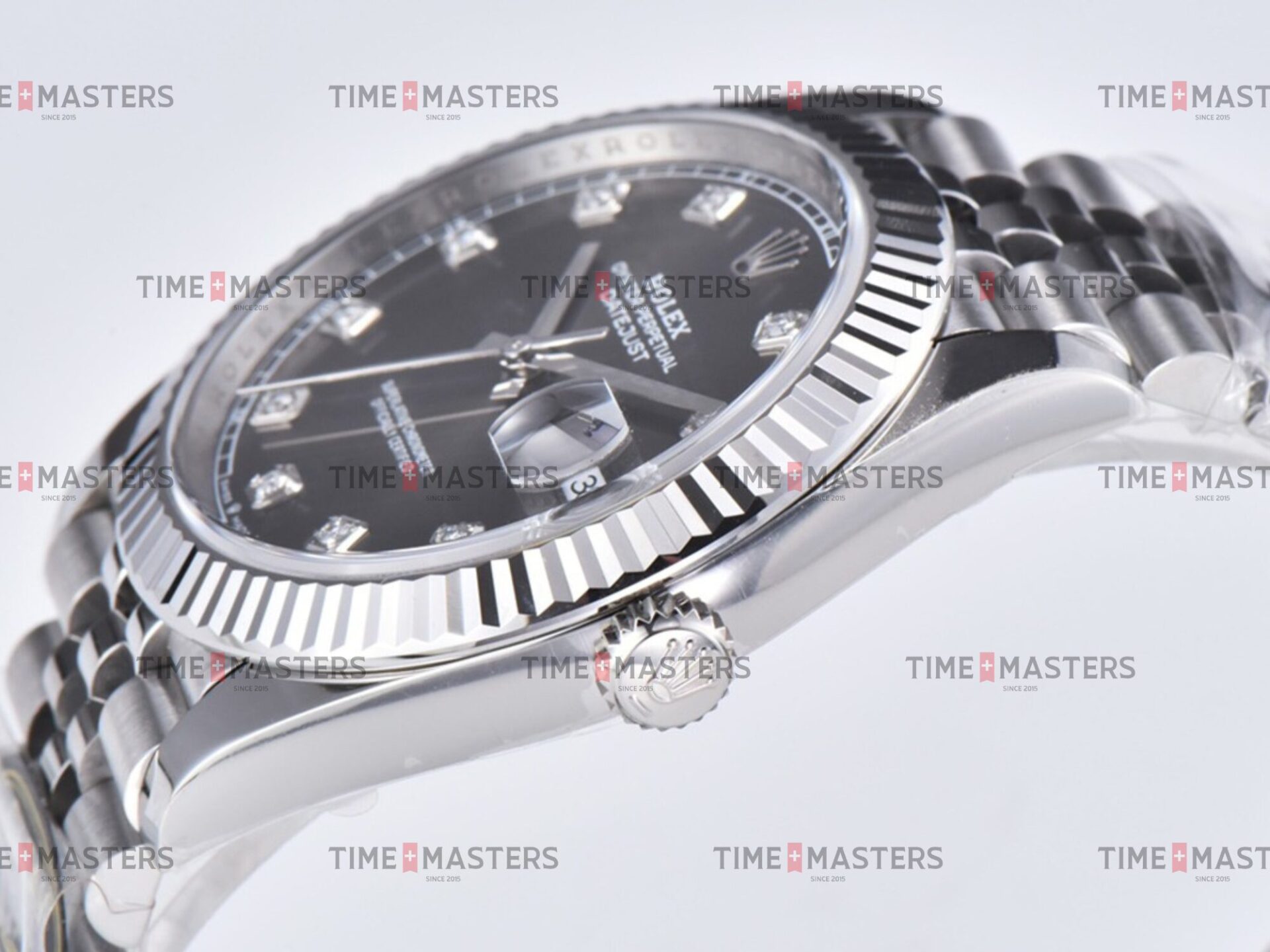 Rolex Datejust – 41 mm – פלדה רצועת ג'ובילי באזל משונן לוח שחור יהלומים גימור קצה