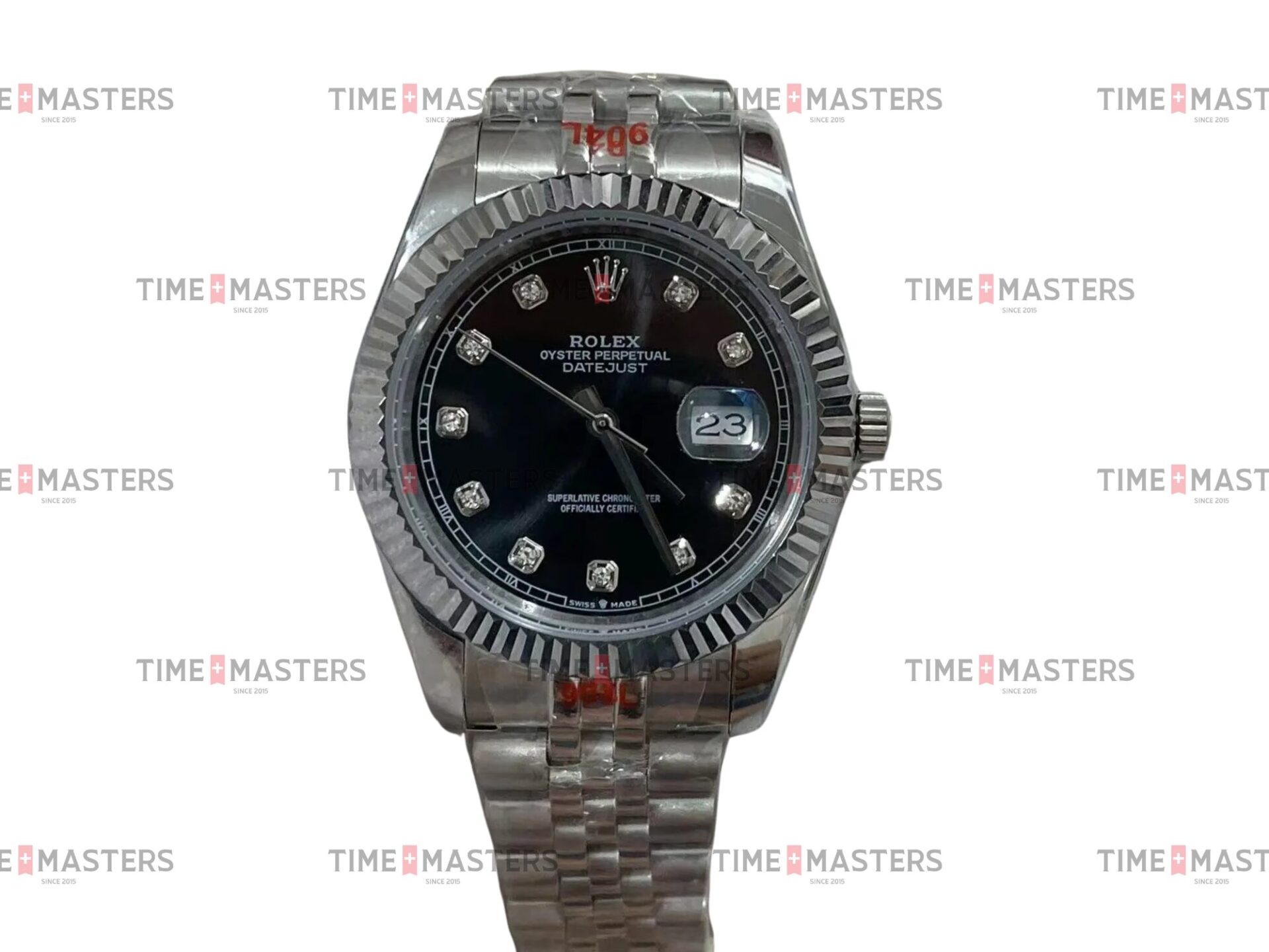 Rolex Datejust – 41 mm – פלדה רצועת ג'ובילי באזל משונן לוח שחור יהלומים גימור שוויצרי