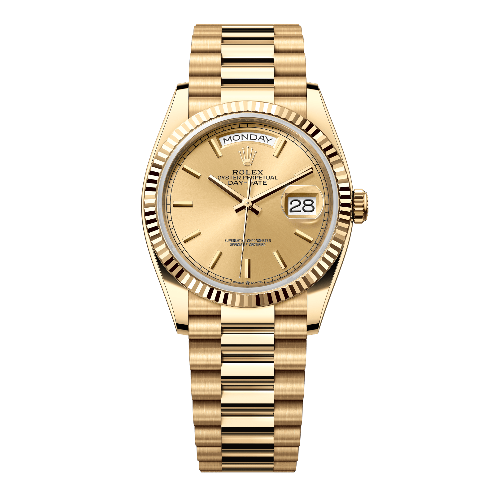 Rolex Day-Date – 36 mm – זהב צהוב רצועת ג'ובילי באזל משונן לוח זהב גימור קצה