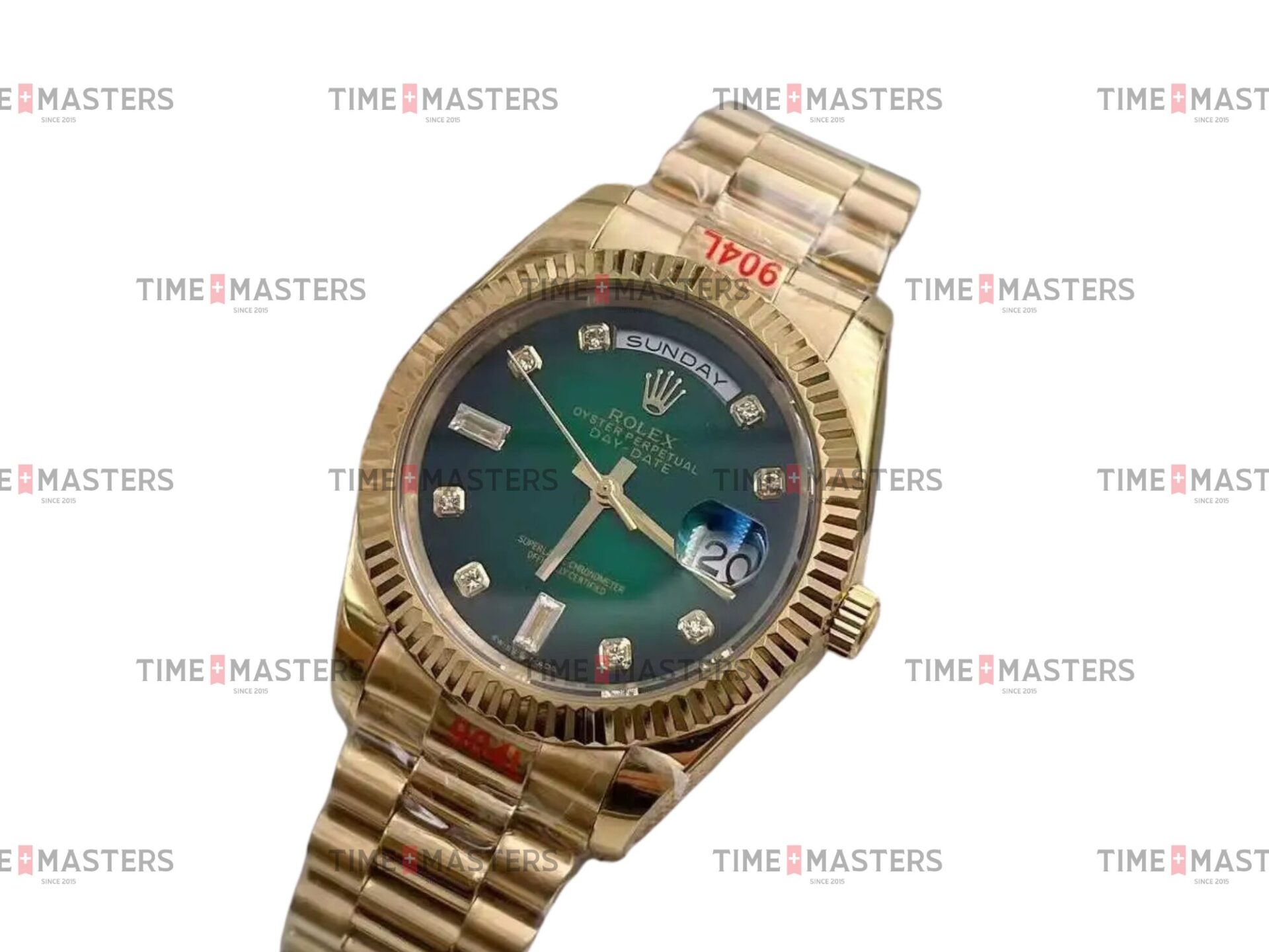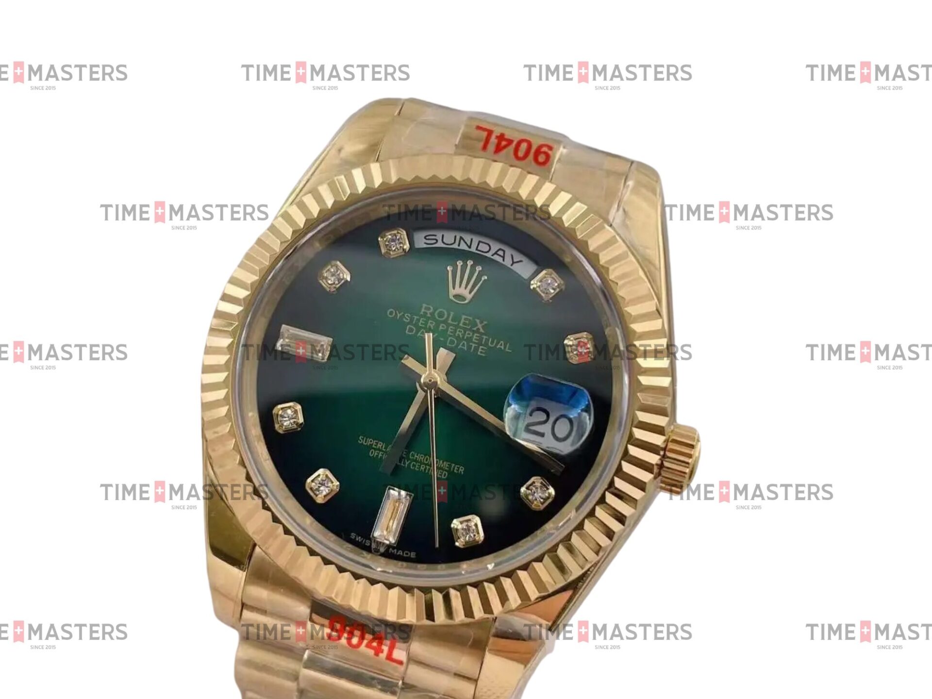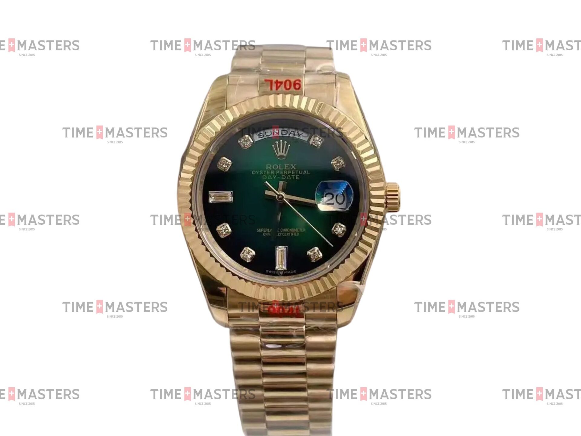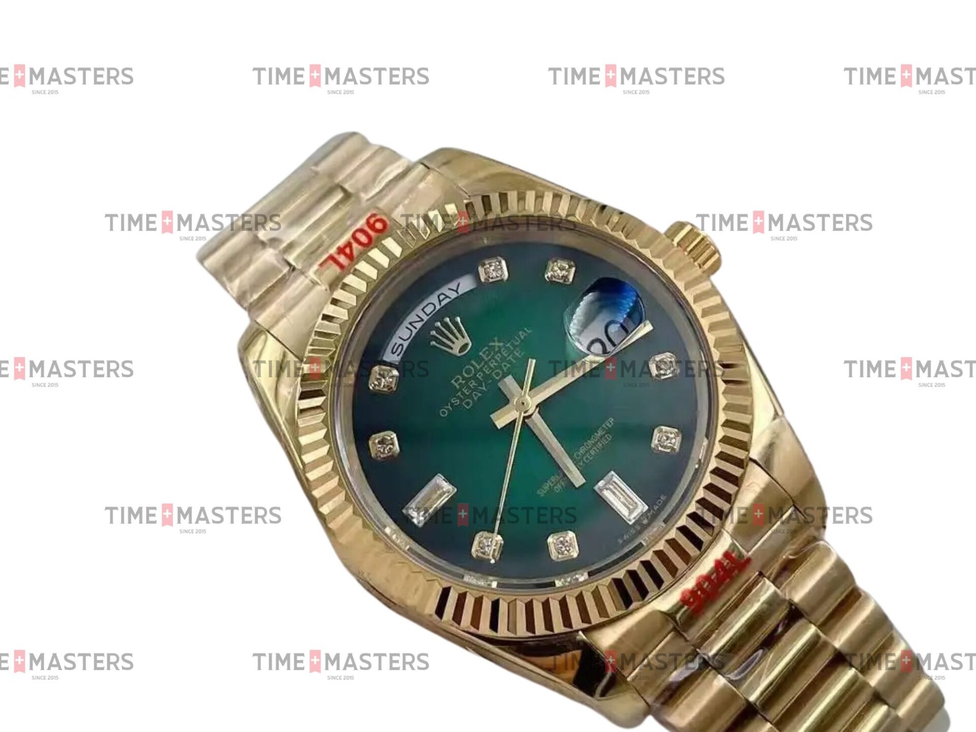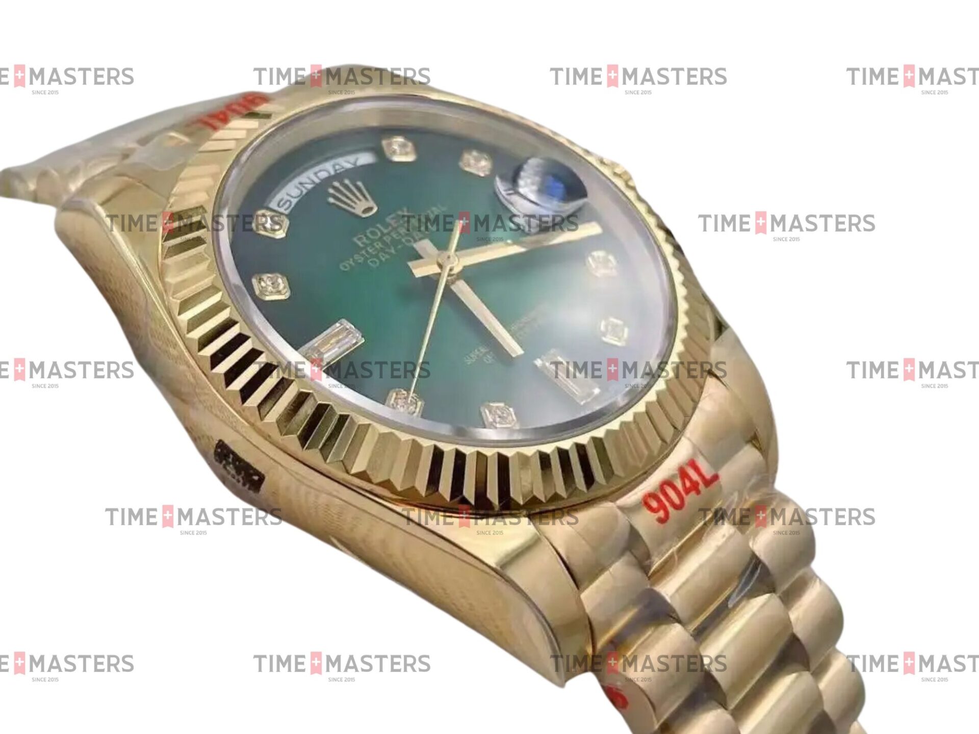 Rolex Day-Date – 36 mm – זהב צהוב רצועת ג'ובילי באזל משונן לוח ירוק יהלומים גימור שוויצרי