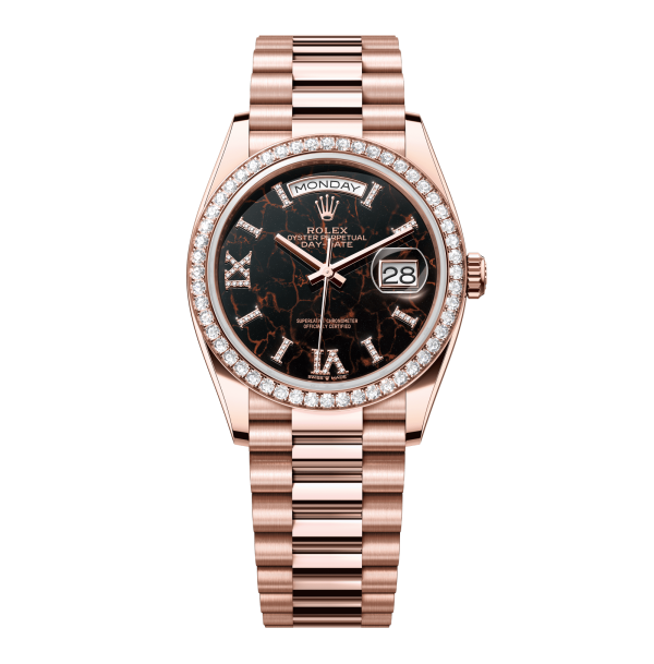 Rolex Day-Date – 36 mm – רוז גולד רצועת ג'ובילי באזל יהלומים לוח רומי אייזנקיזל