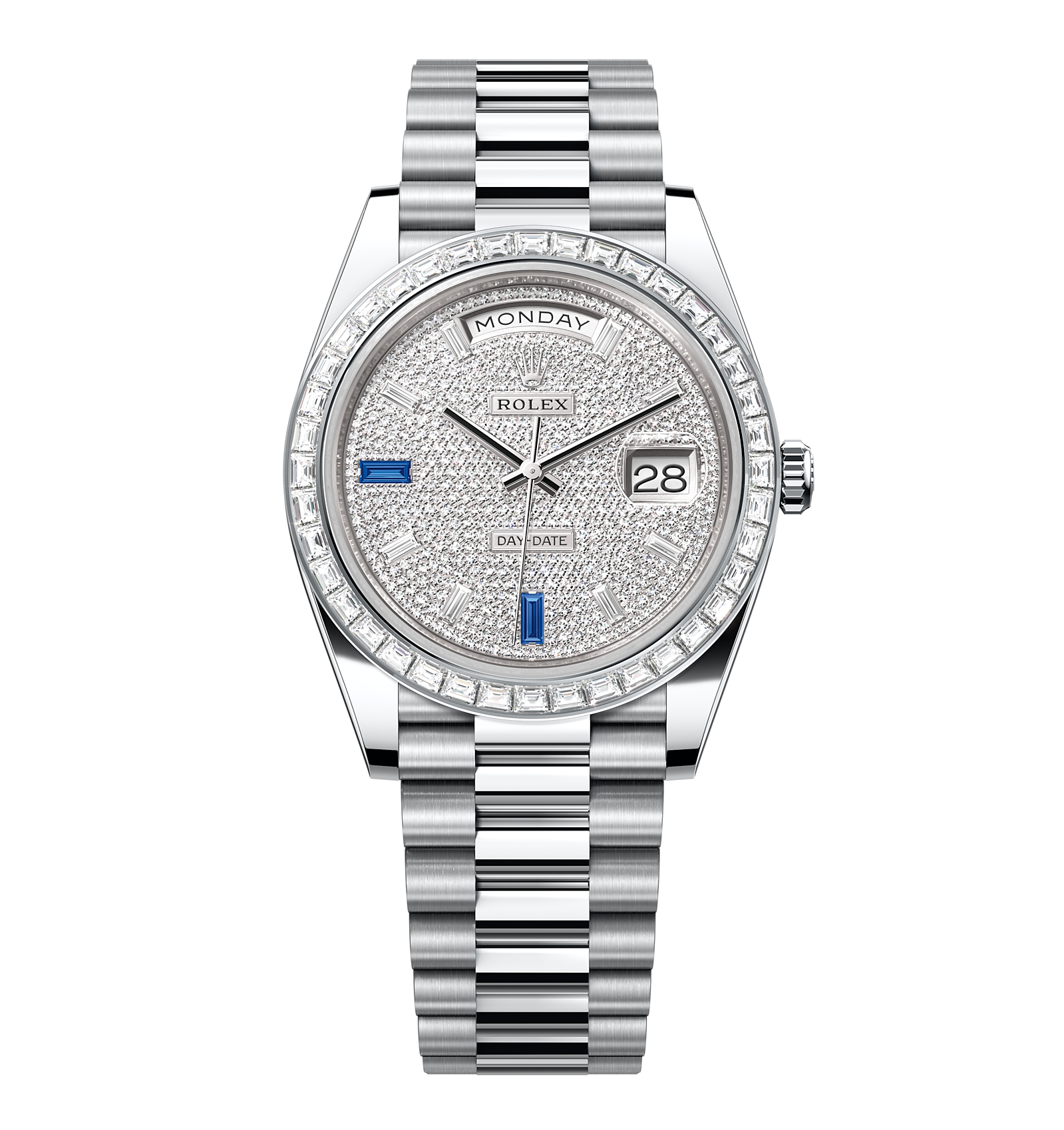 Rolex Day-Date – 40 mm – זהב לבן לוח יהלומים באזל יהלומים גימור קצה