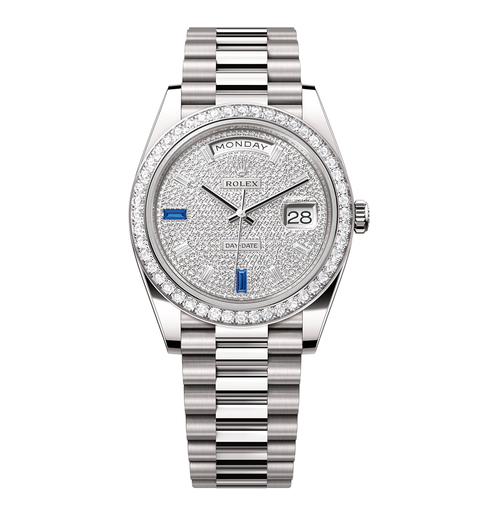 Rolex Day-Date – 40 mm – זהב לבן לוח יהלומים באזל יהלומים גימור שוויצרי