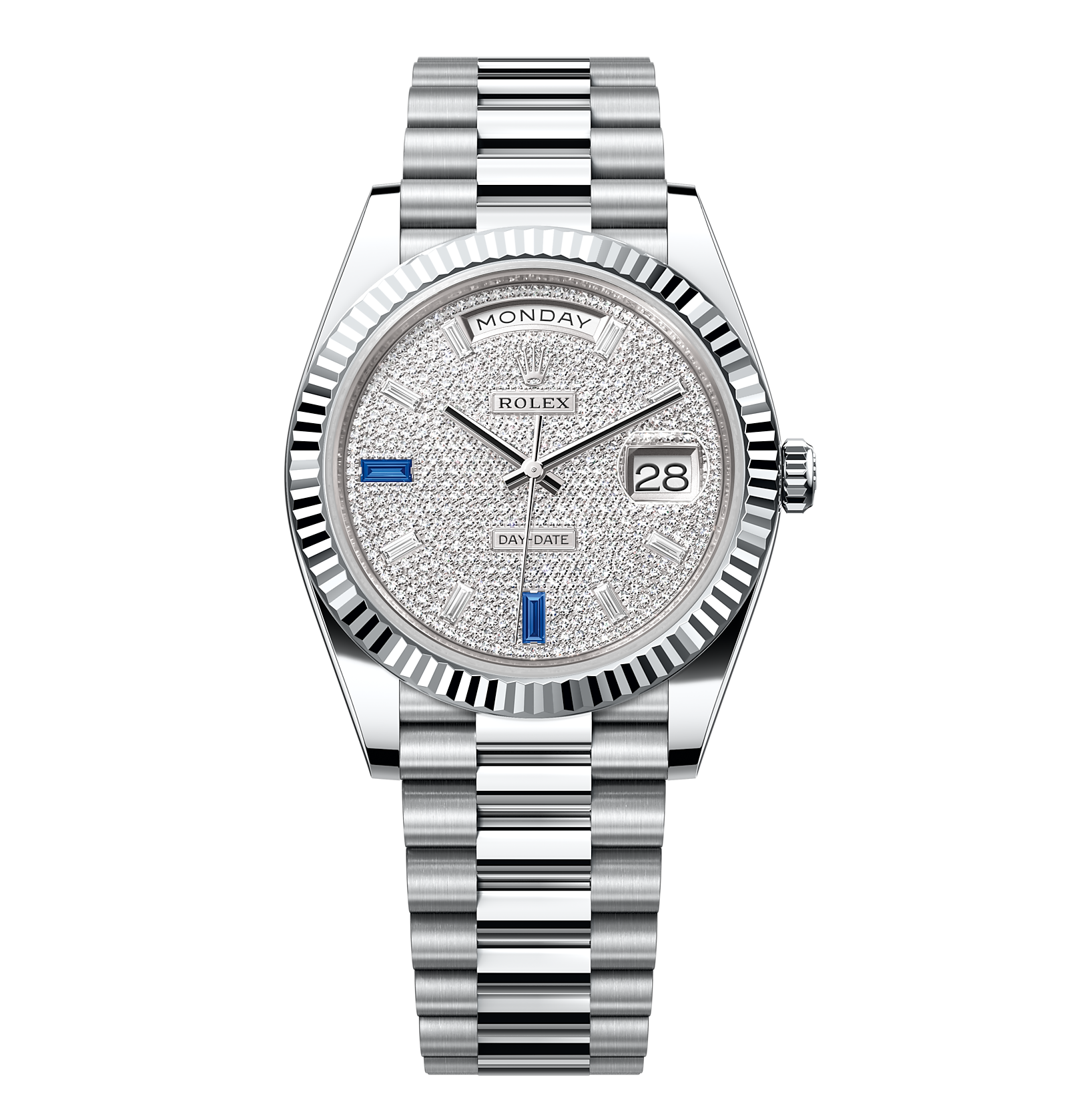 Rolex Day-Date – 40 mm – זהב לבן לוח יהלומים גימור שוויצרי