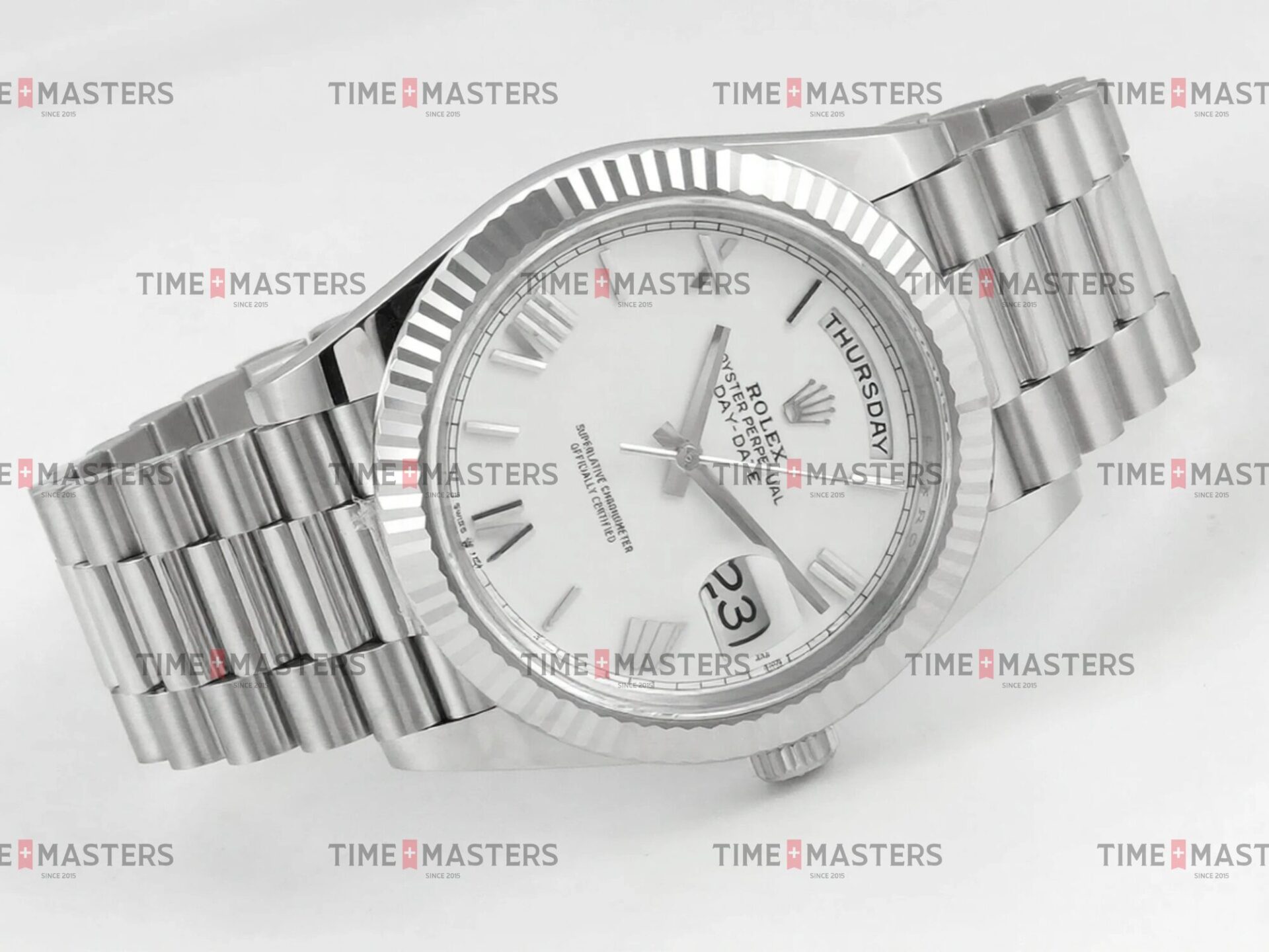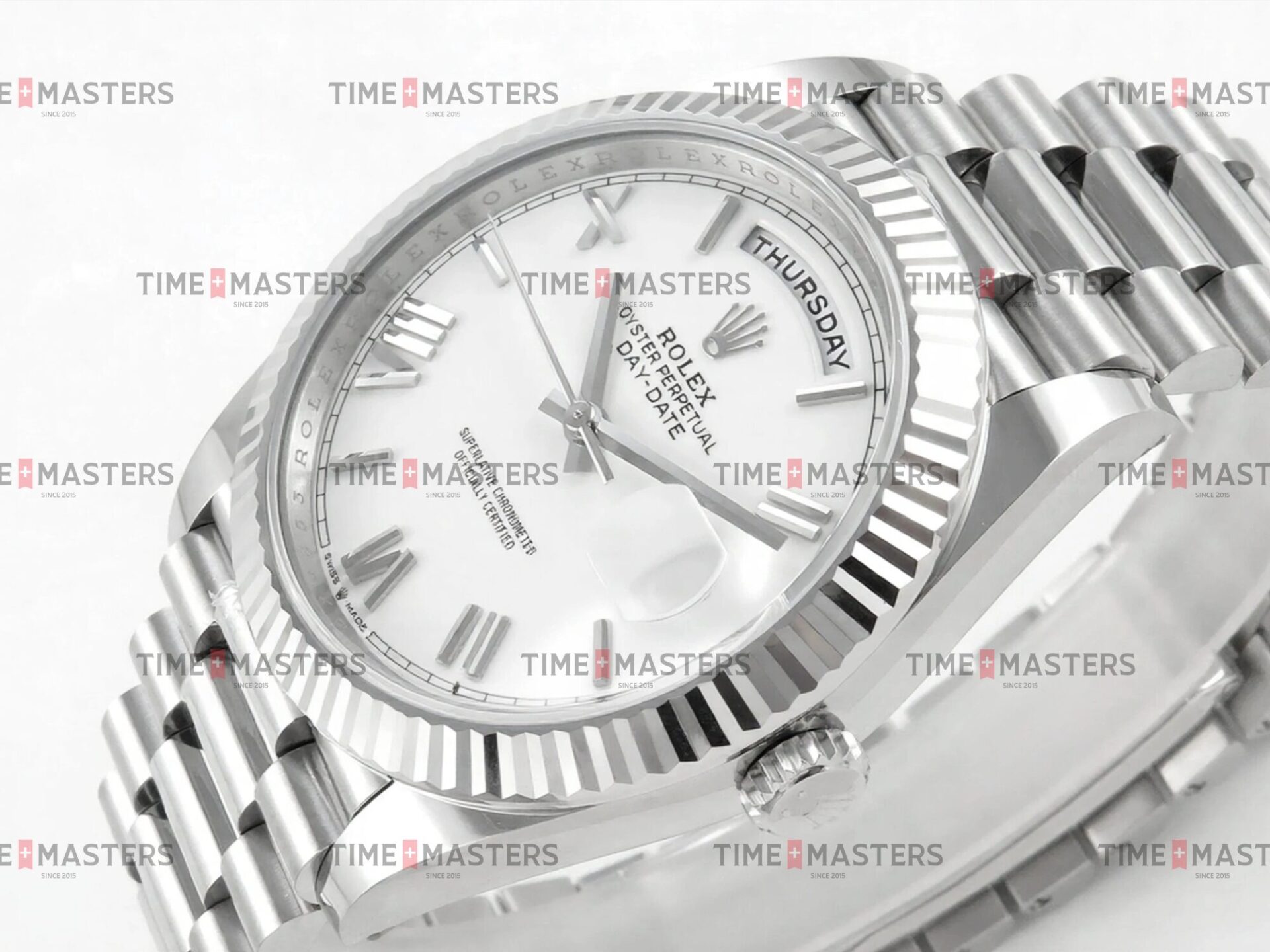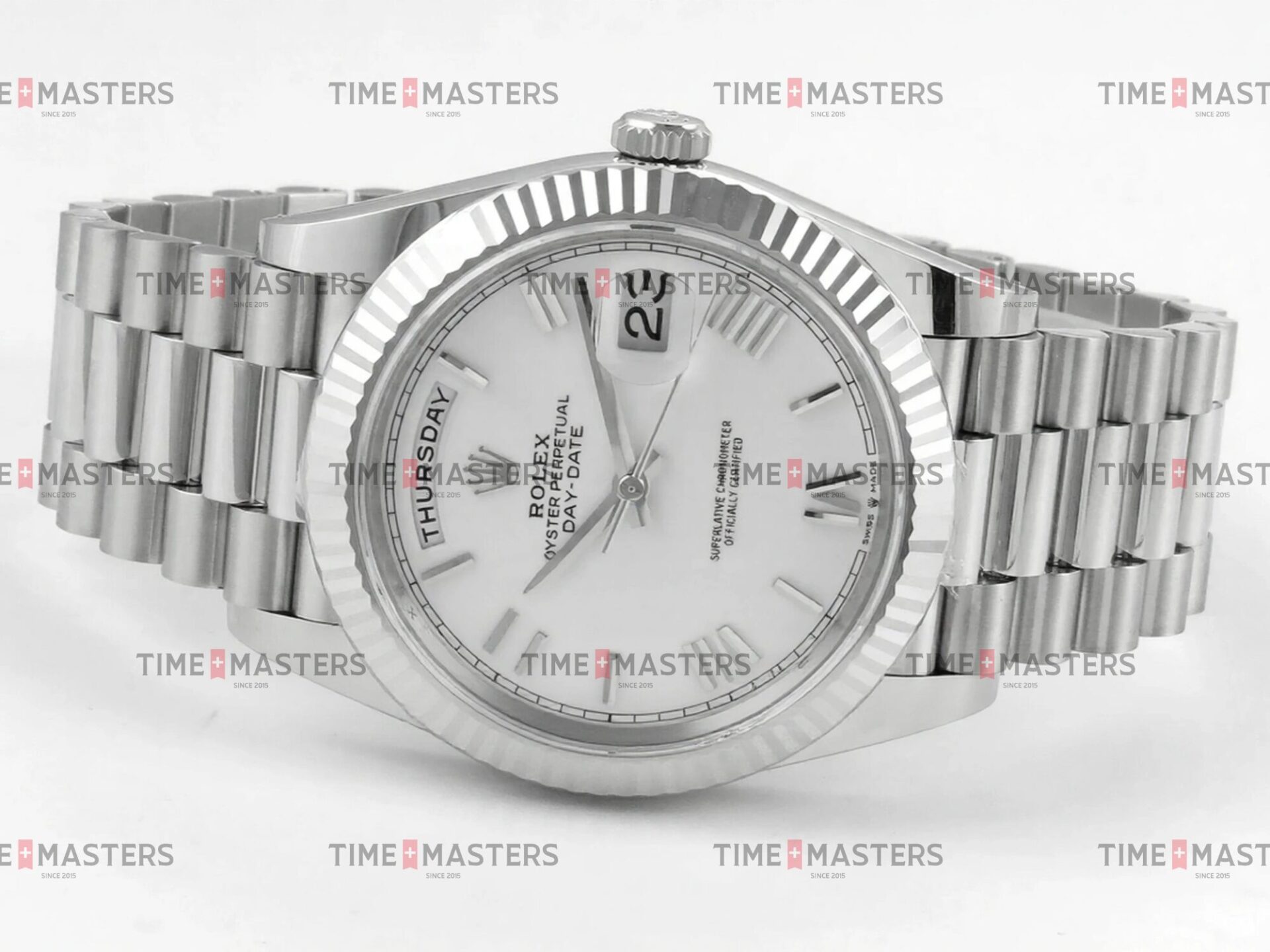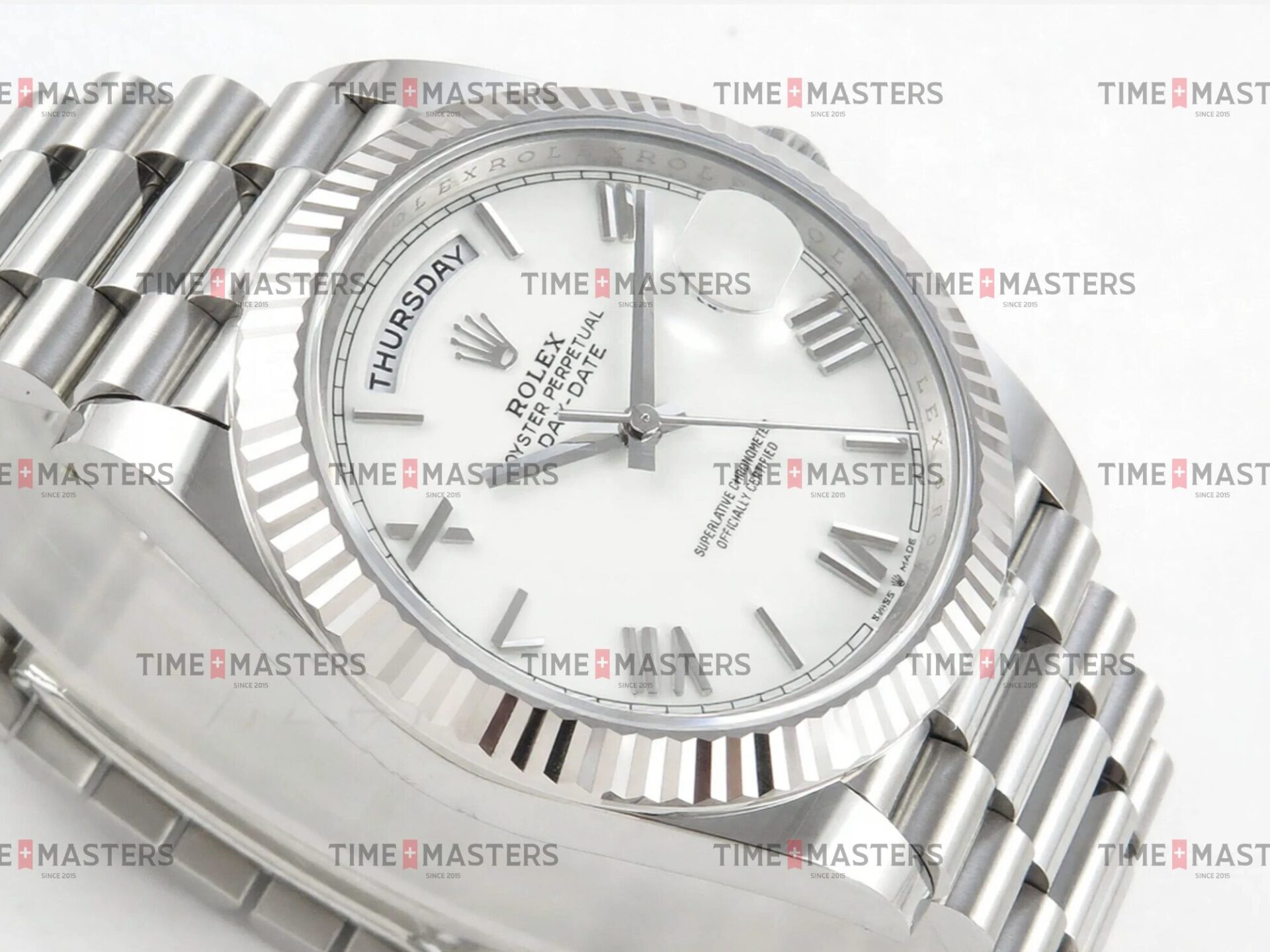 Rolex Day-Date – 40 mm – זהב לבן לוח לבן רומי גימור קצה