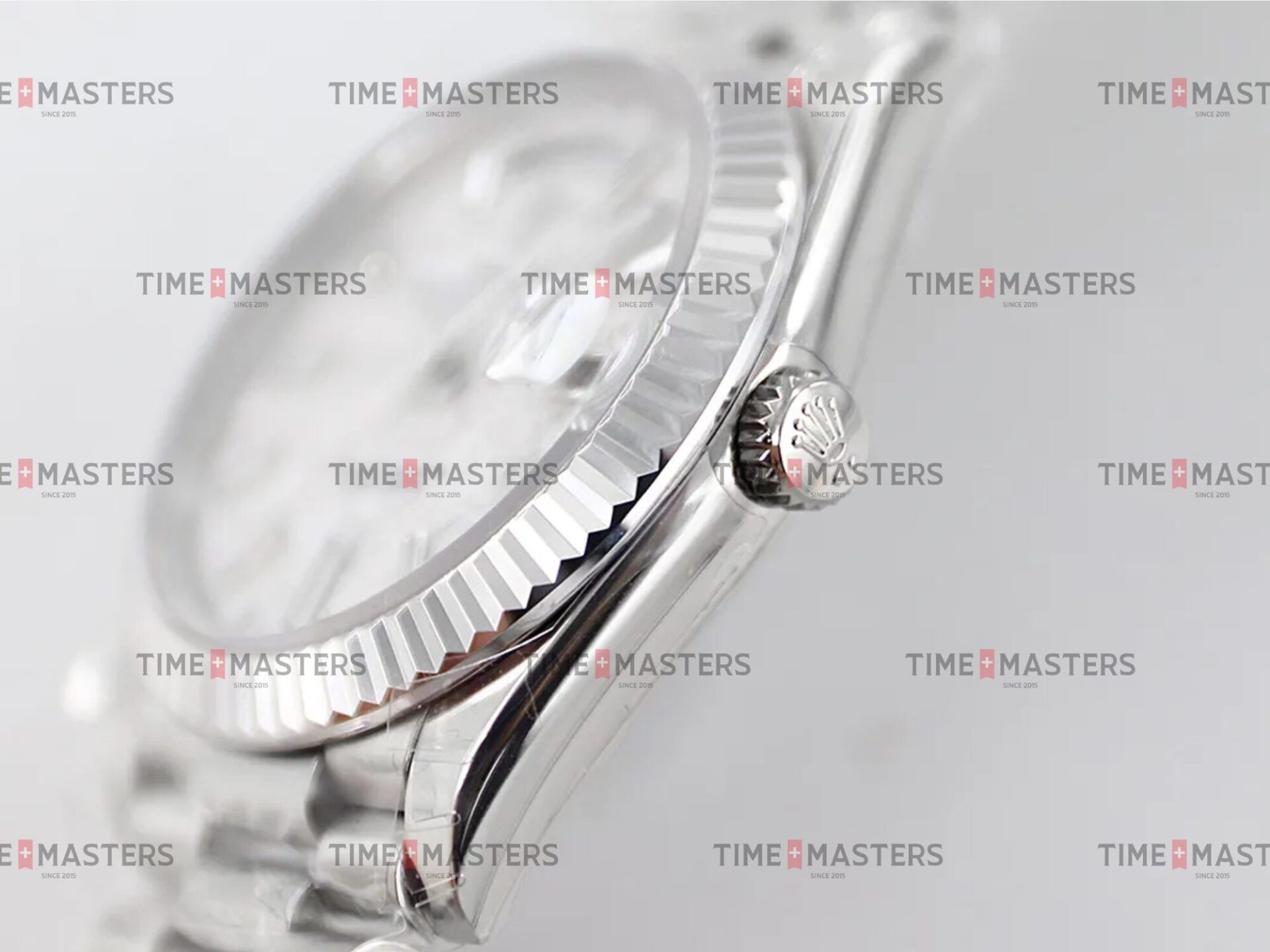 Rolex Day-Date – 40 mm – זהב לבן לוח מטאור יהלומים גימור קצה