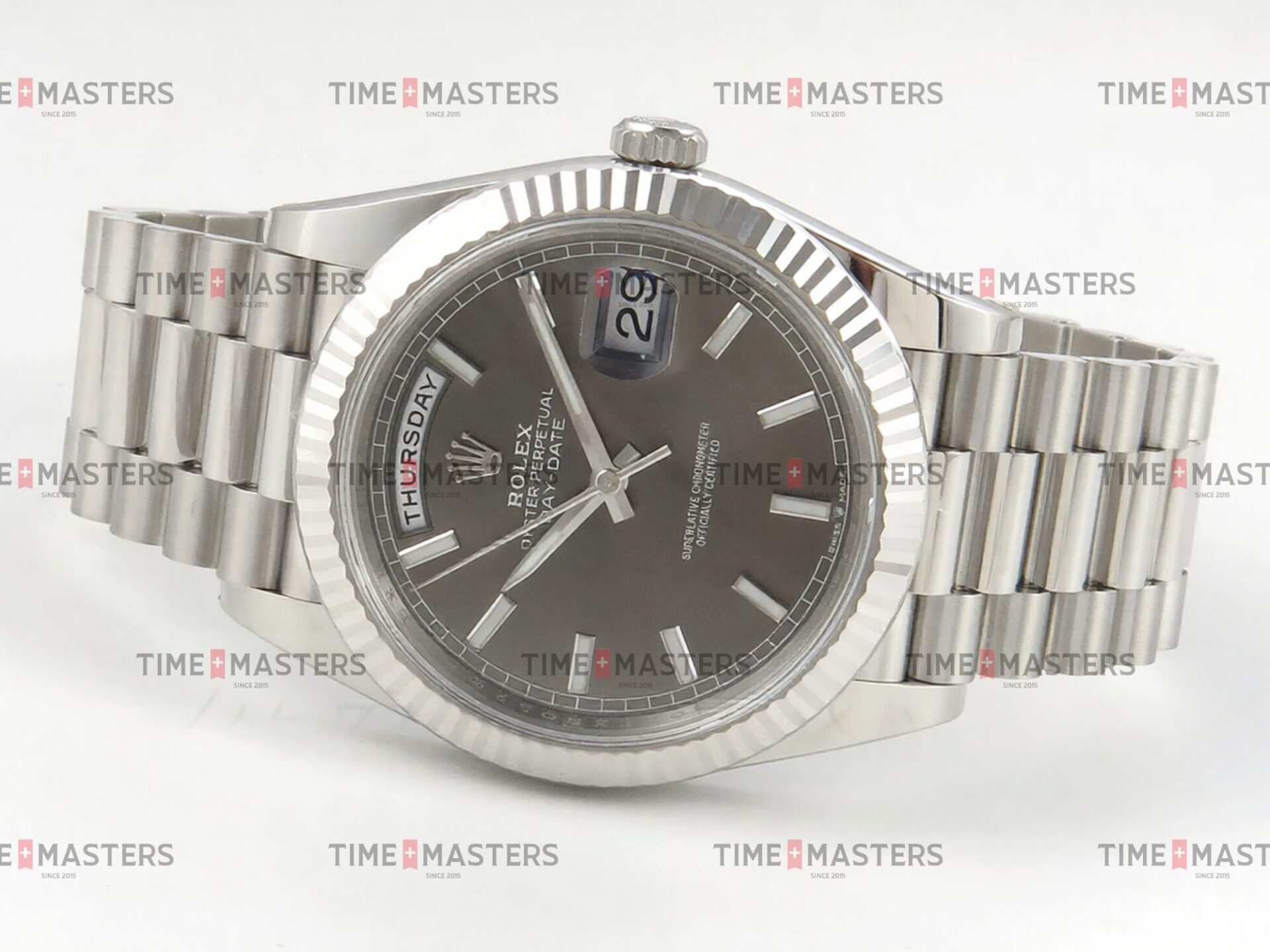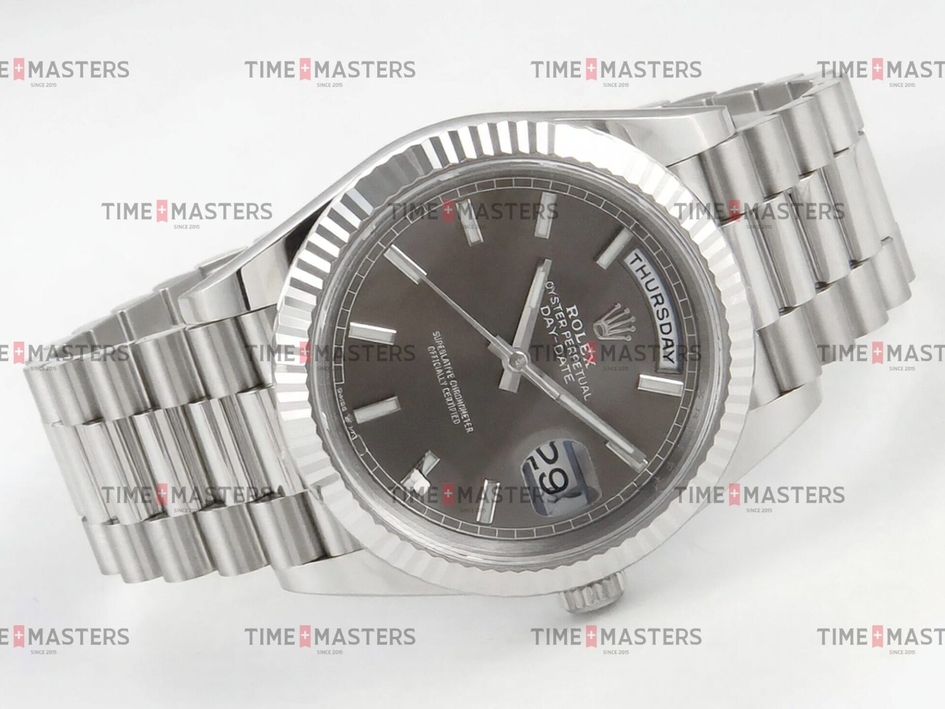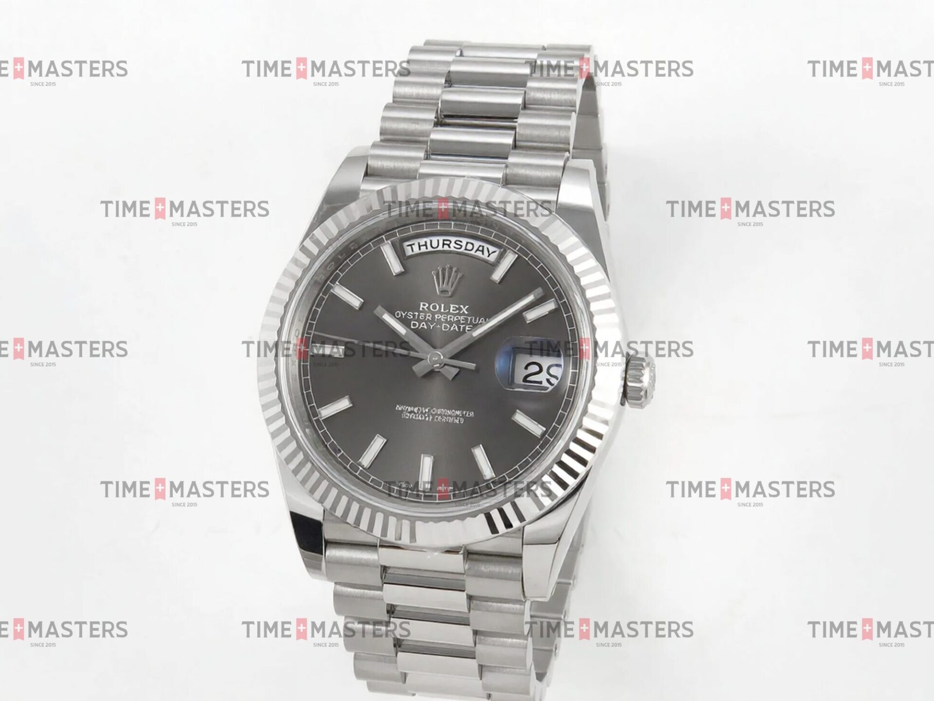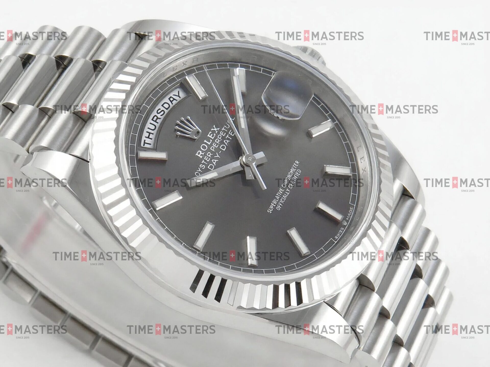 Rolex Day-Date – 40 mm – זהב לבן לוח שחור גימור קצה