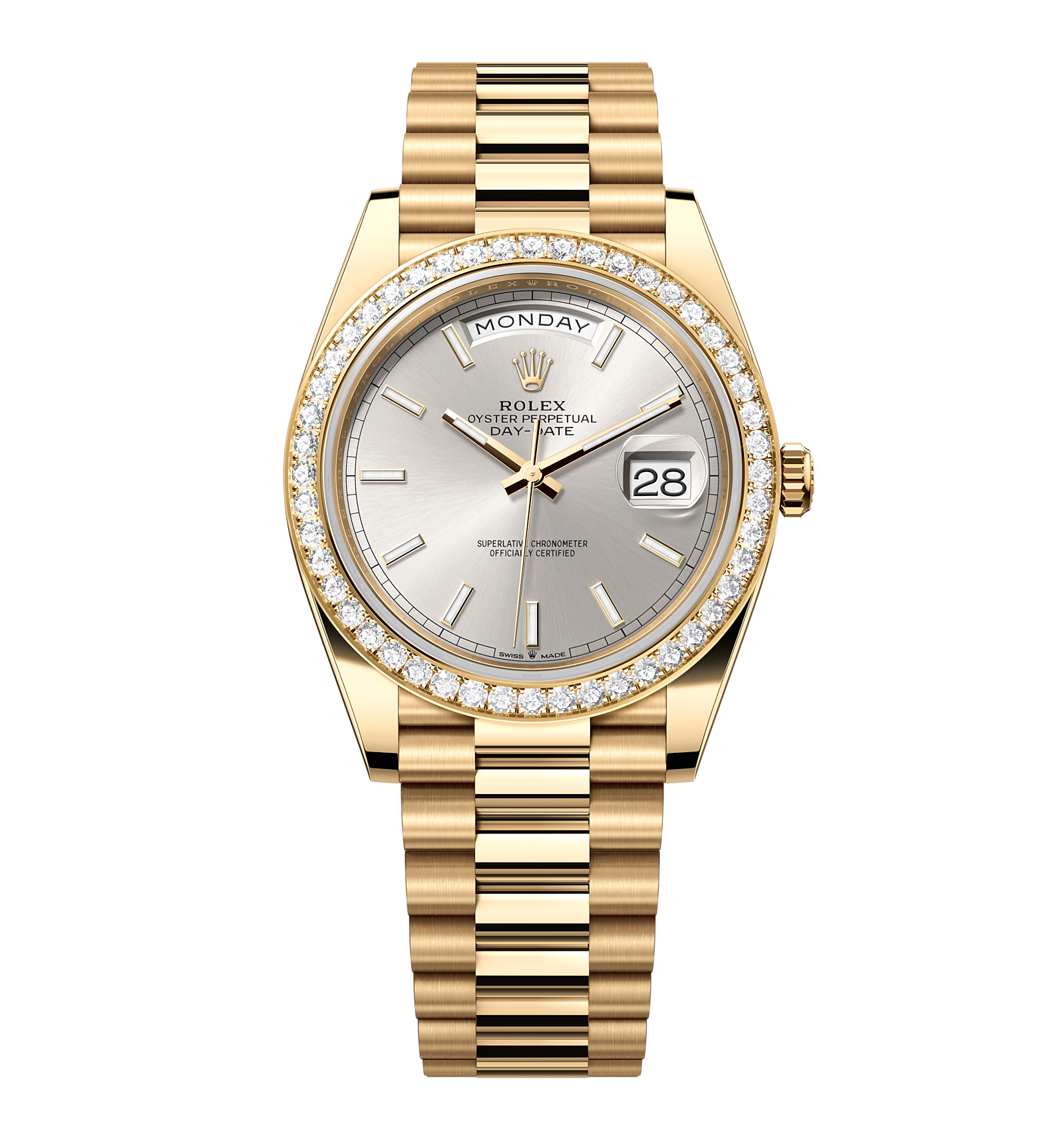 Rolex Day-Date – 40 mm – זהב צהוב לוח אפור באזל יהלומים גימור שוויצרי