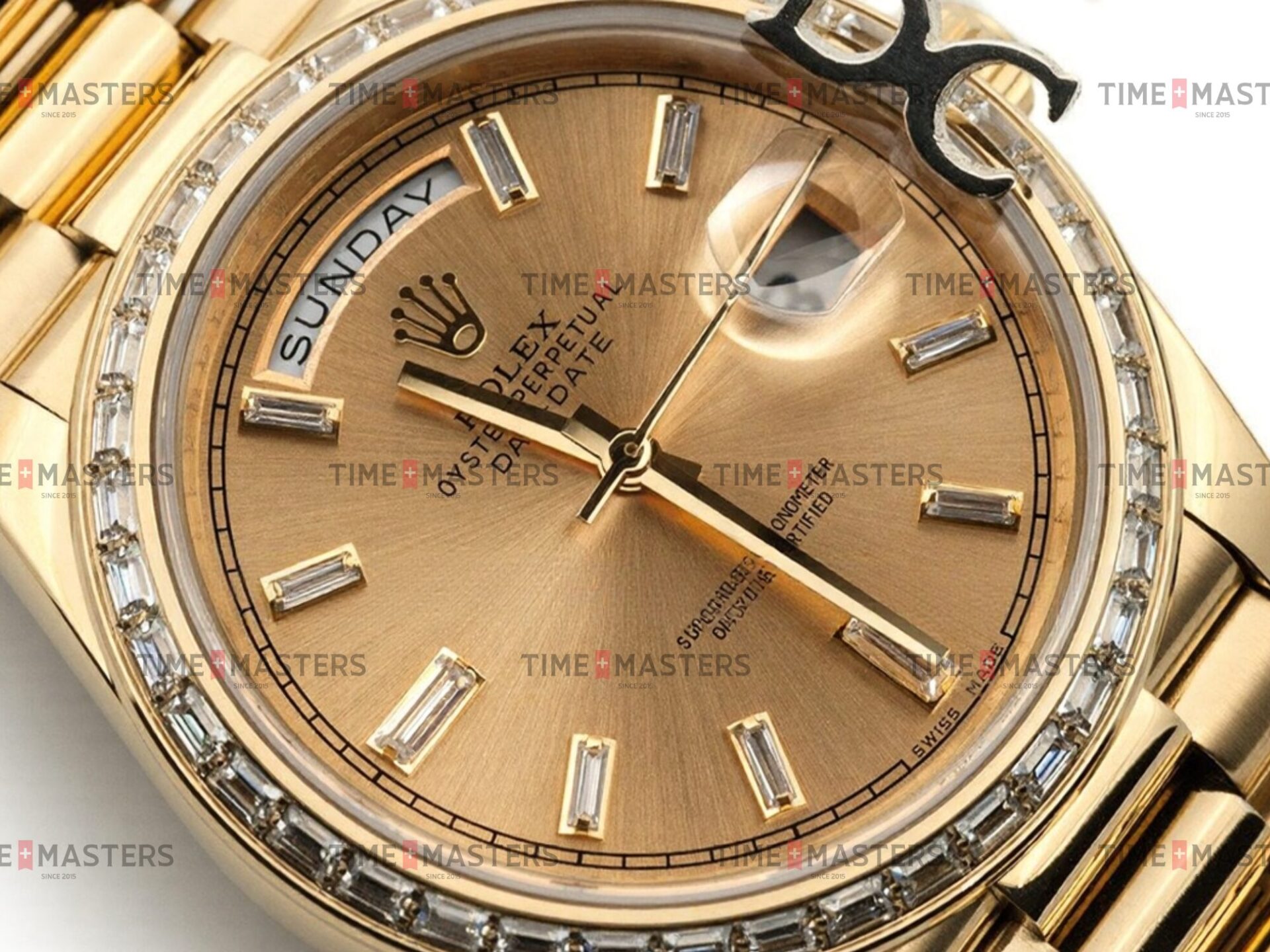 Rolex Day-Date – 40 mm – זהב צהוב לוח זהב צהוב באזל יהלומים גימור קצה