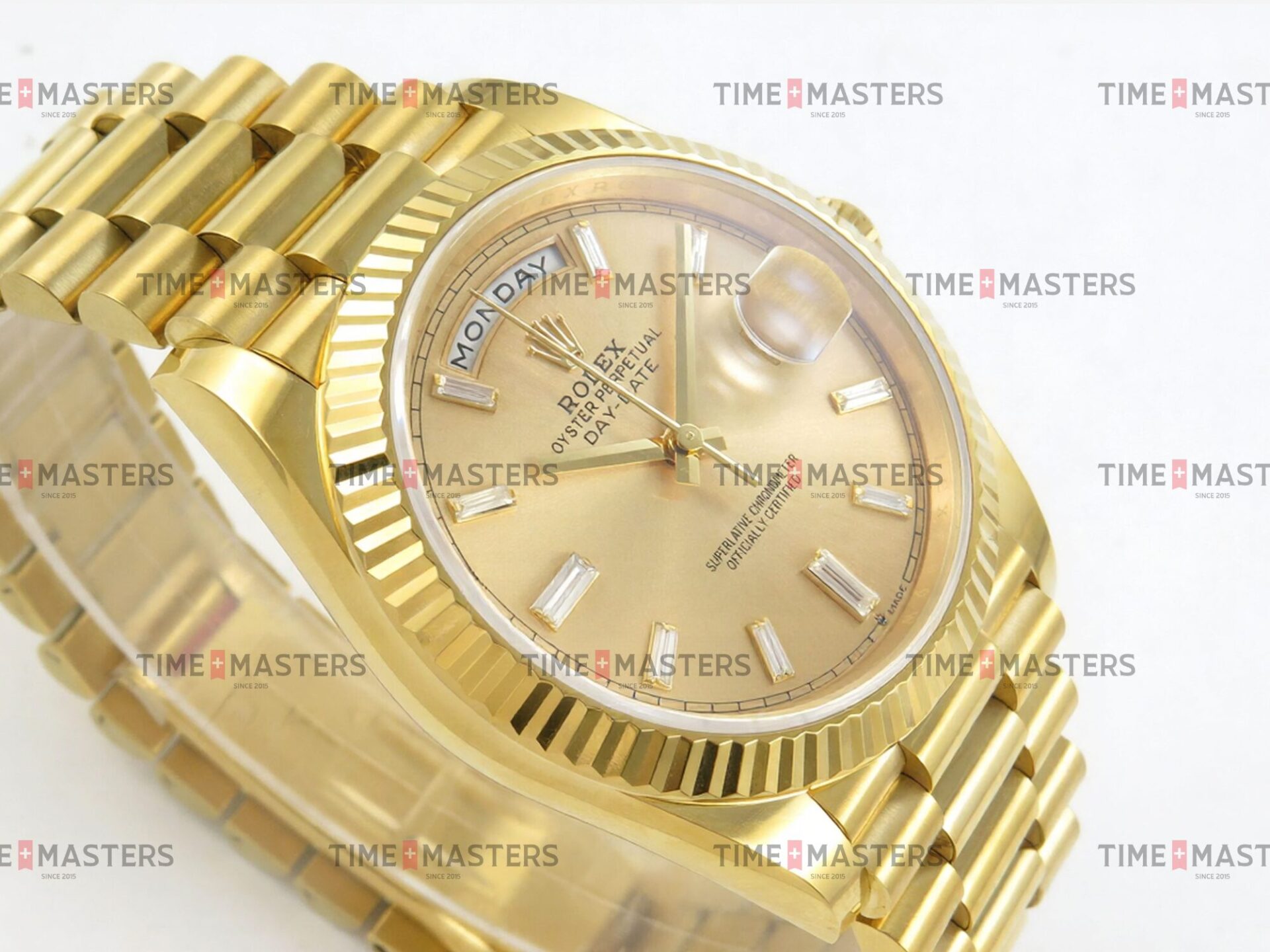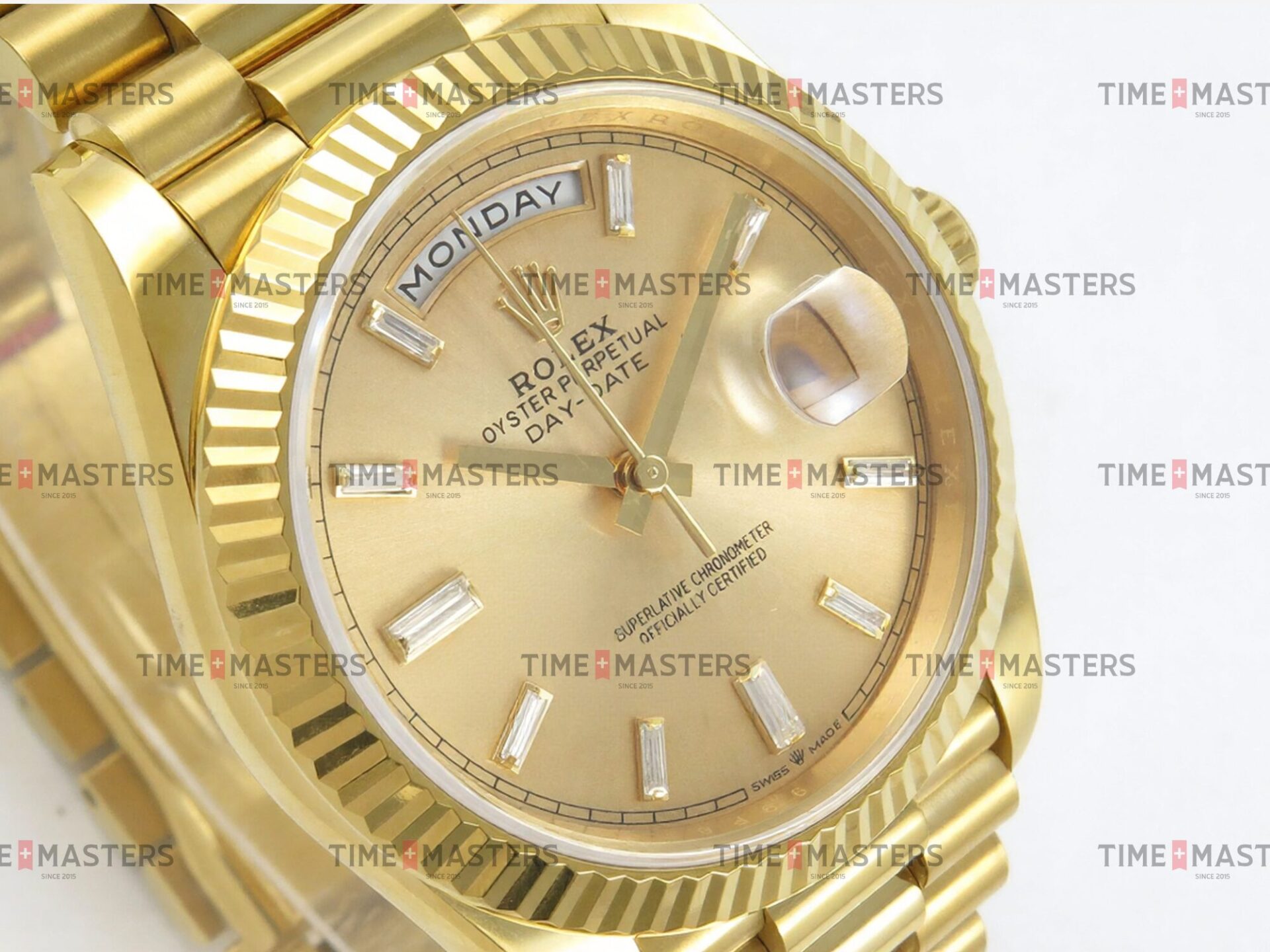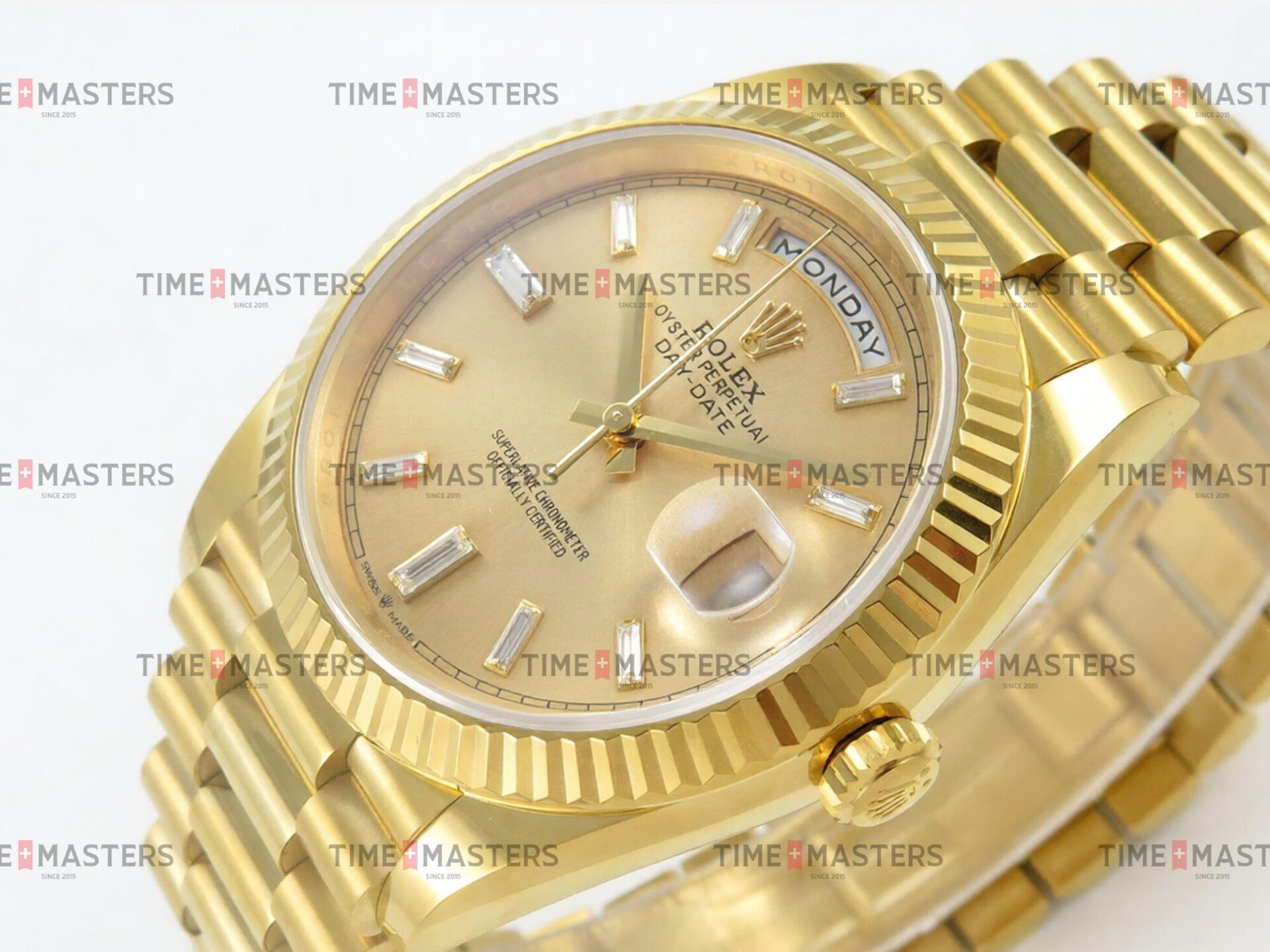 Rolex Day-Date – 40 mm – זהב צהוב לוח זהב צהוב יהלומים גימור קצה
