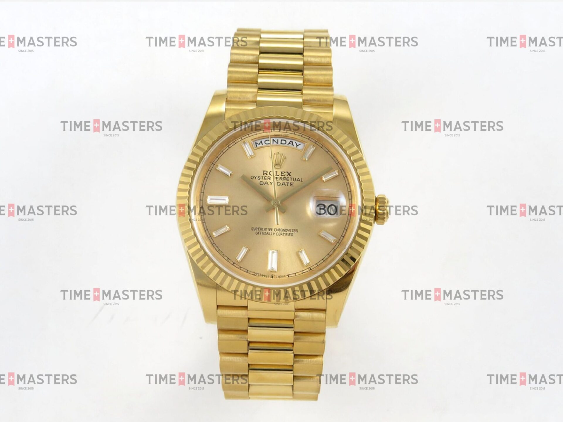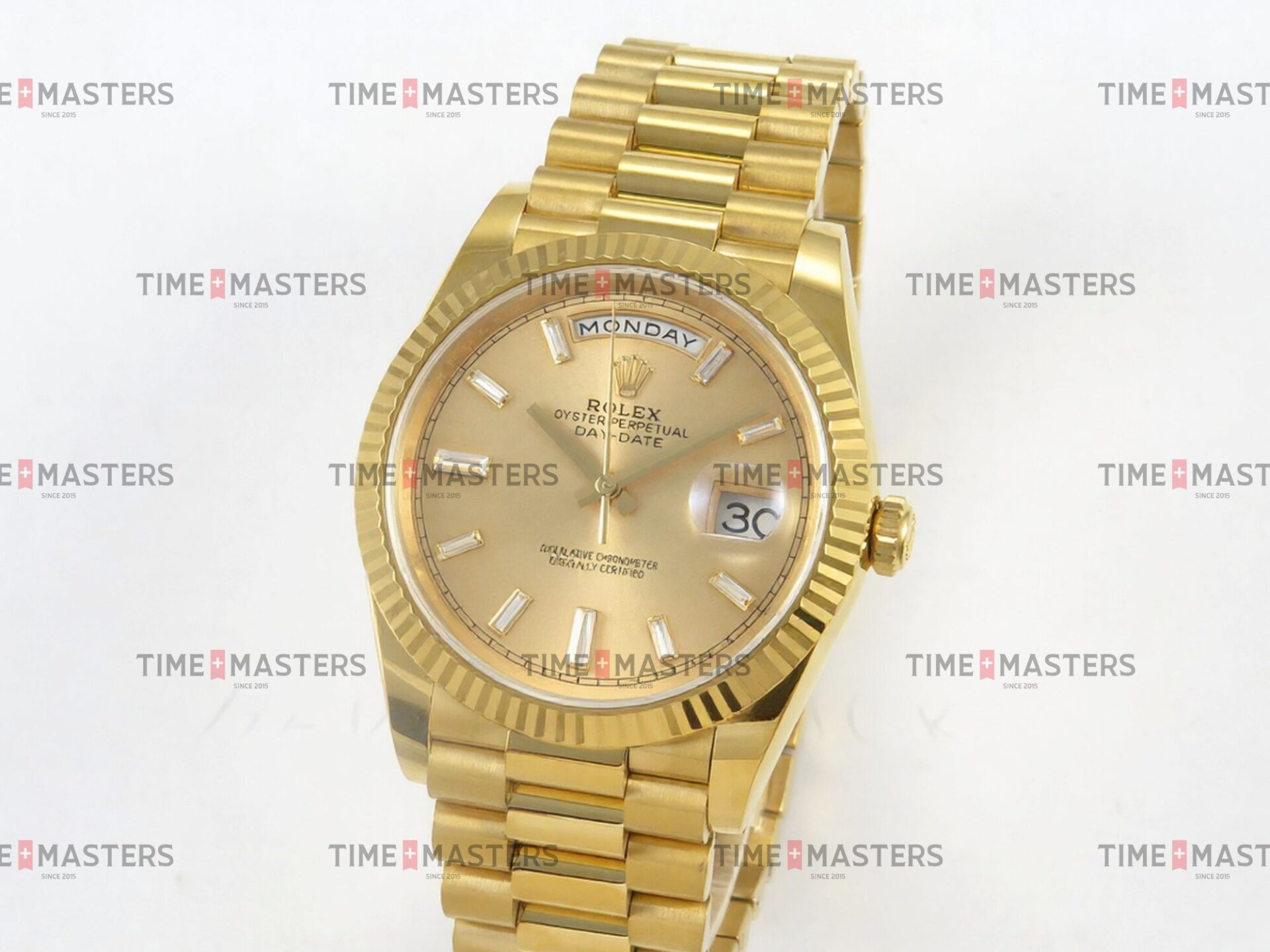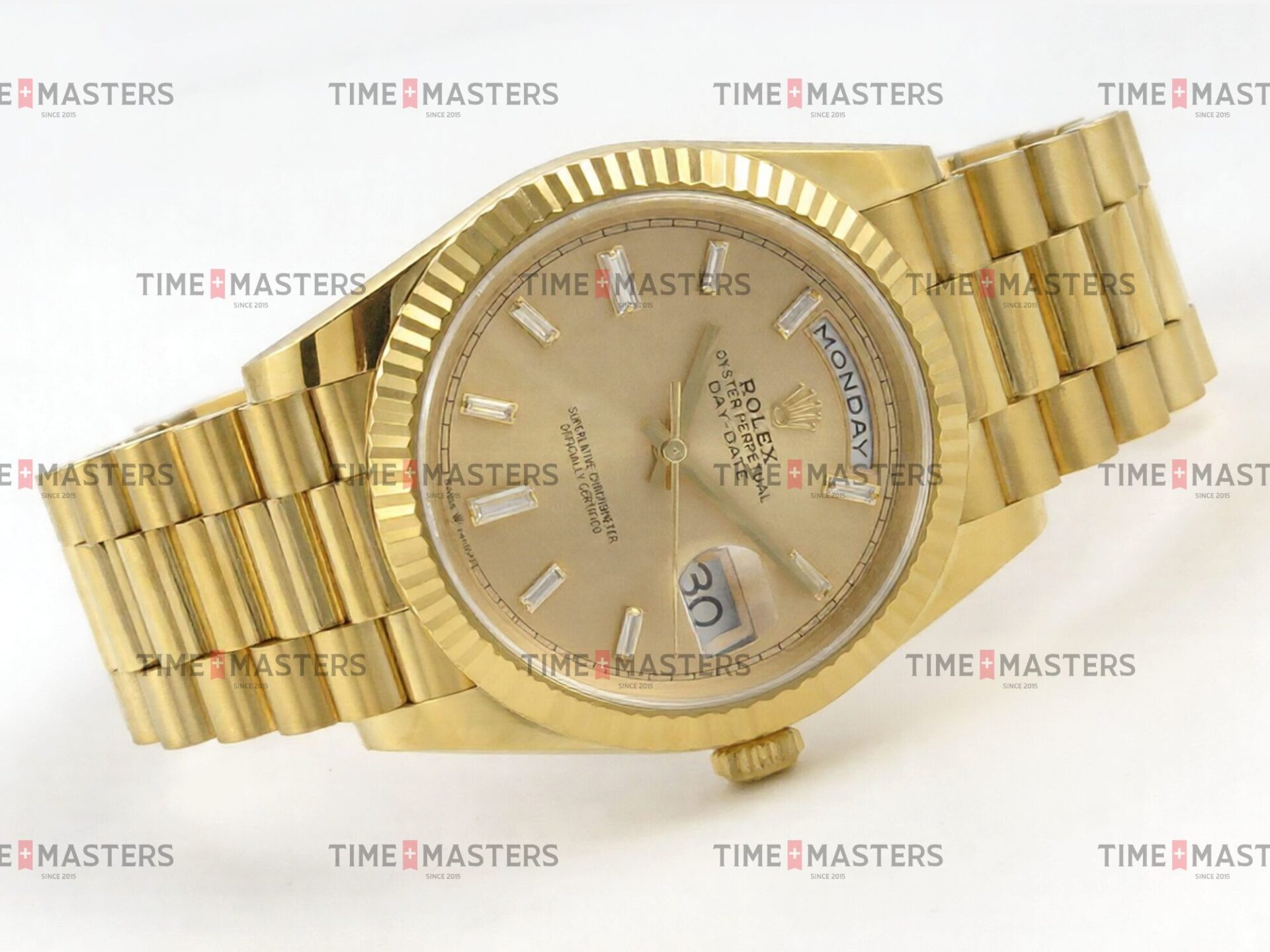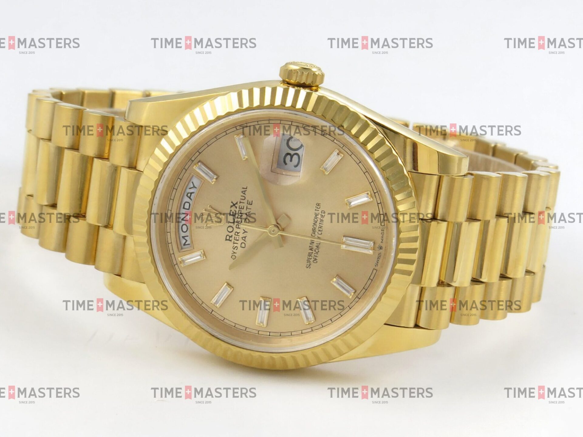 Rolex Day-Date – 40 mm – זהב צהוב לוח זהב צהוב יהלומים גימור קצה