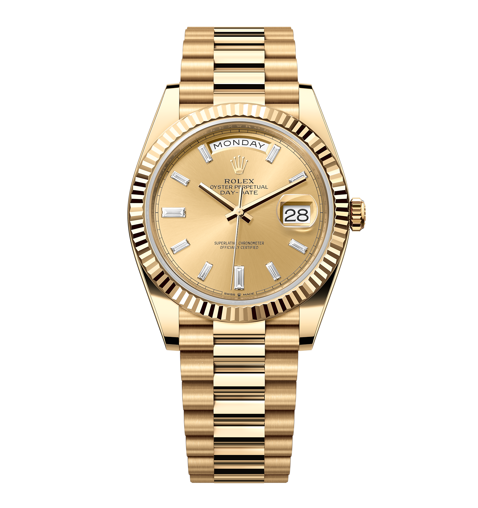 Rolex Day-Date – 40 mm – זהב צהוב לוח זהב צהוב יהלומים גימור שוויצרי