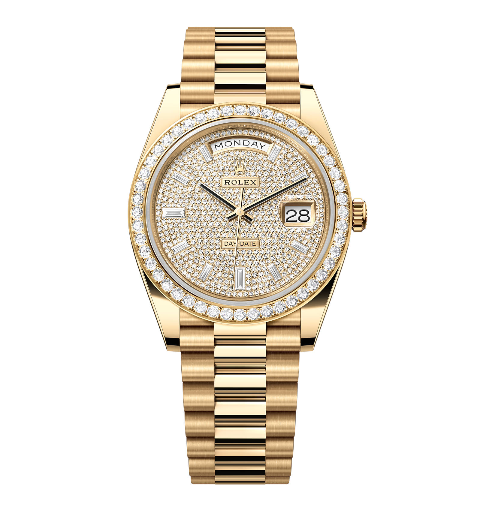 Rolex Day-Date – 40 mm – זהב צהוב לוח יהלומים באזל יהלומים גימור שוויצרי