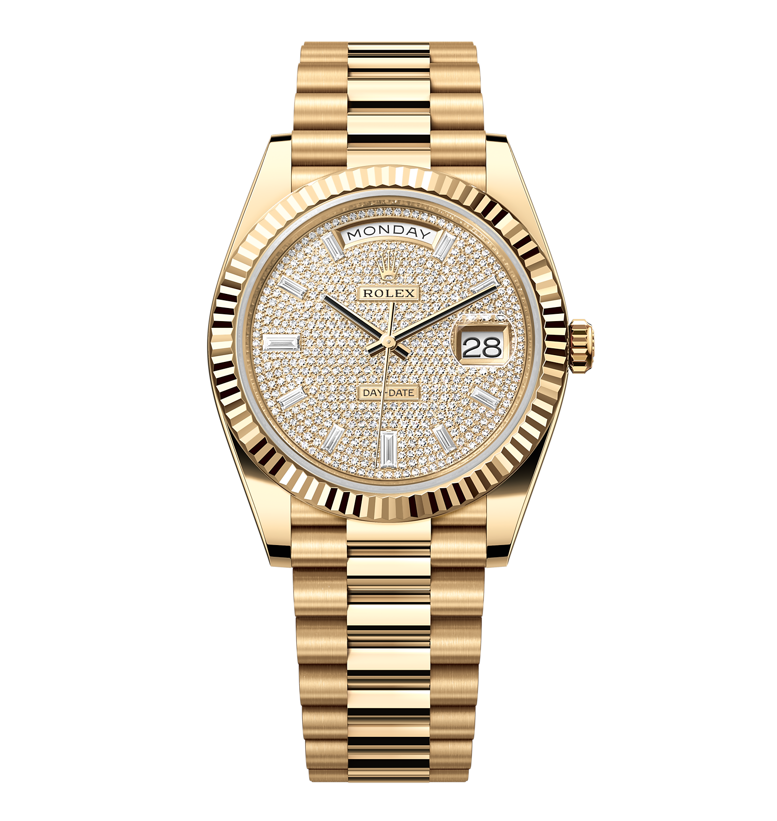 Rolex Day-Date – 40 mm – זהב צהוב לוח יהלומים גימור קצה