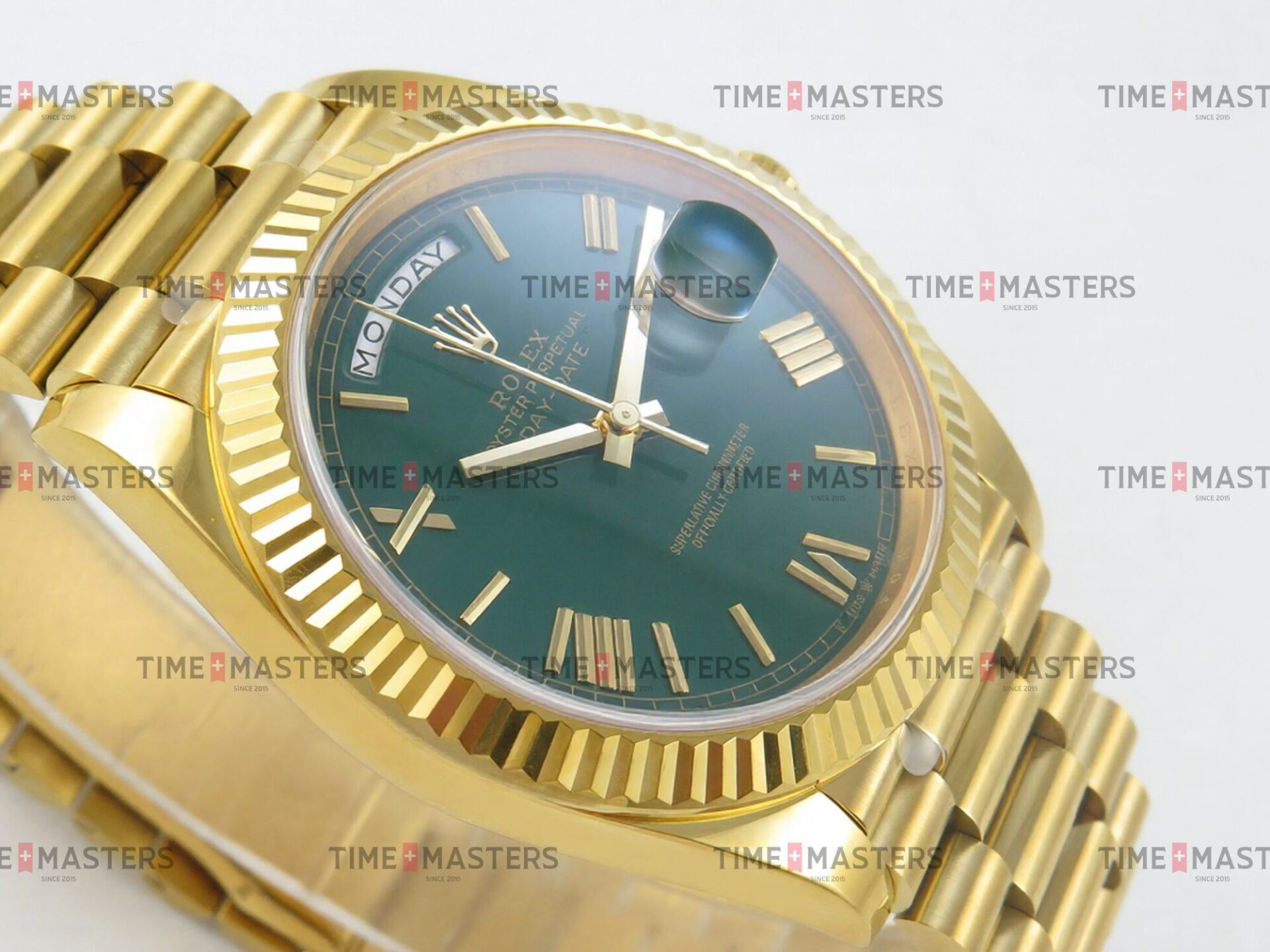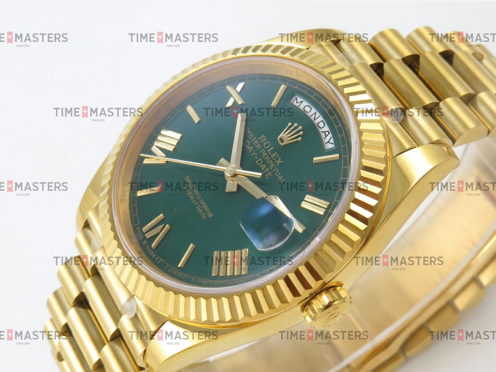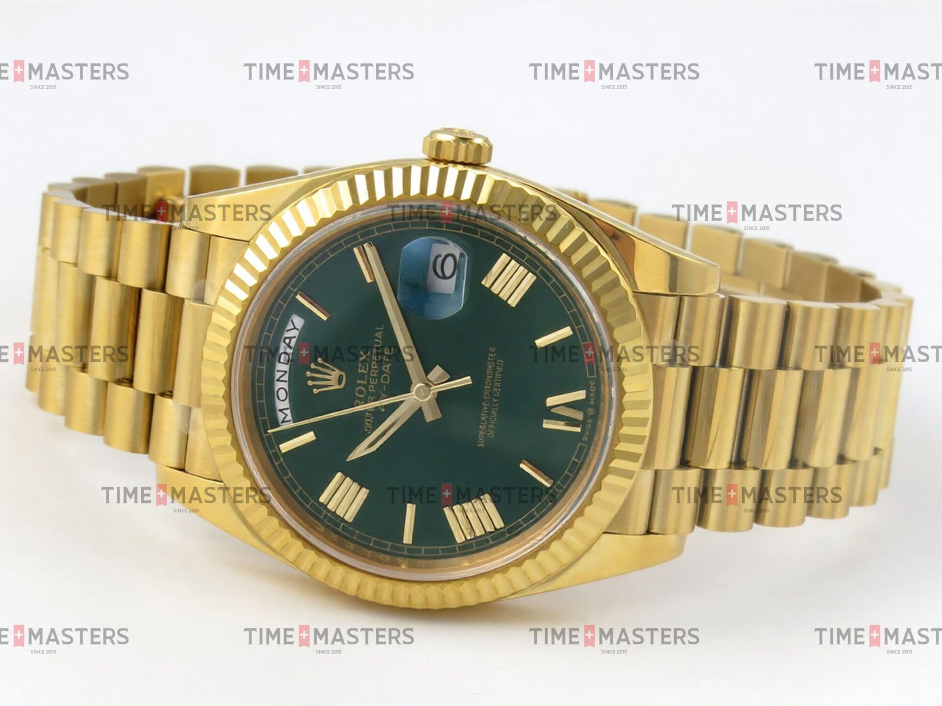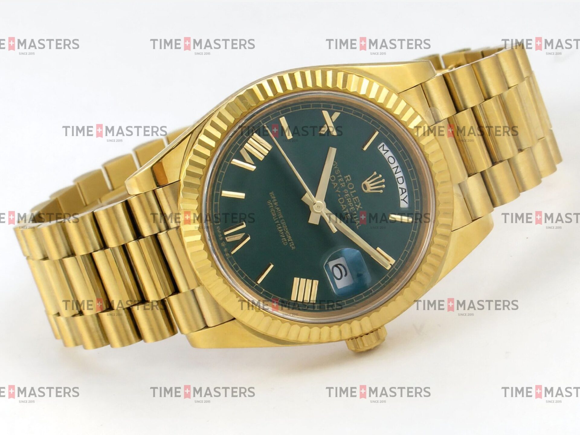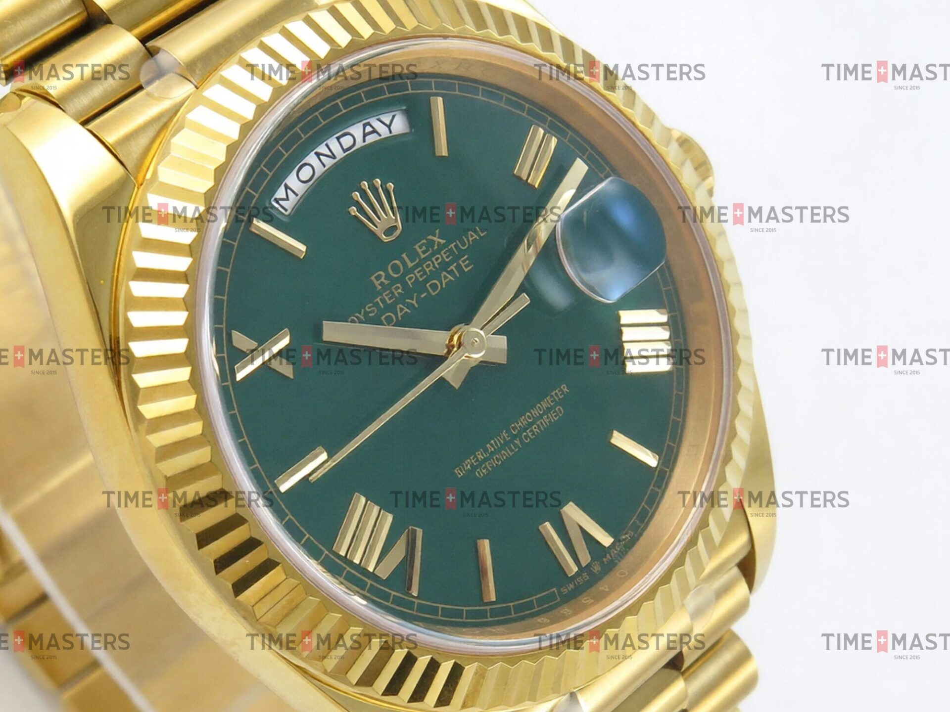 Rolex Day-Date – 40 mm – זהב צהוב לוח ירוק רומי גימור קצה