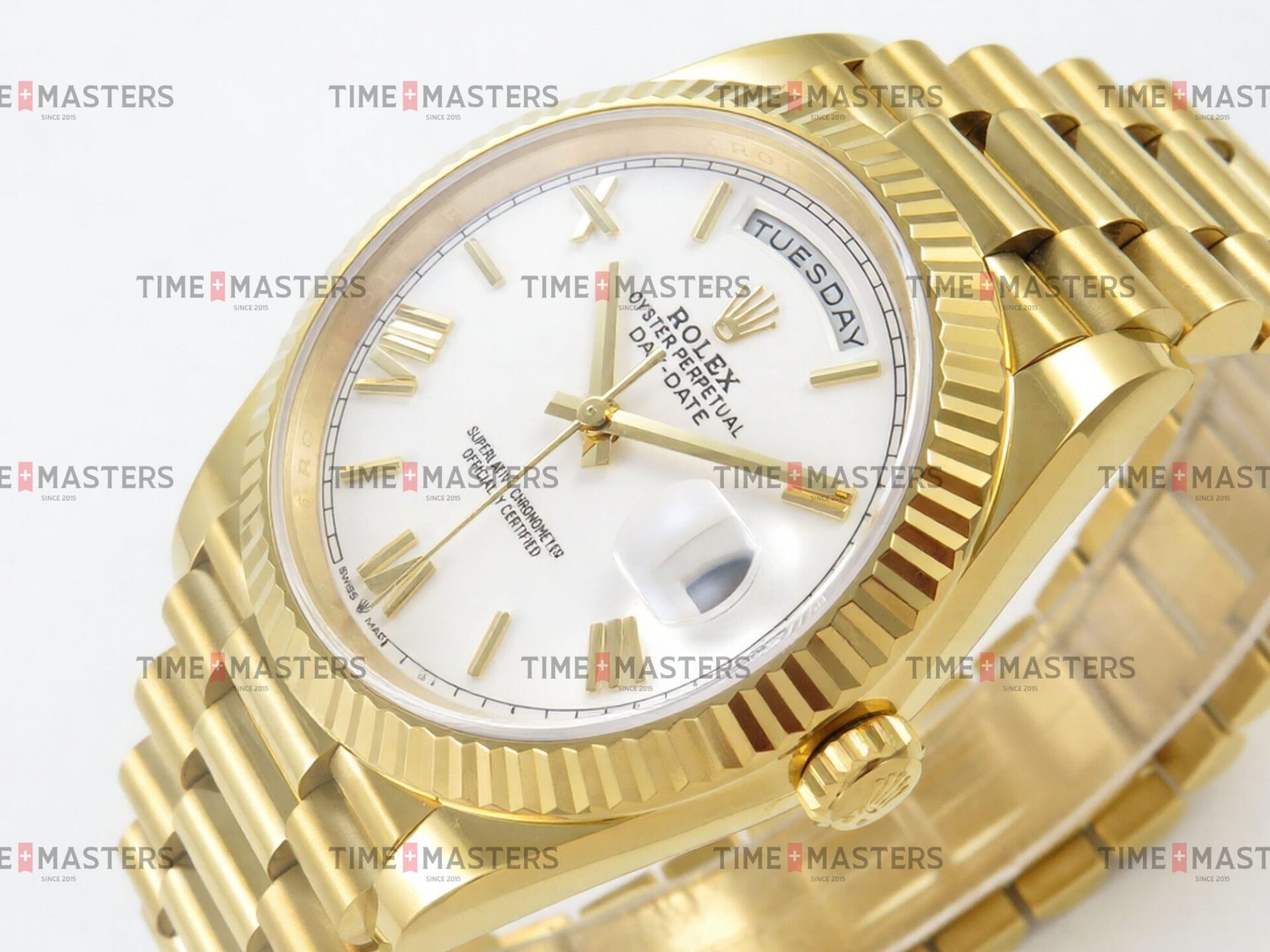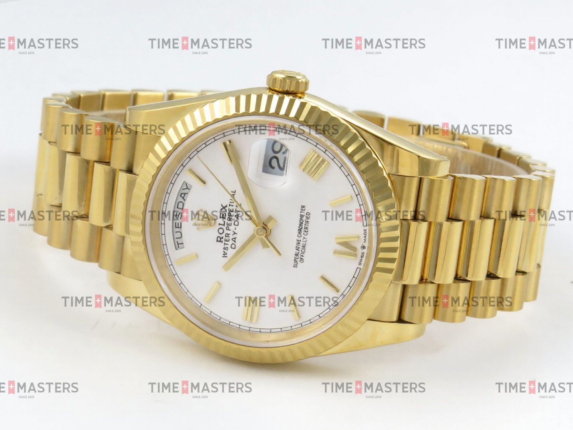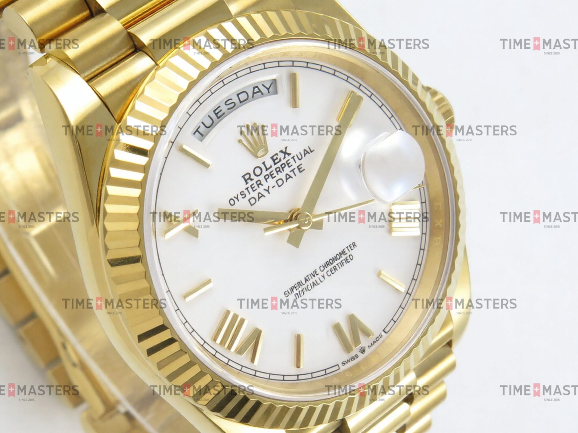Rolex Day-Date – 40 mm – זהב צהוב לוח לבן רומי גימור קצה