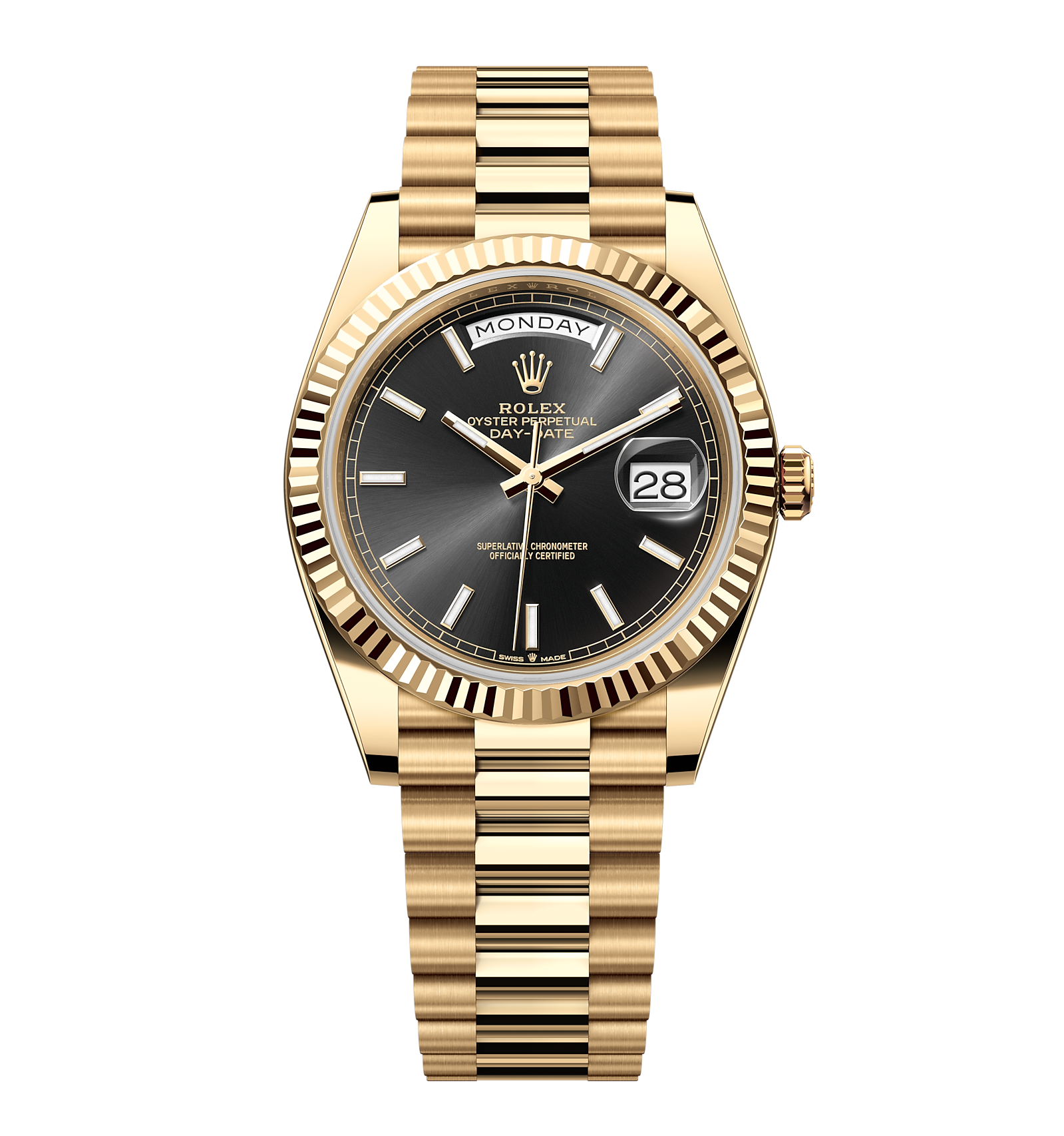 Rolex Day-Date – 40 mm – זהב צהוב לוח שחור גימור שוויצרי