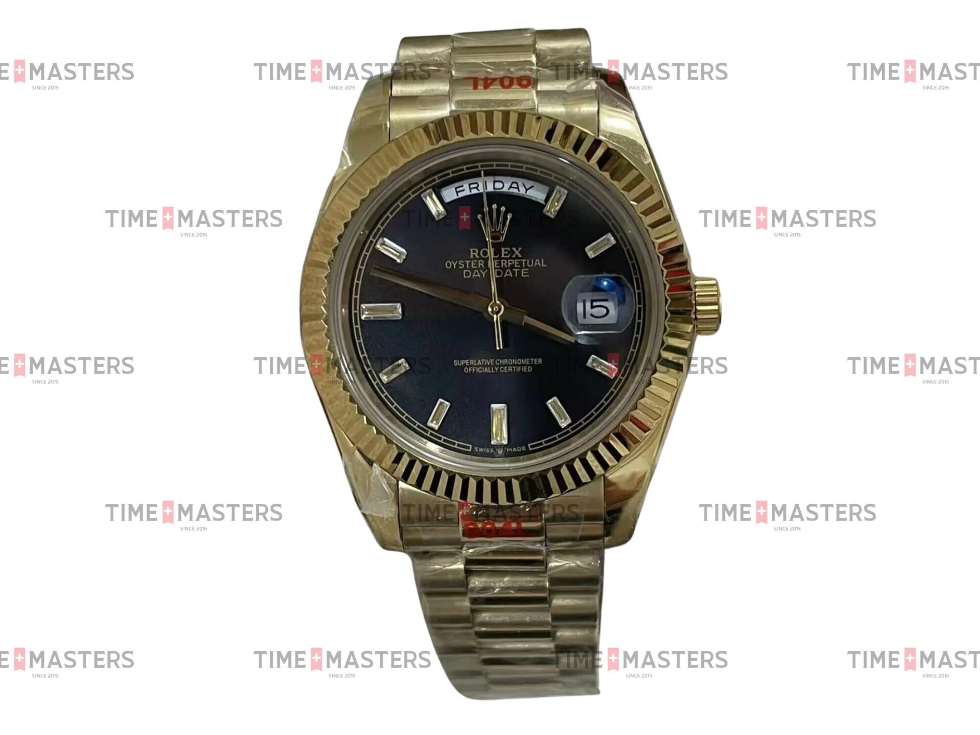 Rolex Day-Date – 40 mm – זהב צהוב לוח שחור יהלומים גימור שוויצרי