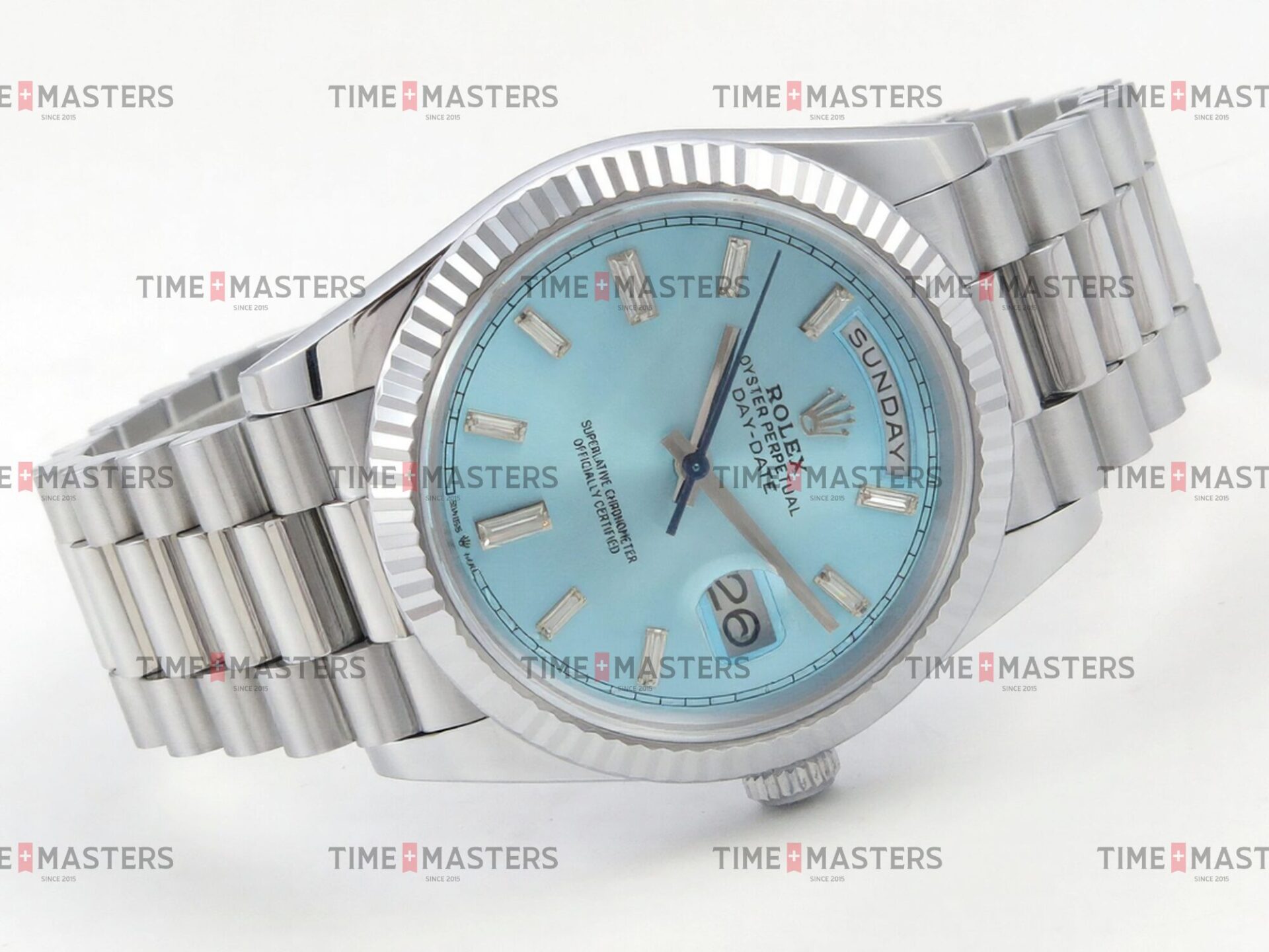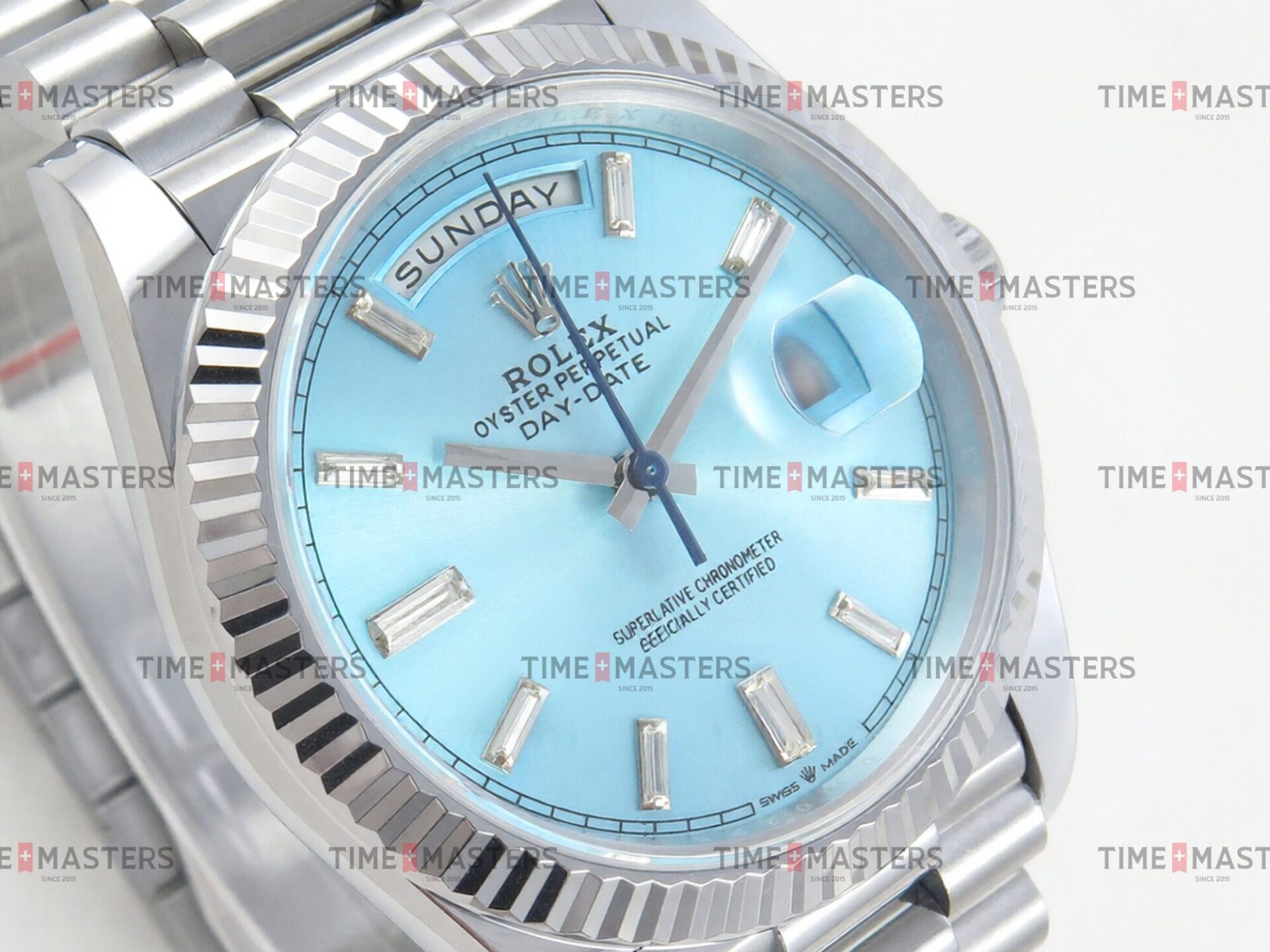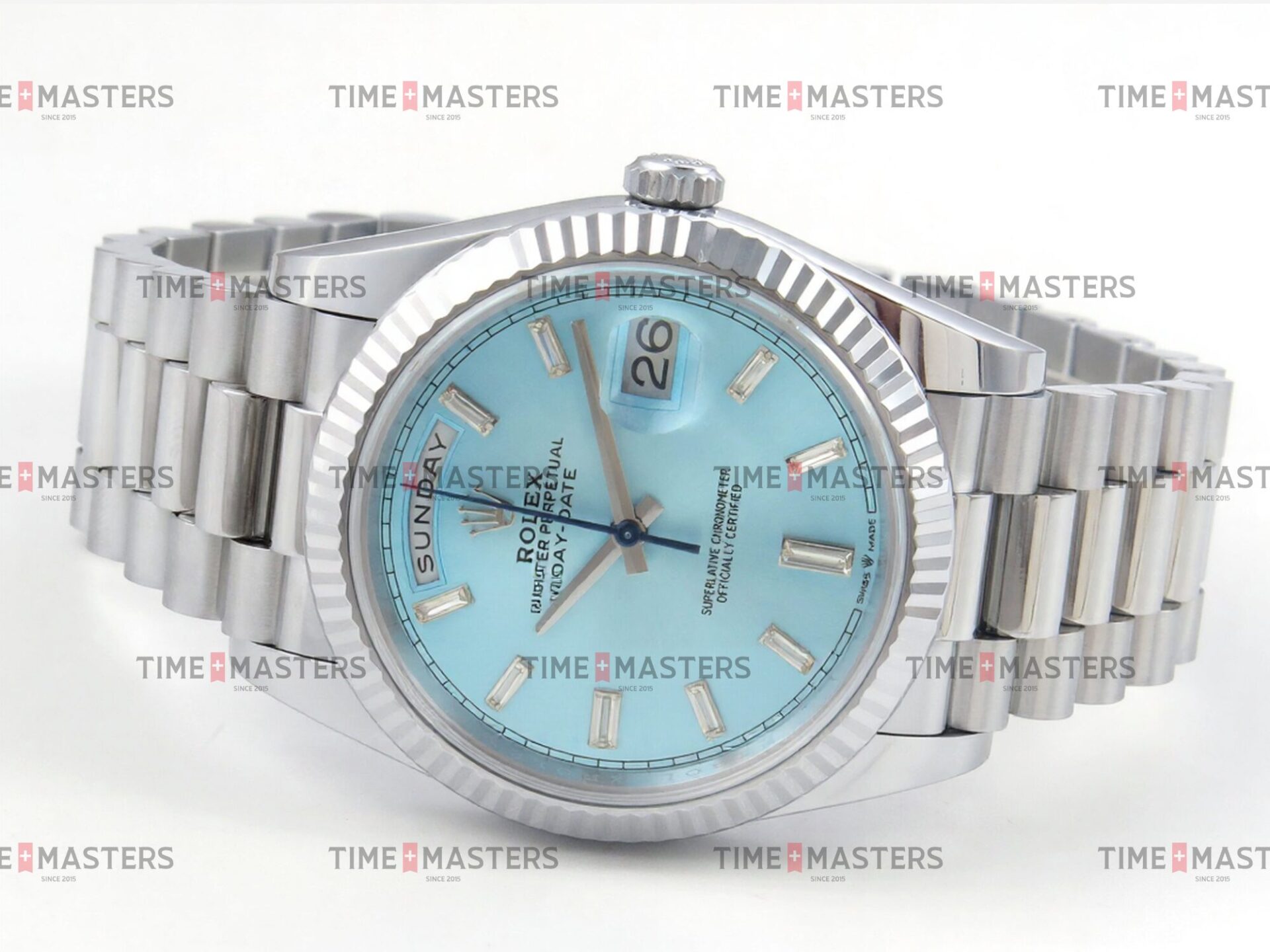Rolex Day-Date – 40 mm – פלטינה לוח תכלת יהלומים גימור קצה