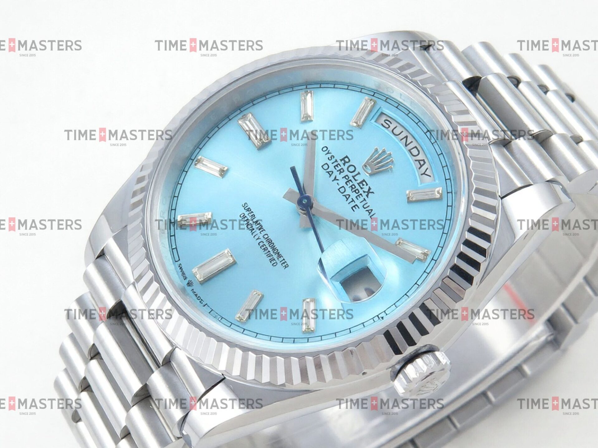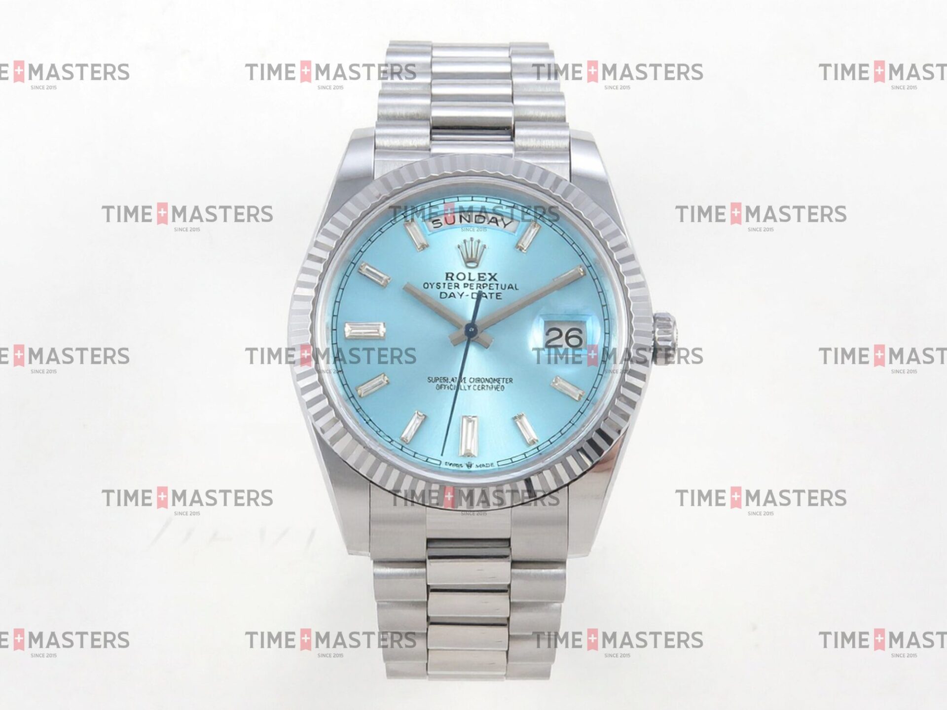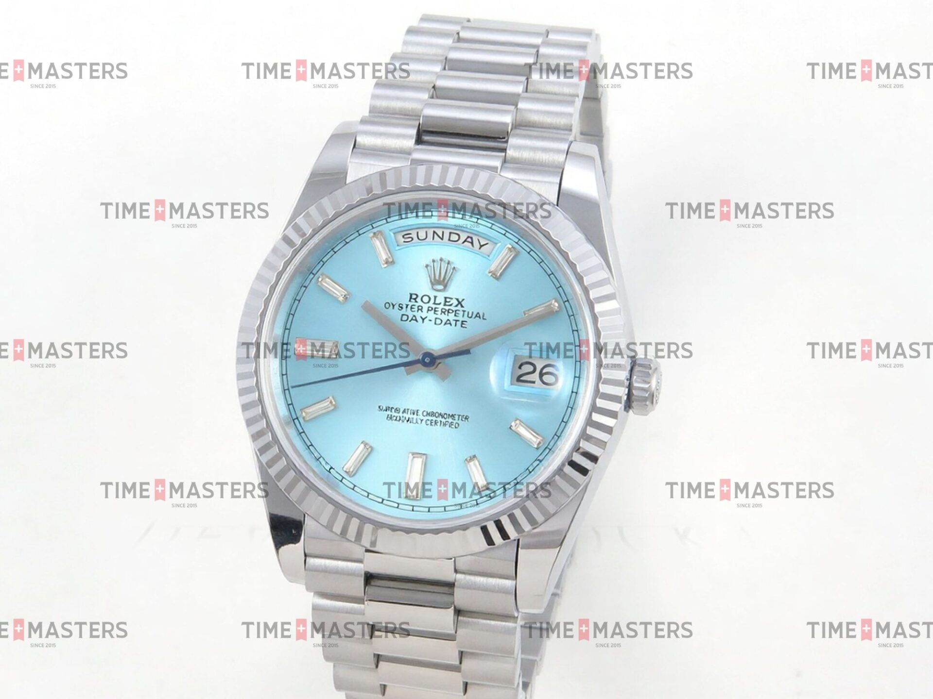 Rolex Day-Date – 40 mm – פלטינה לוח תכלת יהלומים גימור קצה