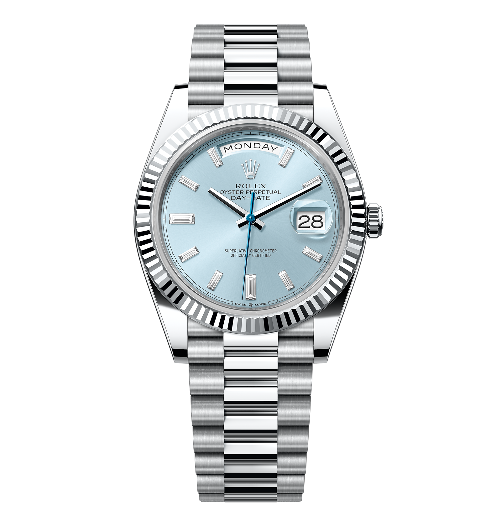Rolex Day-Date – 40 mm – פלטינה לוח תכלת יהלומים גימור שוויצרי