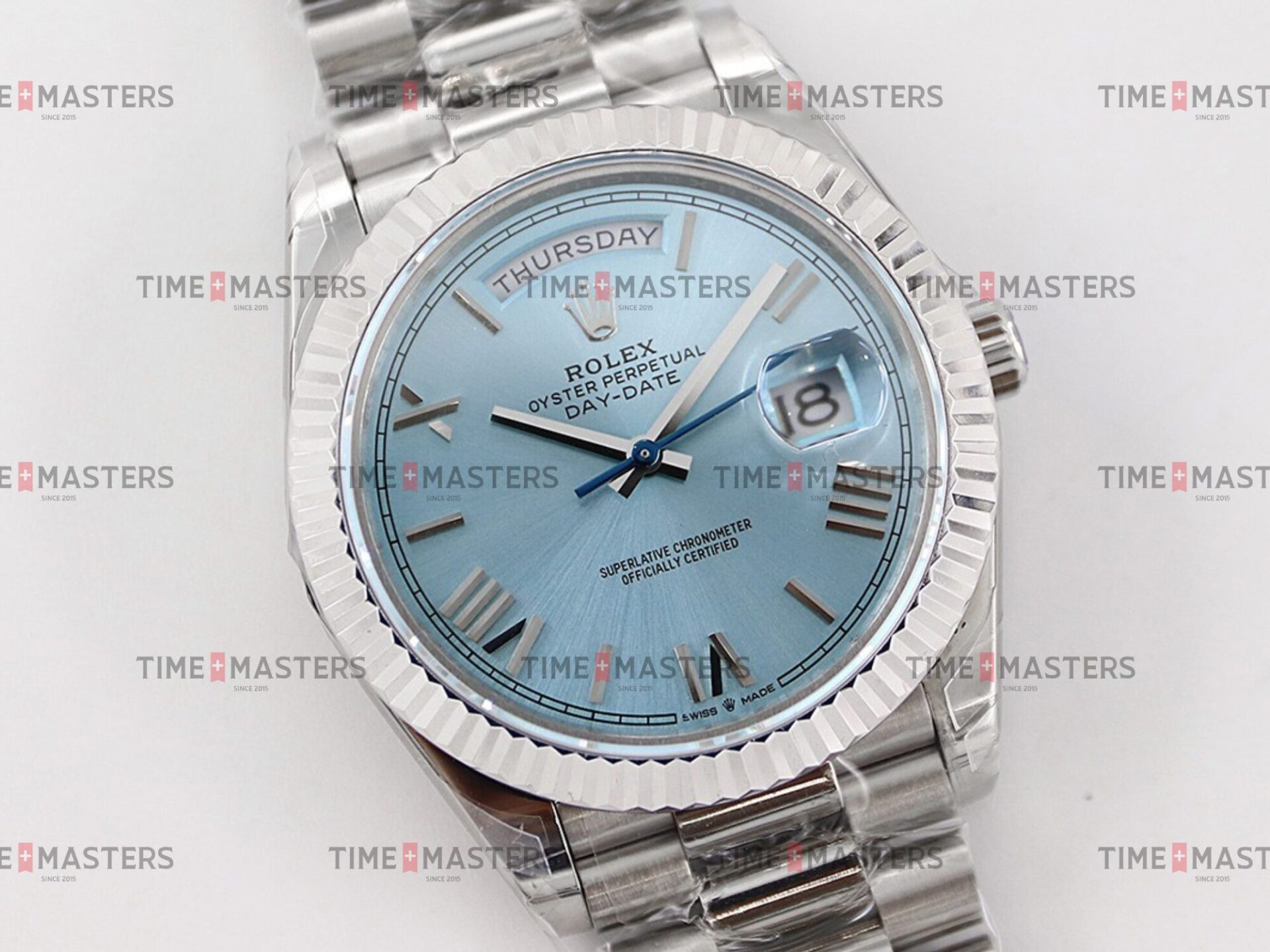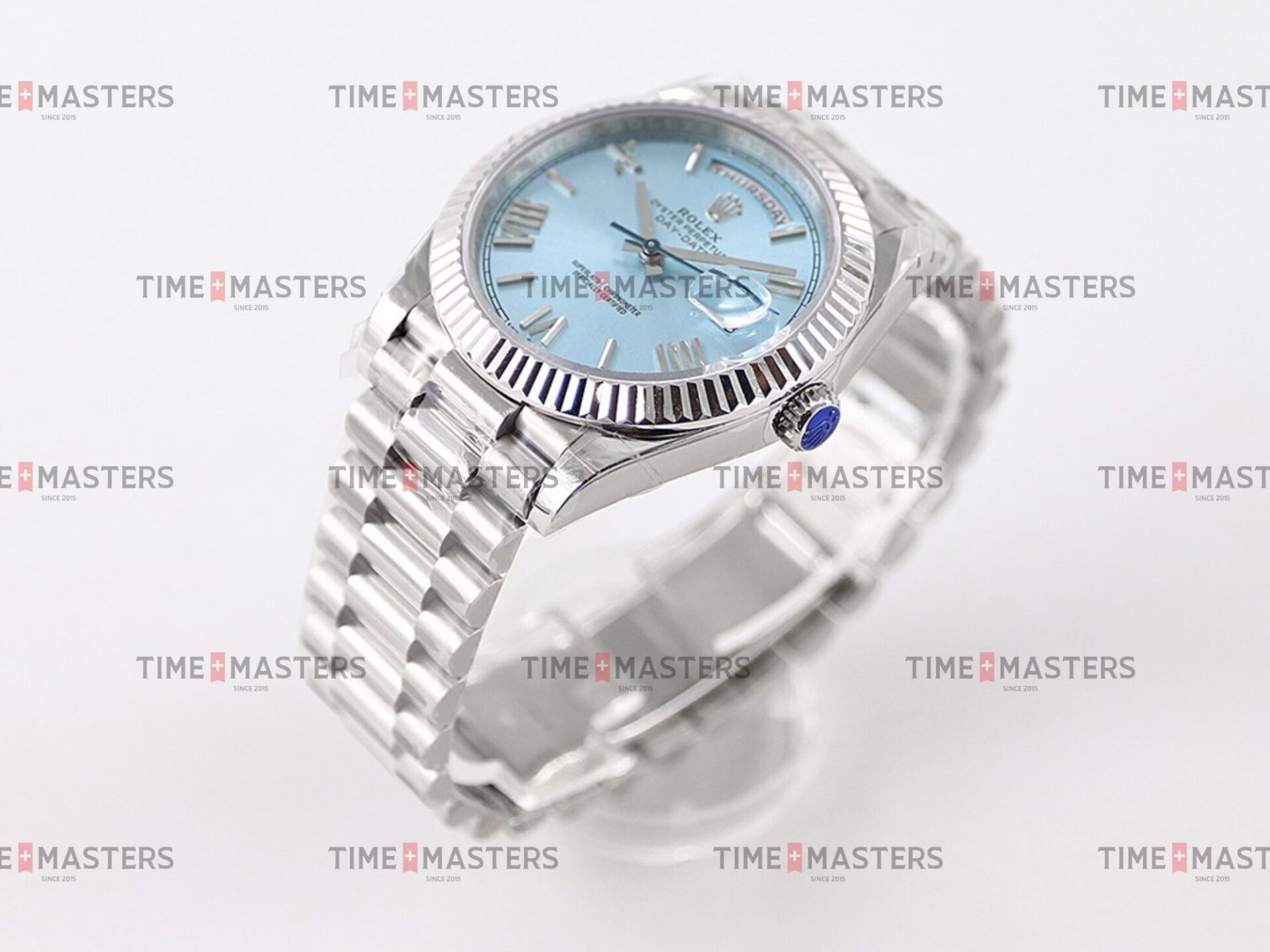 Rolex Day-Date – 40 mm – פלטינה לוח תכלת רומי גימור קצה