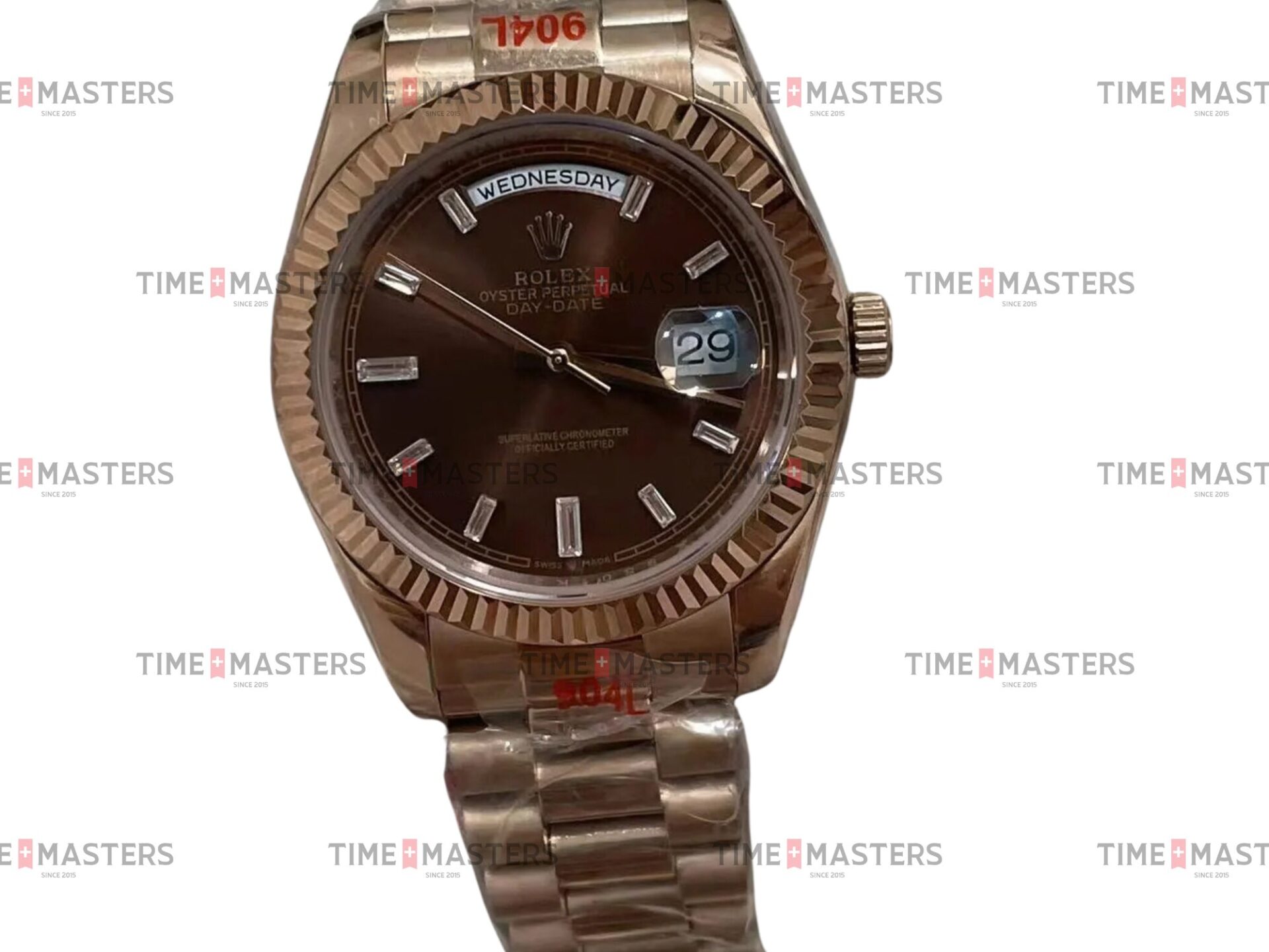 Rolex Day-Date – 40 mm – רוז גולד לוח שוקולד גימור שוויצרי
