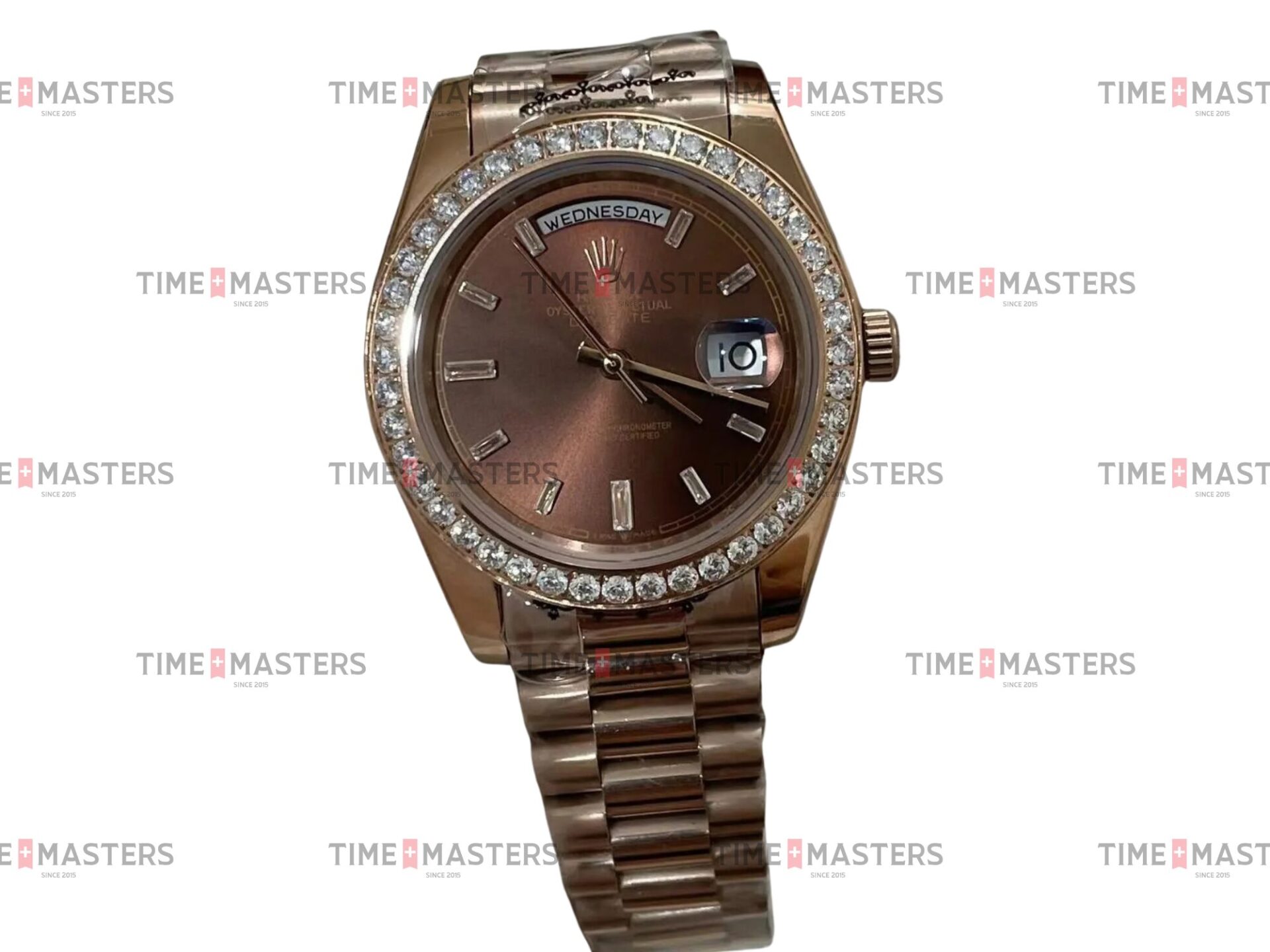 Rolex Day-Date – 40 mm – רוז גולד לוח שוקולד יהלומים באזל יהלומים גימור שוויצרי