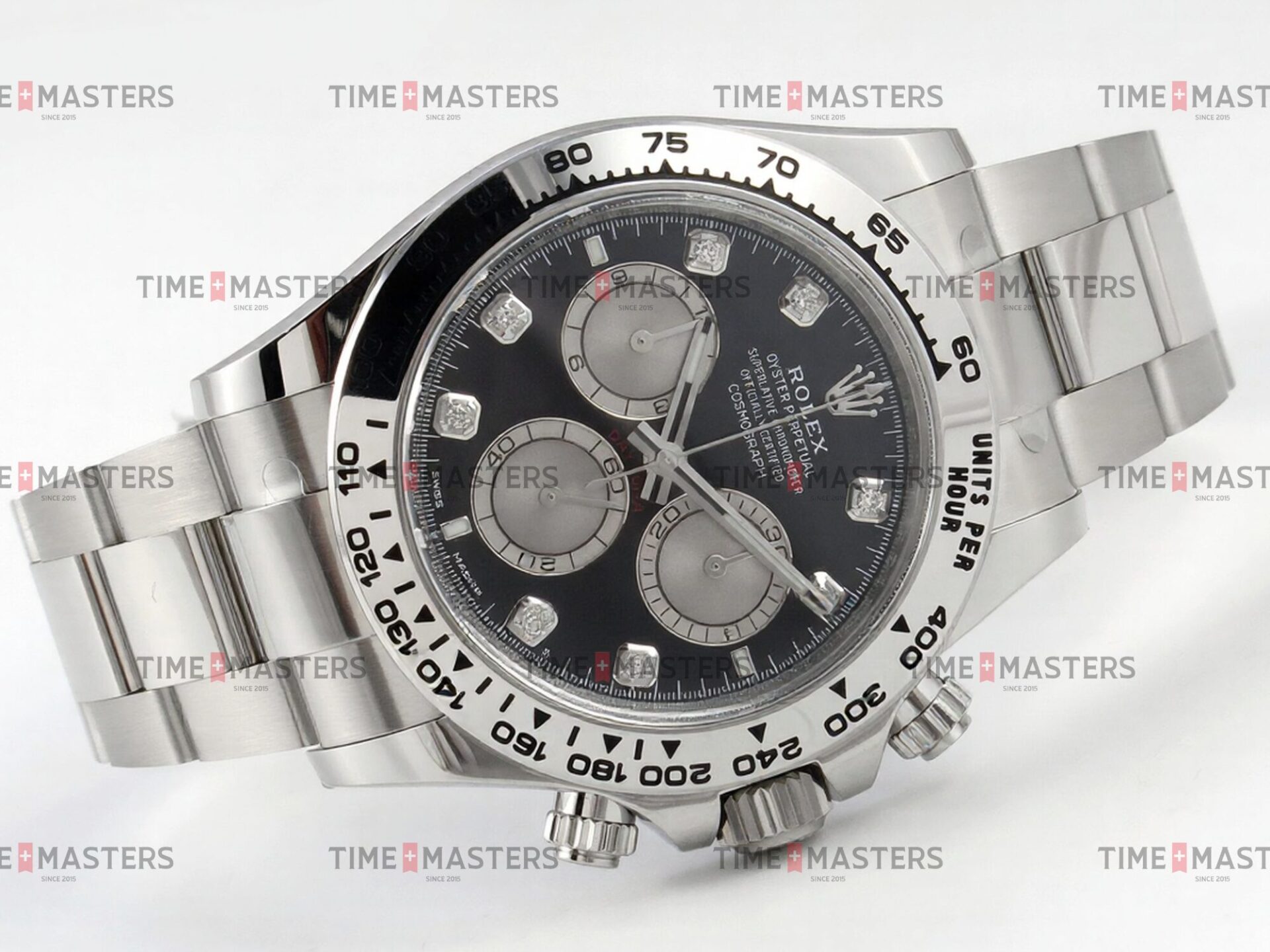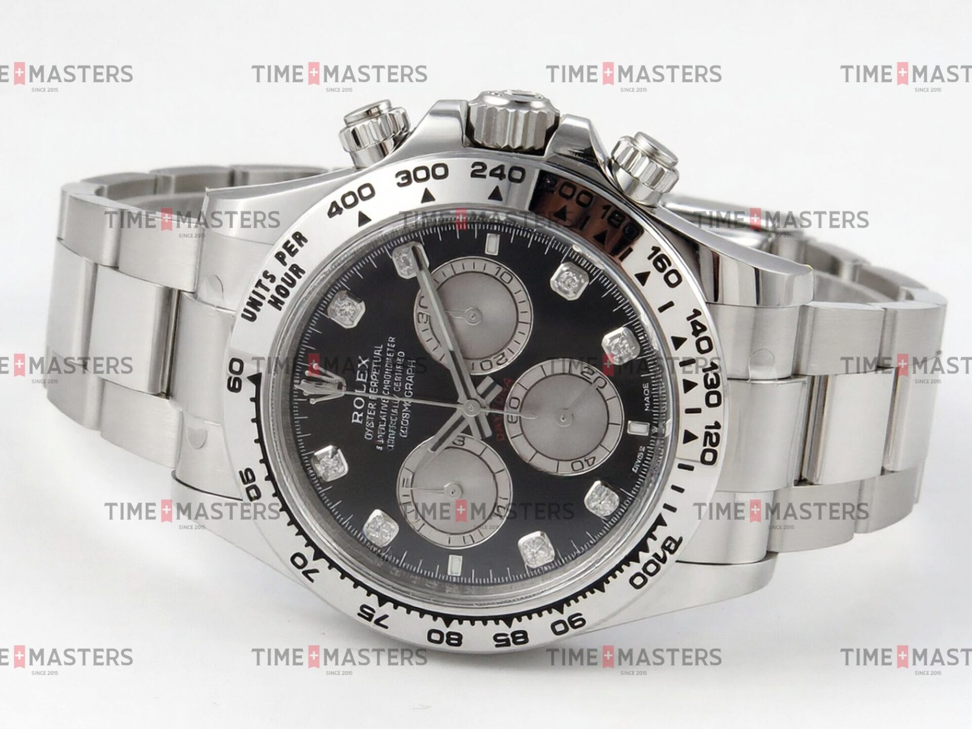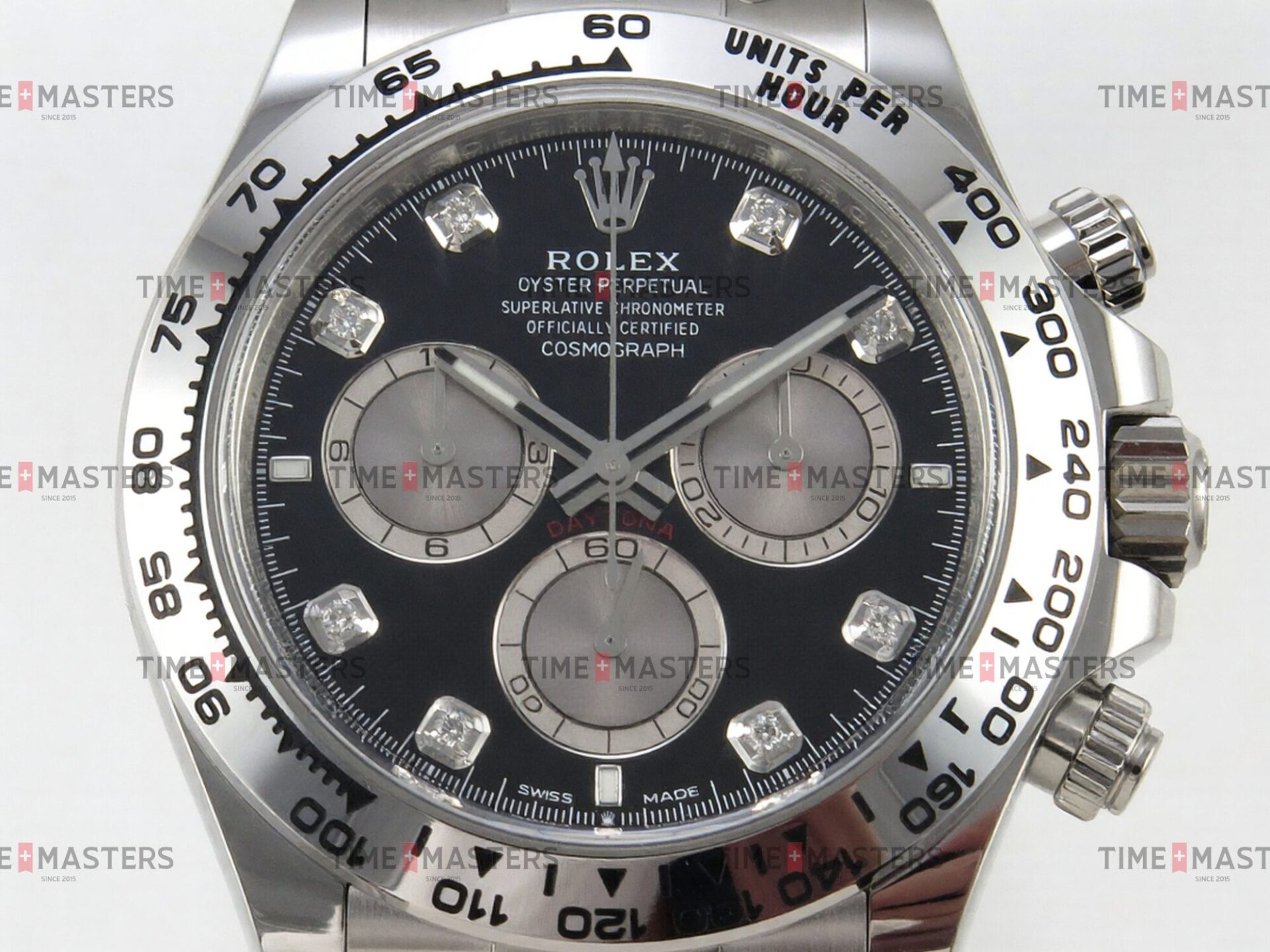 Rolex Daytona Cosmograph – 40 mm – זהב לבן לוח שחור יהלומים גימור קצה