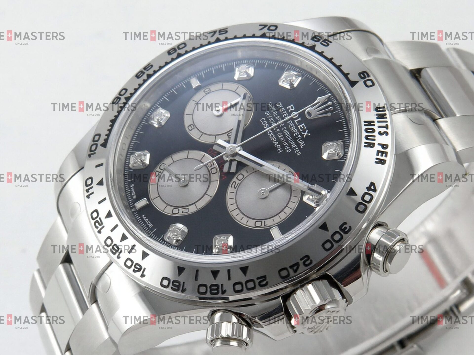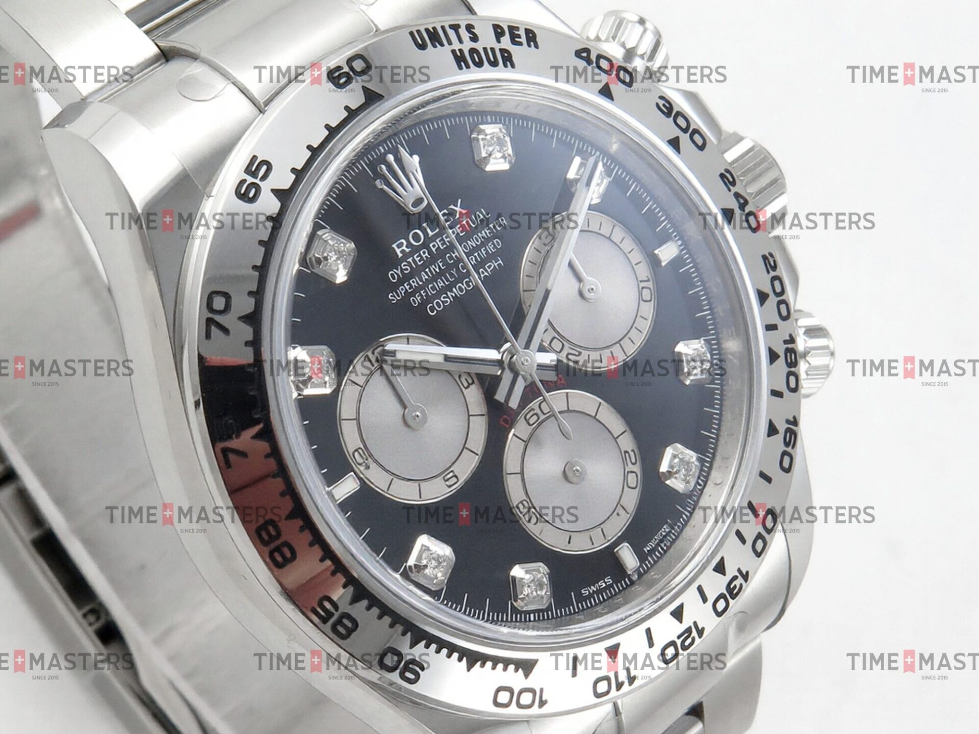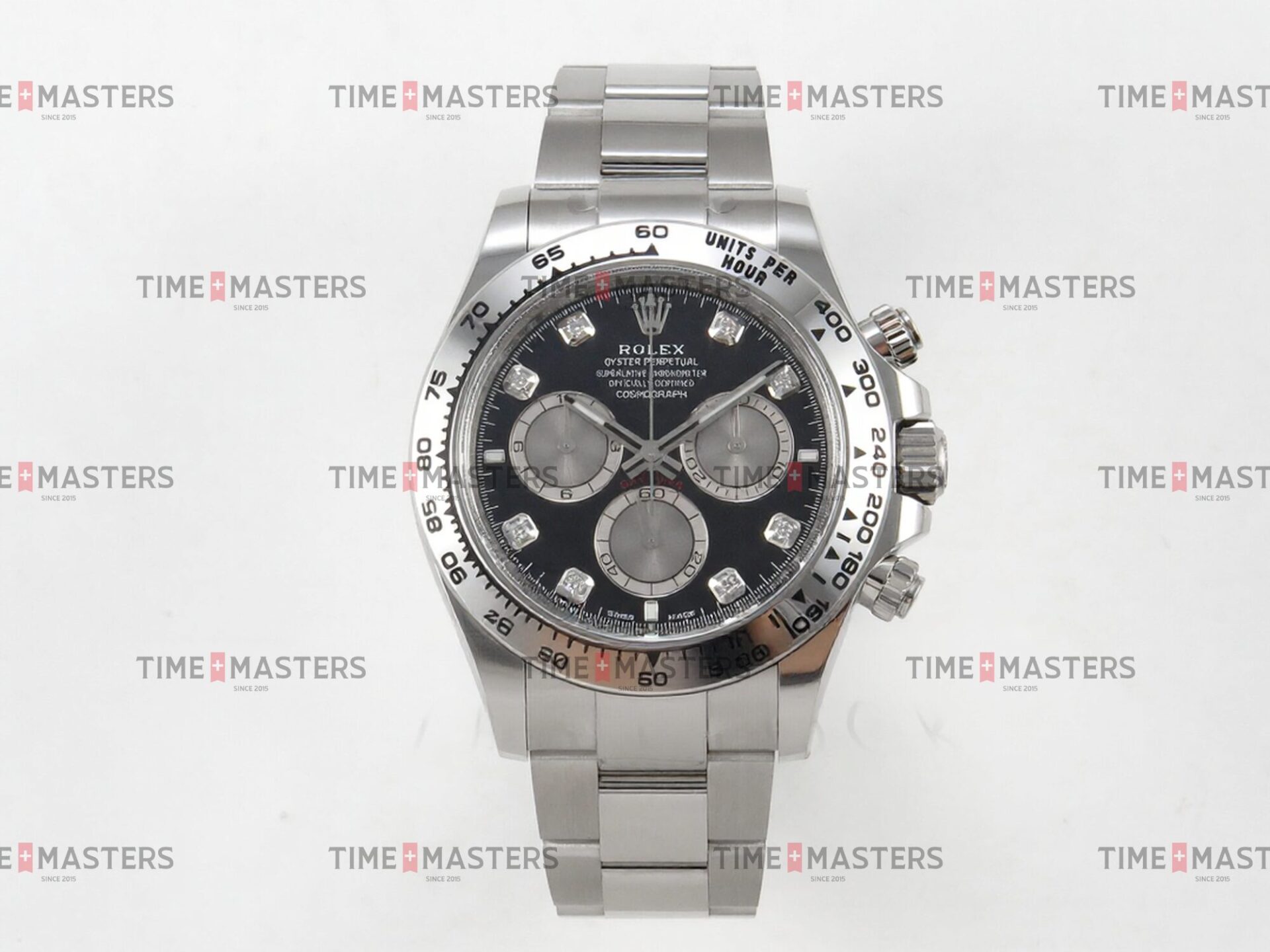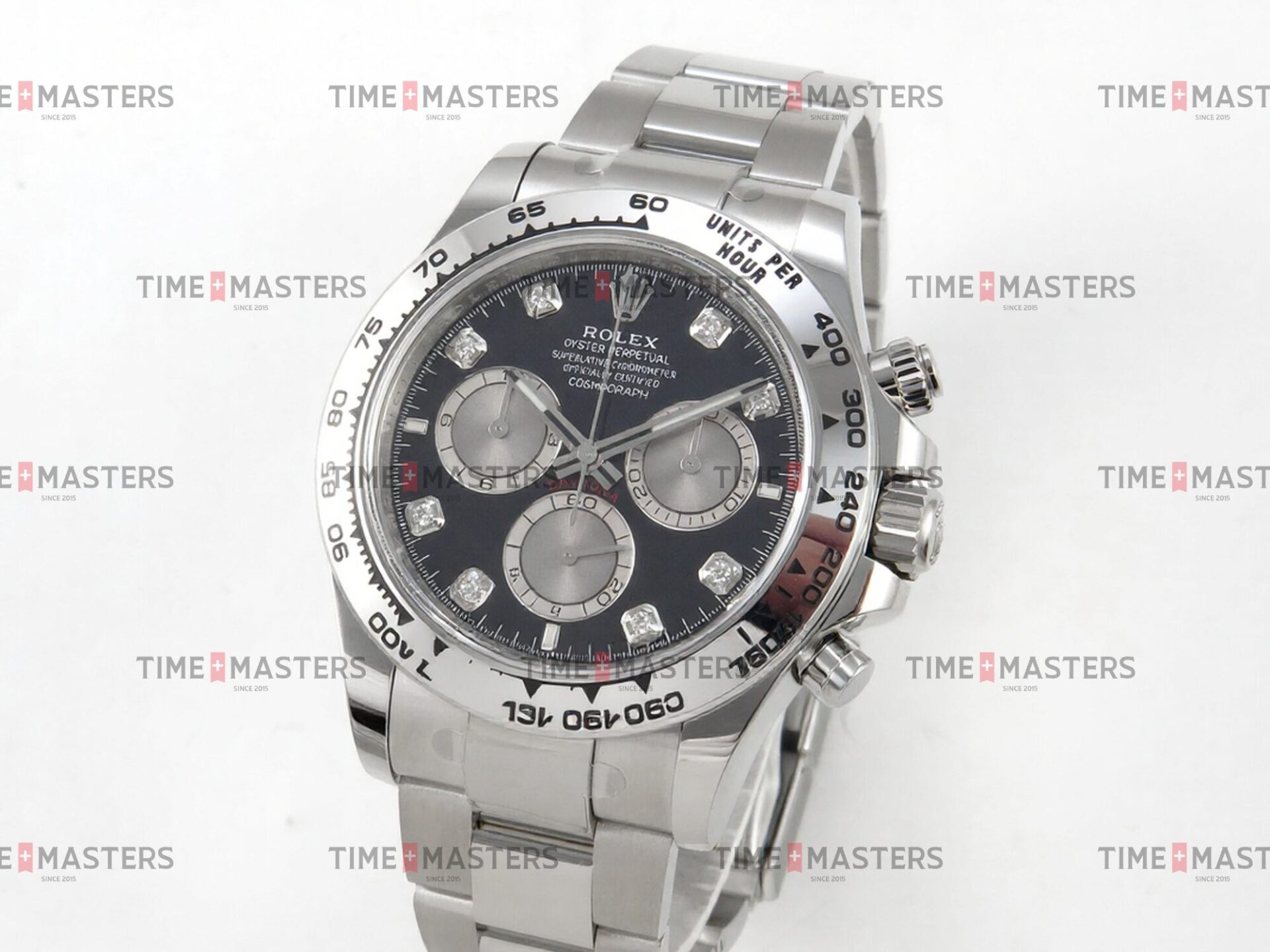 Rolex Daytona Cosmograph – 40 mm – זהב לבן לוח שחור יהלומים גימור קצה