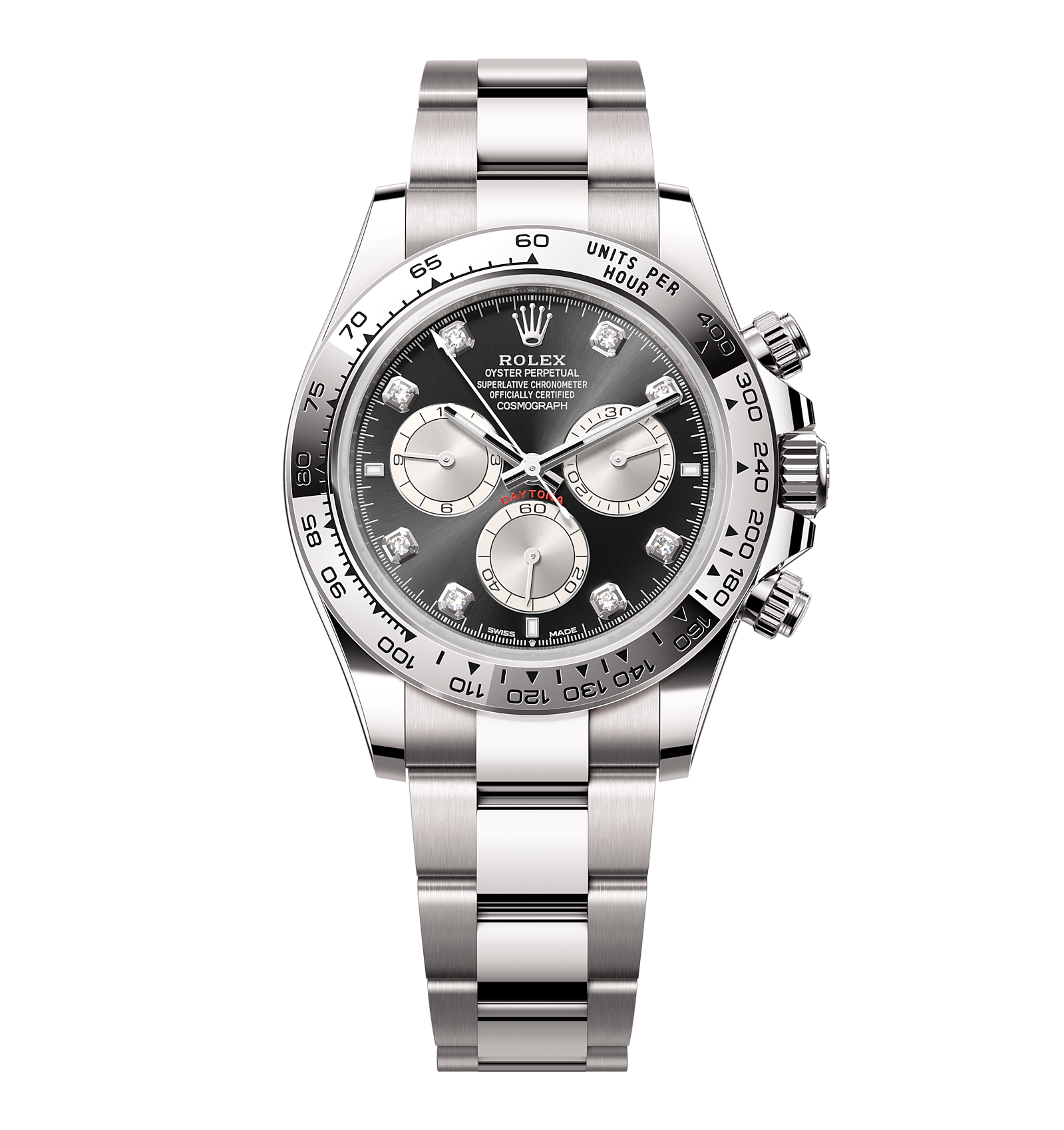 Rolex Daytona Cosmograph – 40 mm – זהב לבן לוח שחור יהלומים גימור שוויצרי