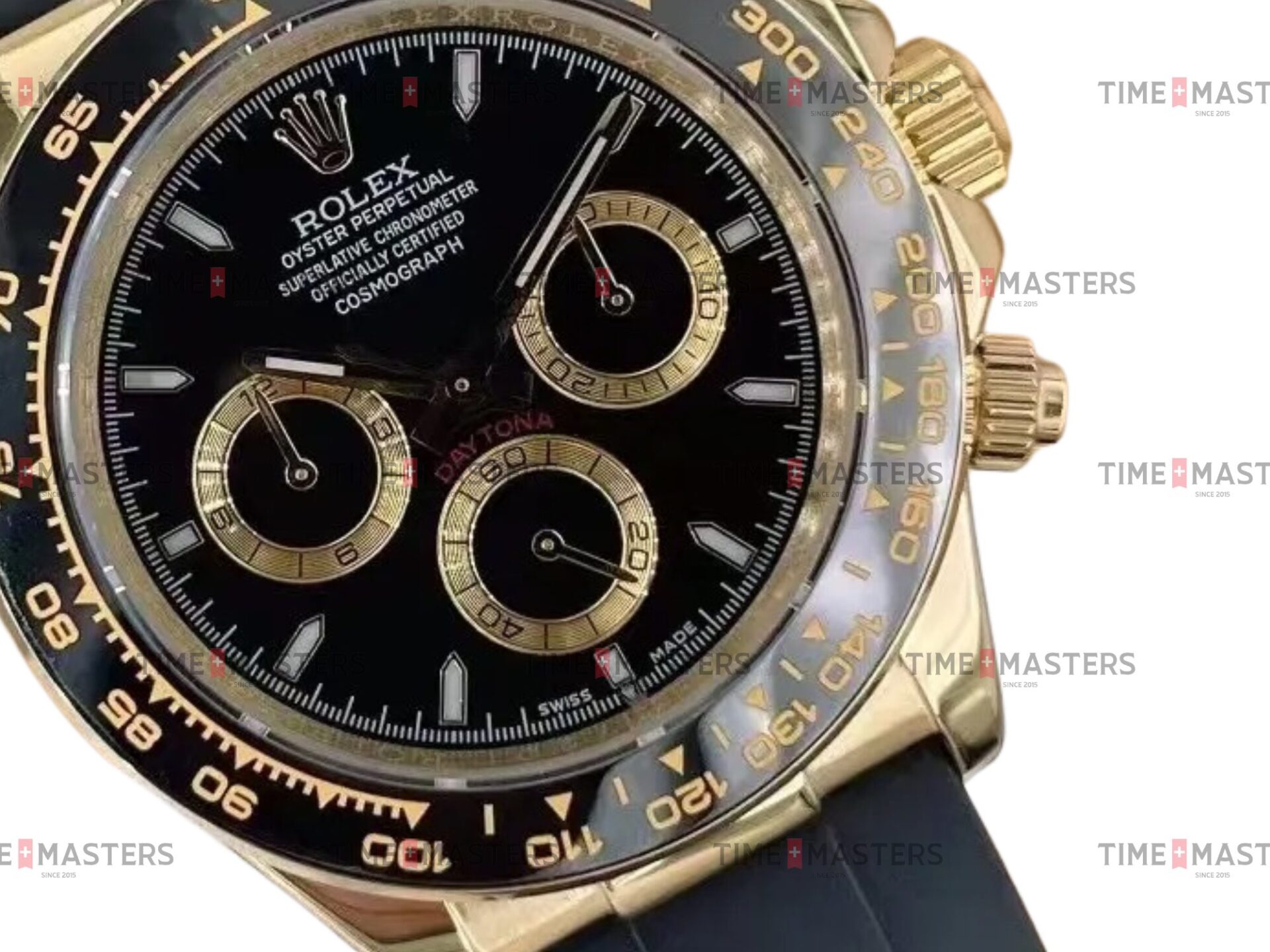 Rolex Daytona Cosmograph – 40 mm – זהב צהוב לוח שחור רצעות אויסטרפלקס גימור שוויצרי