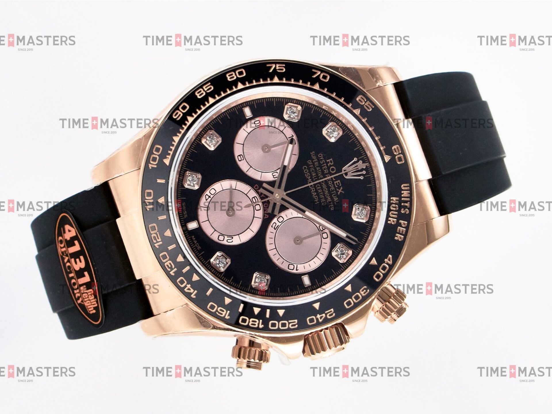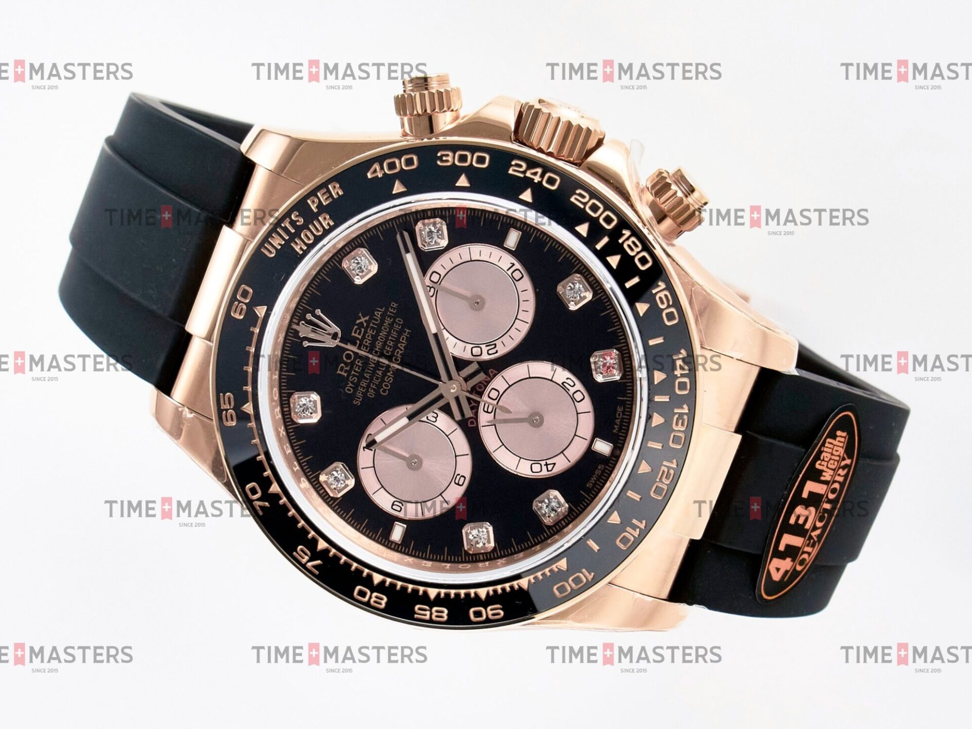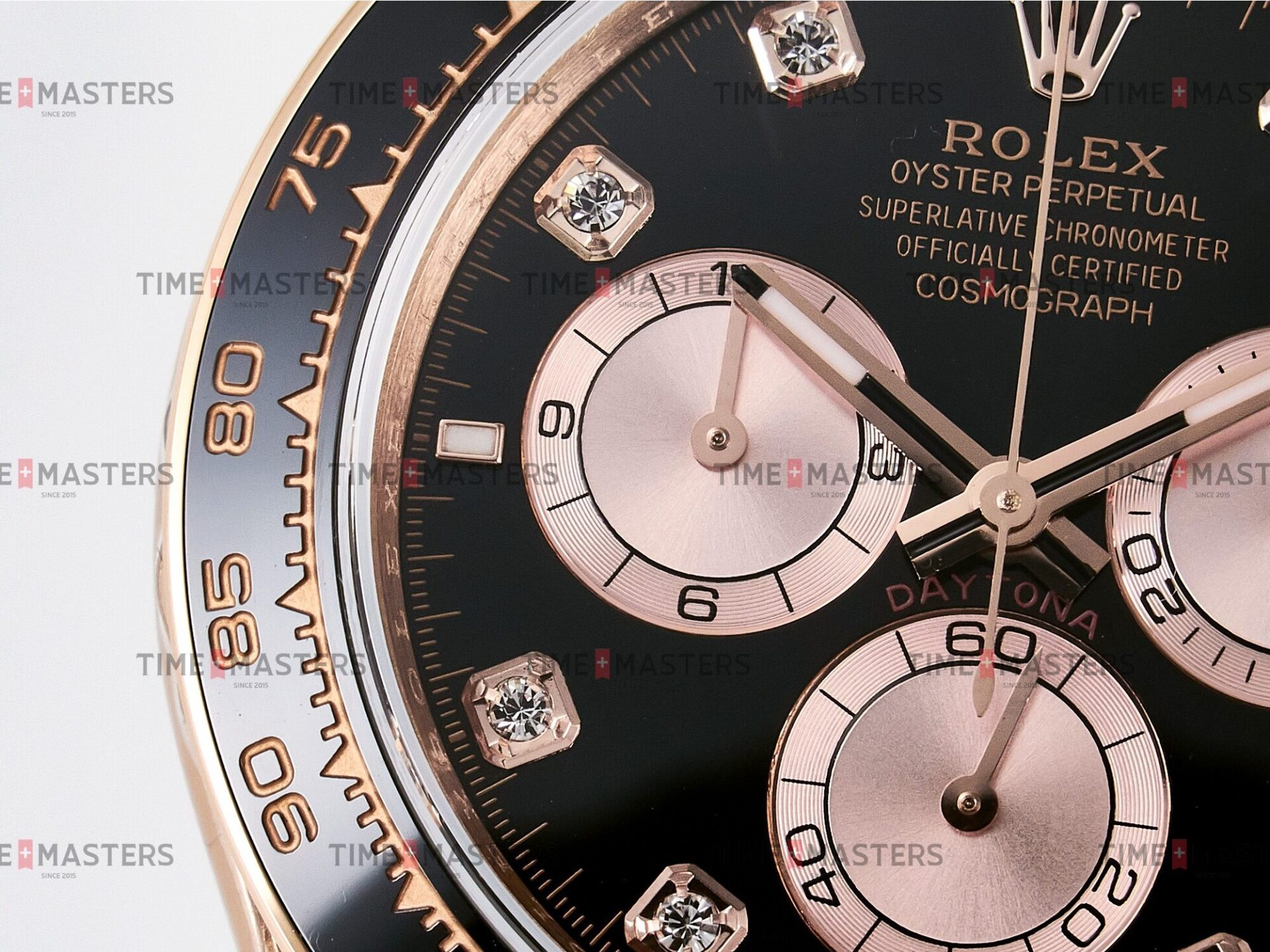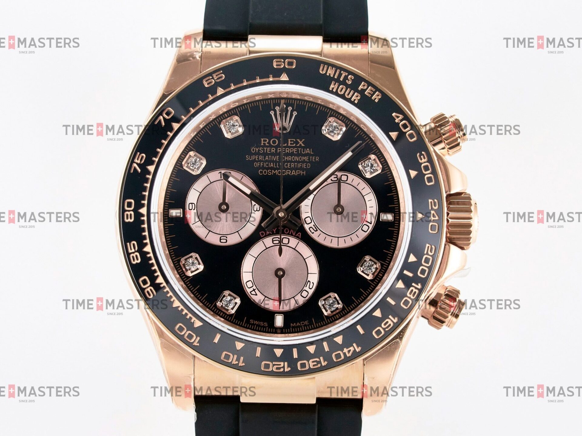 Rolex Daytona Cosmograph – 40 mm – רוז גולד לוח שחור יהולומים רצעות אויסטרפלקס גימור קצה