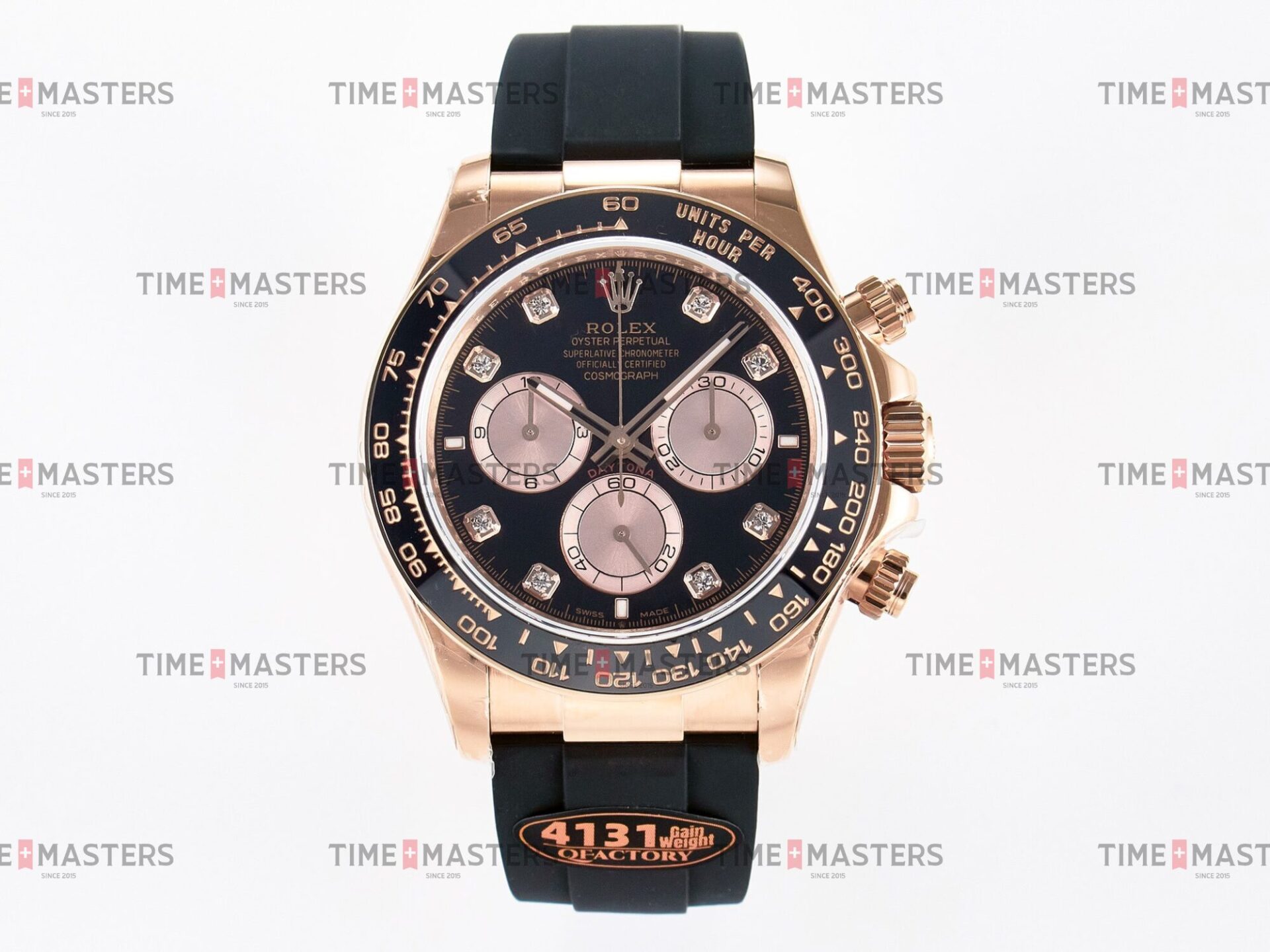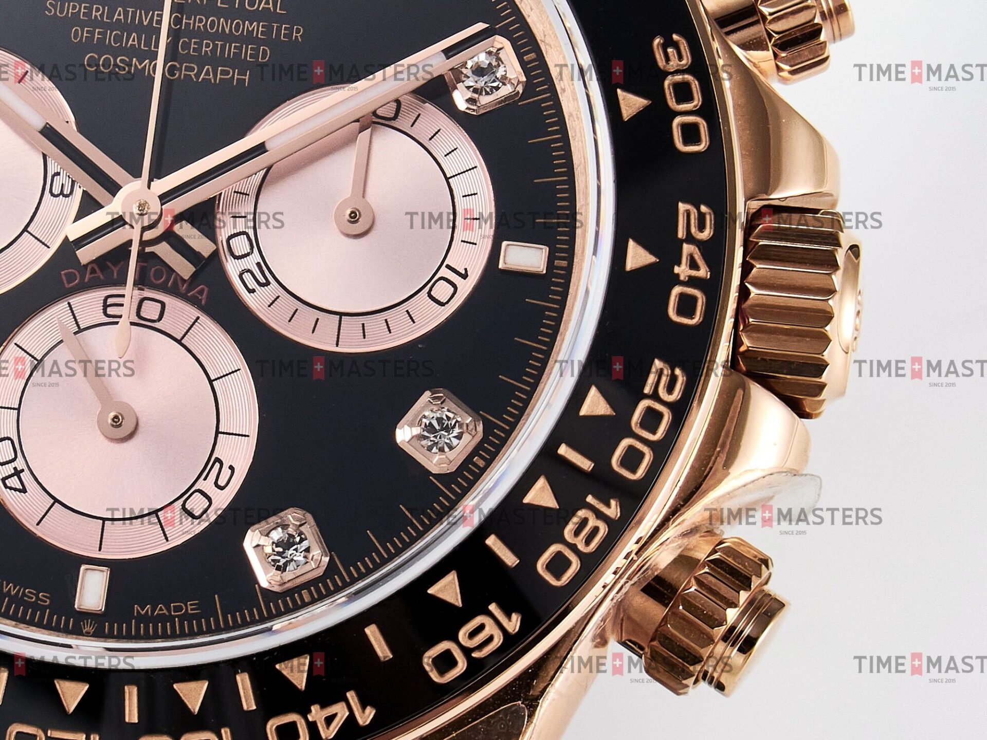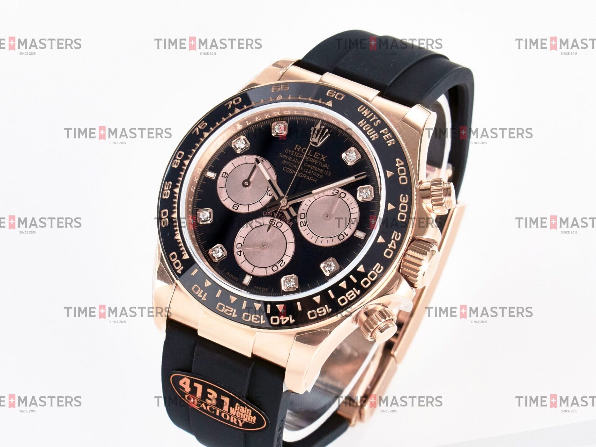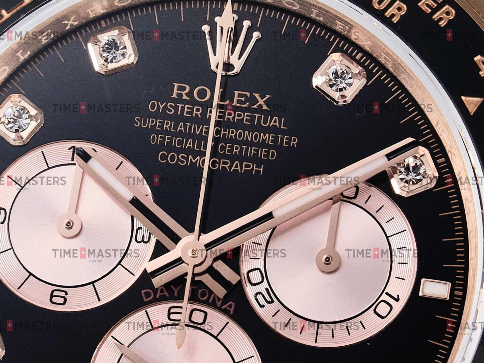 Rolex Daytona Cosmograph – 40 mm – רוז גולד לוח שחור יהולומים רצעות אויסטרפלקס גימור קצה