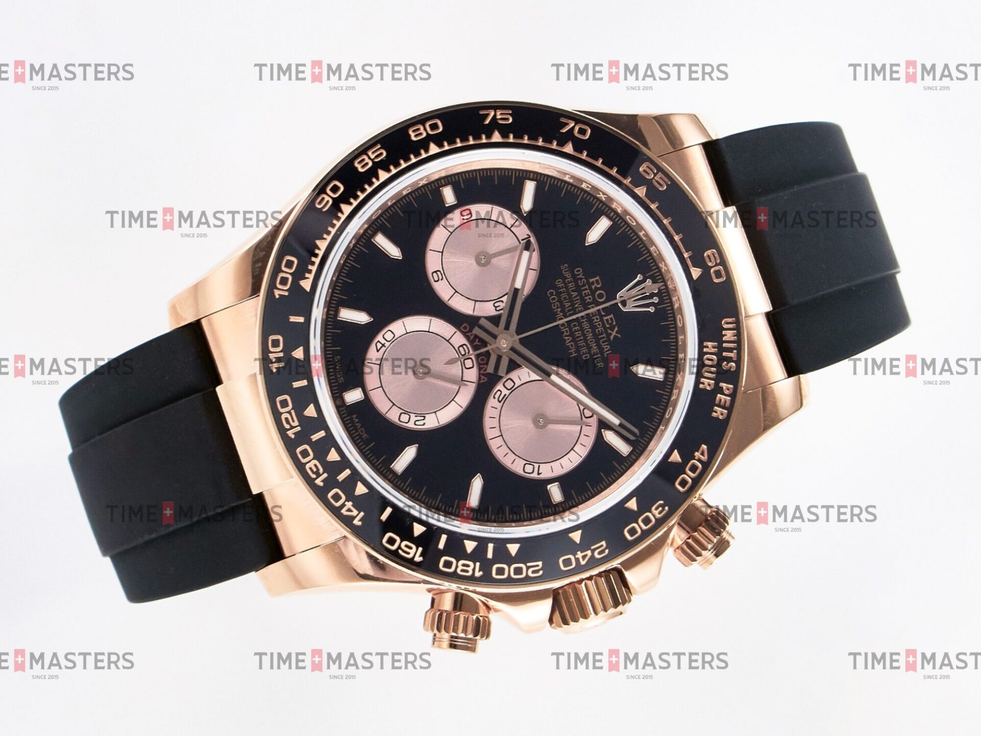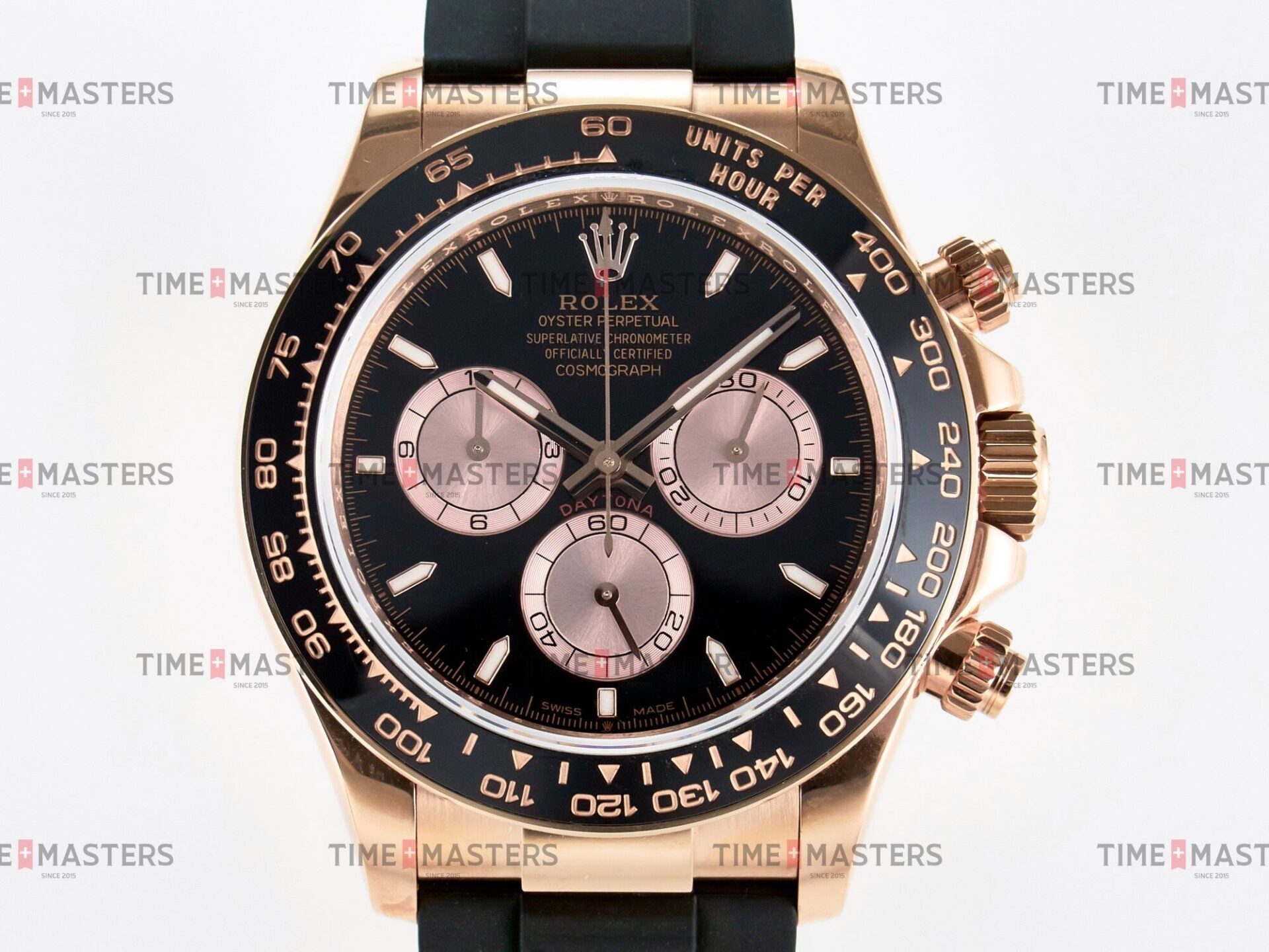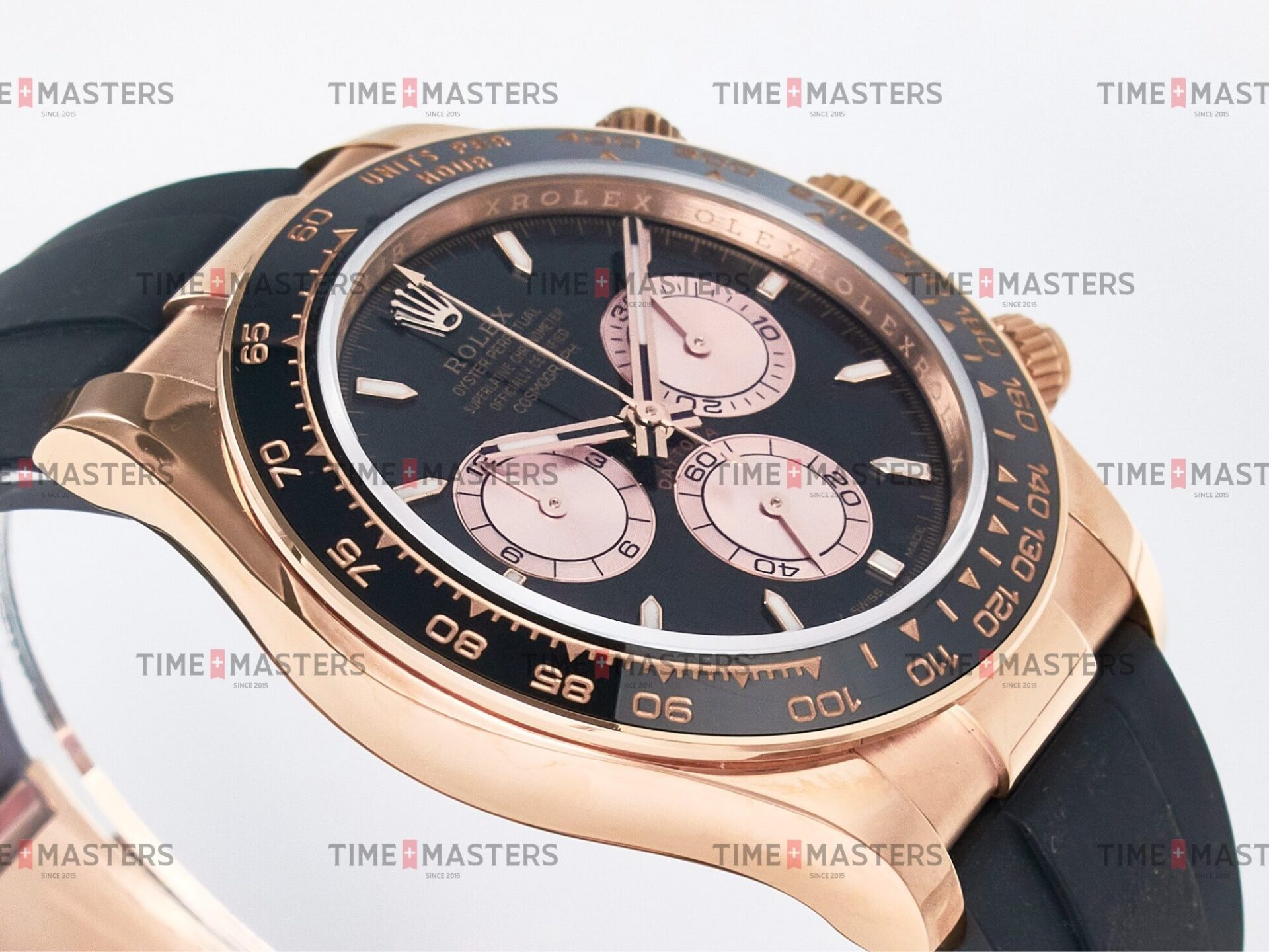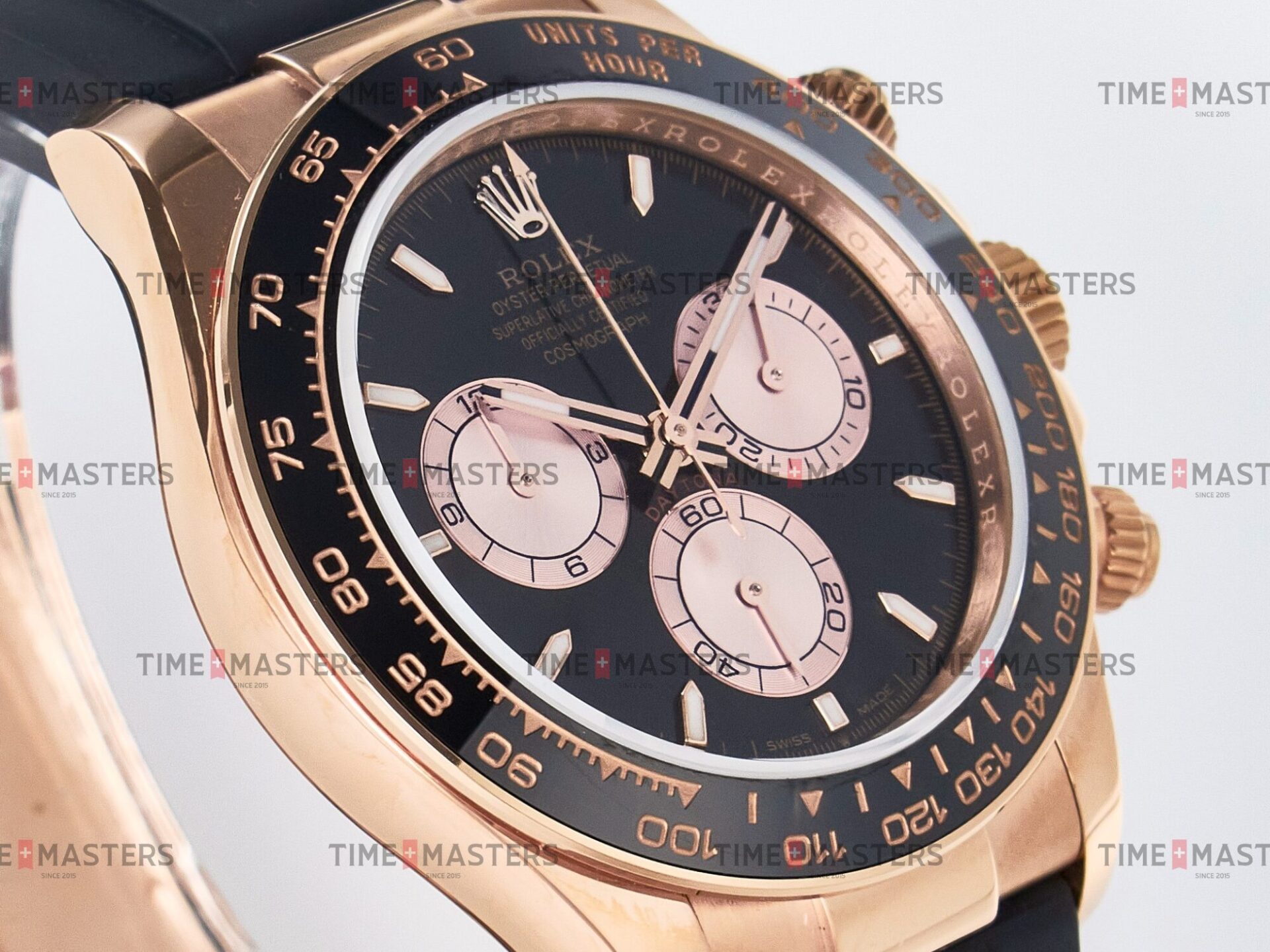 Rolex Daytona Cosmograph – 40 mm – רוז גולד לוח שחור רצעות אויסטרפלקס גימור קצה