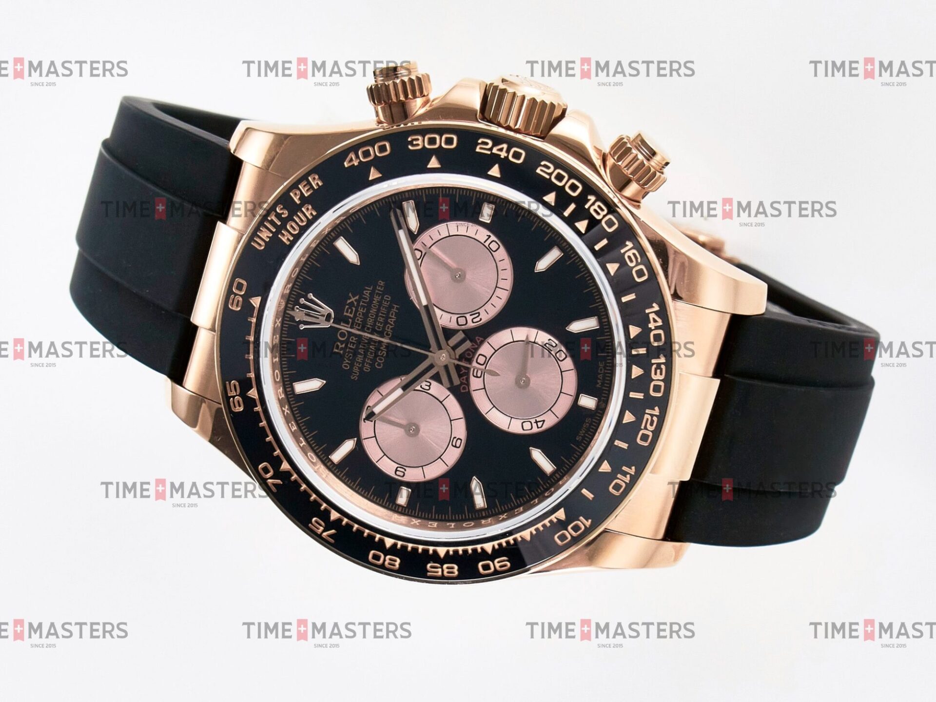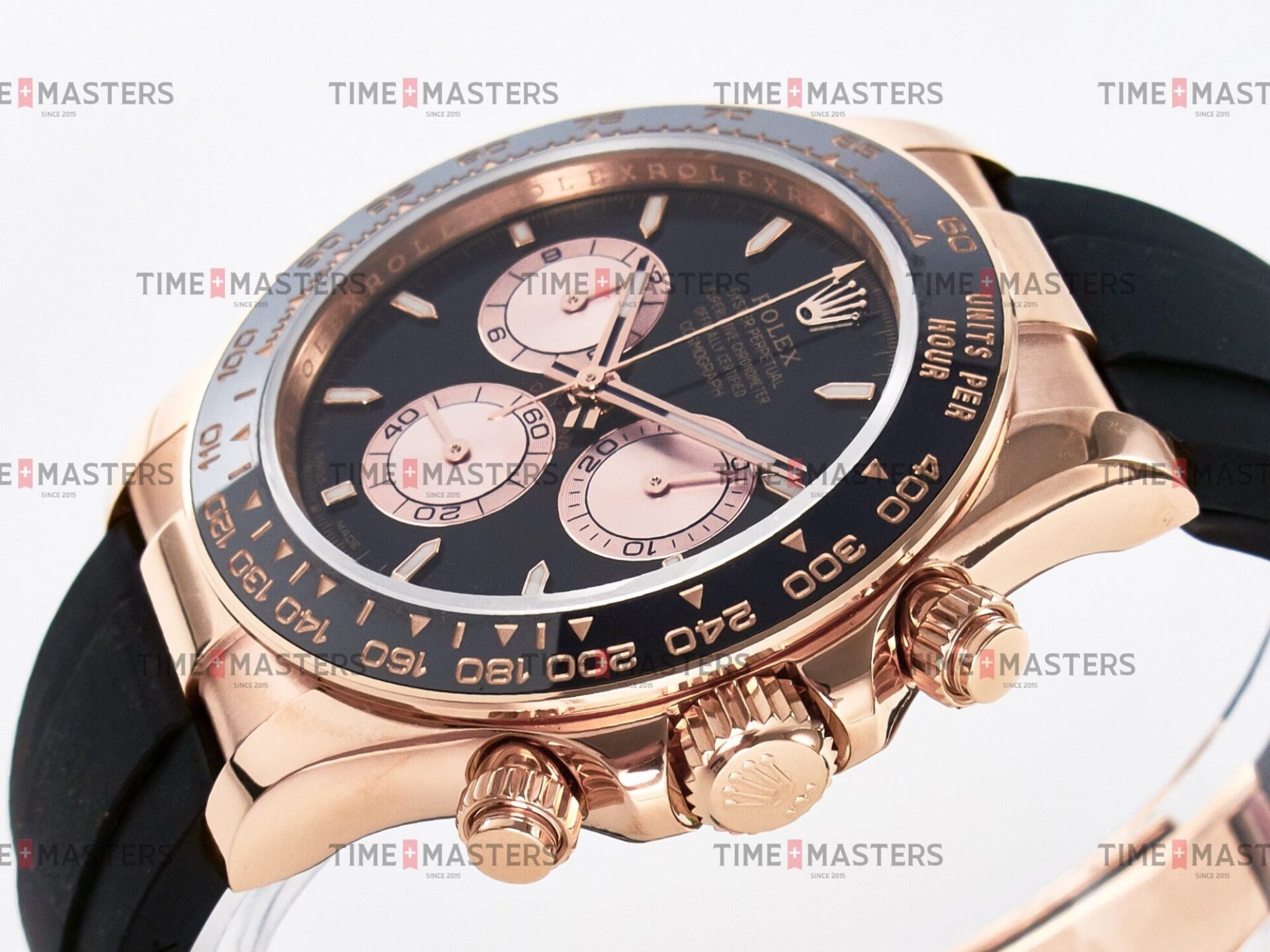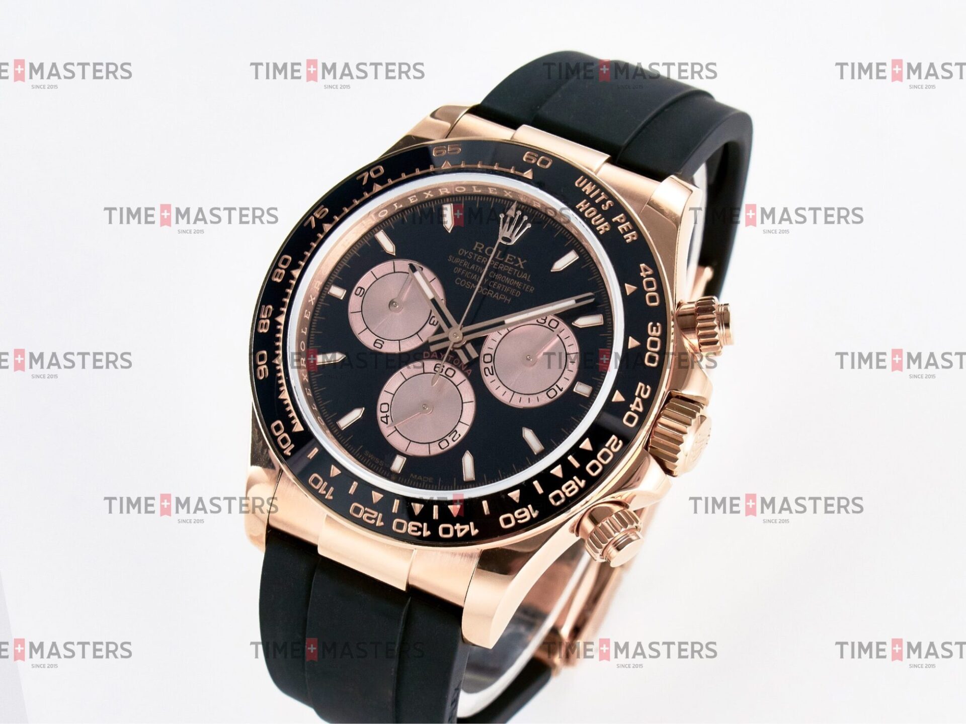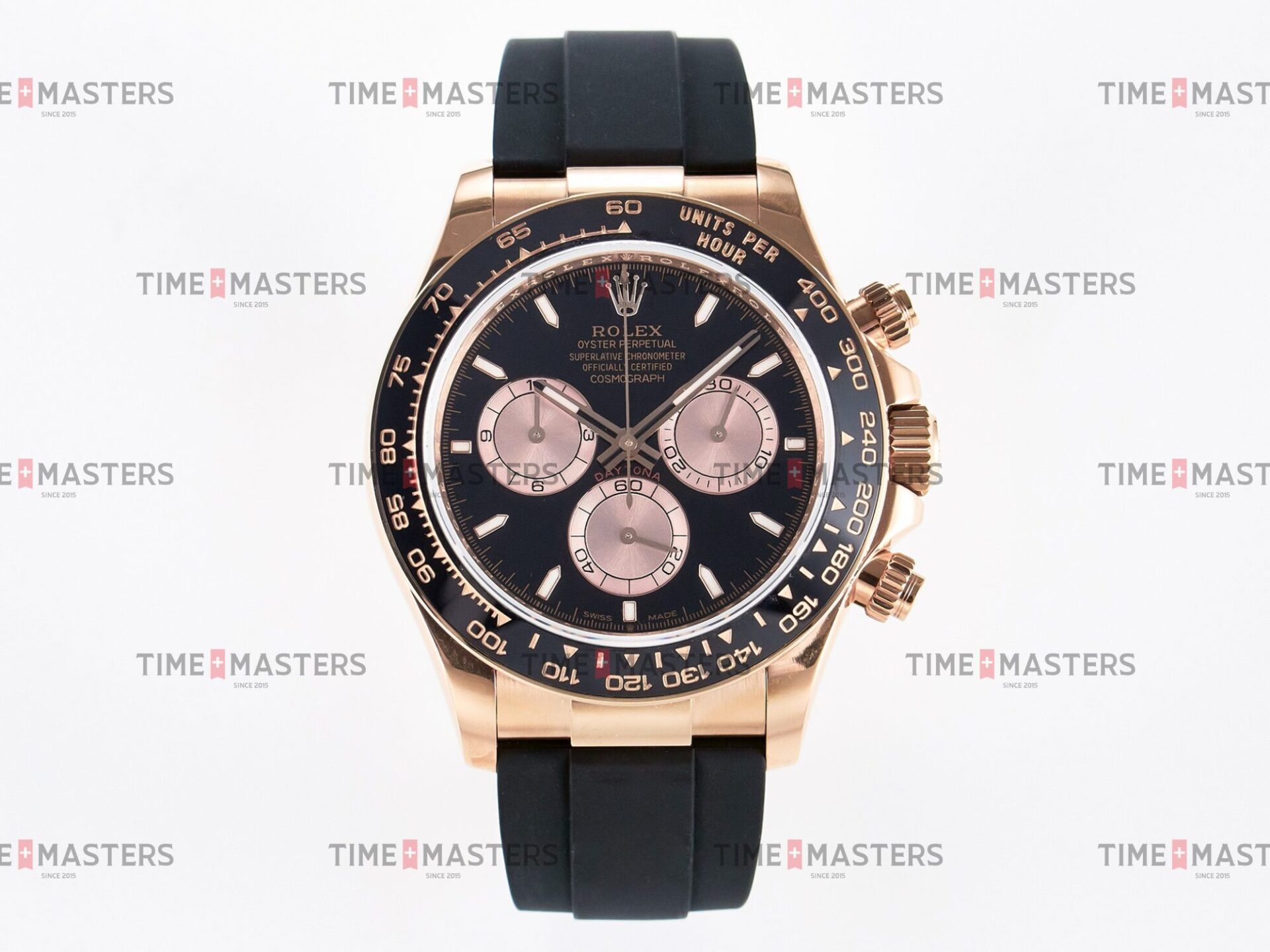 Rolex Daytona Cosmograph – 40 mm – רוז גולד לוח שחור רצעות אויסטרפלקס גימור קצה