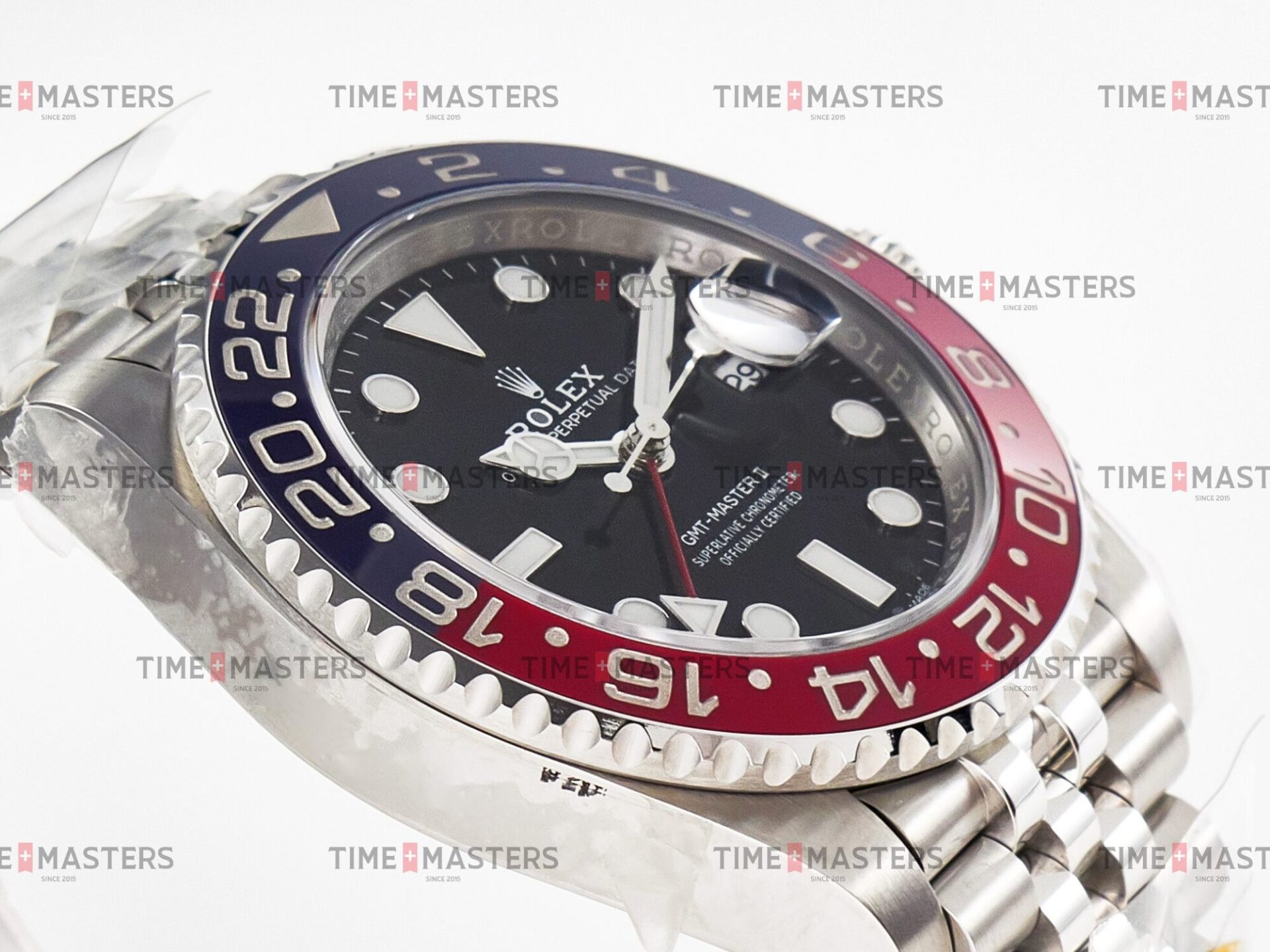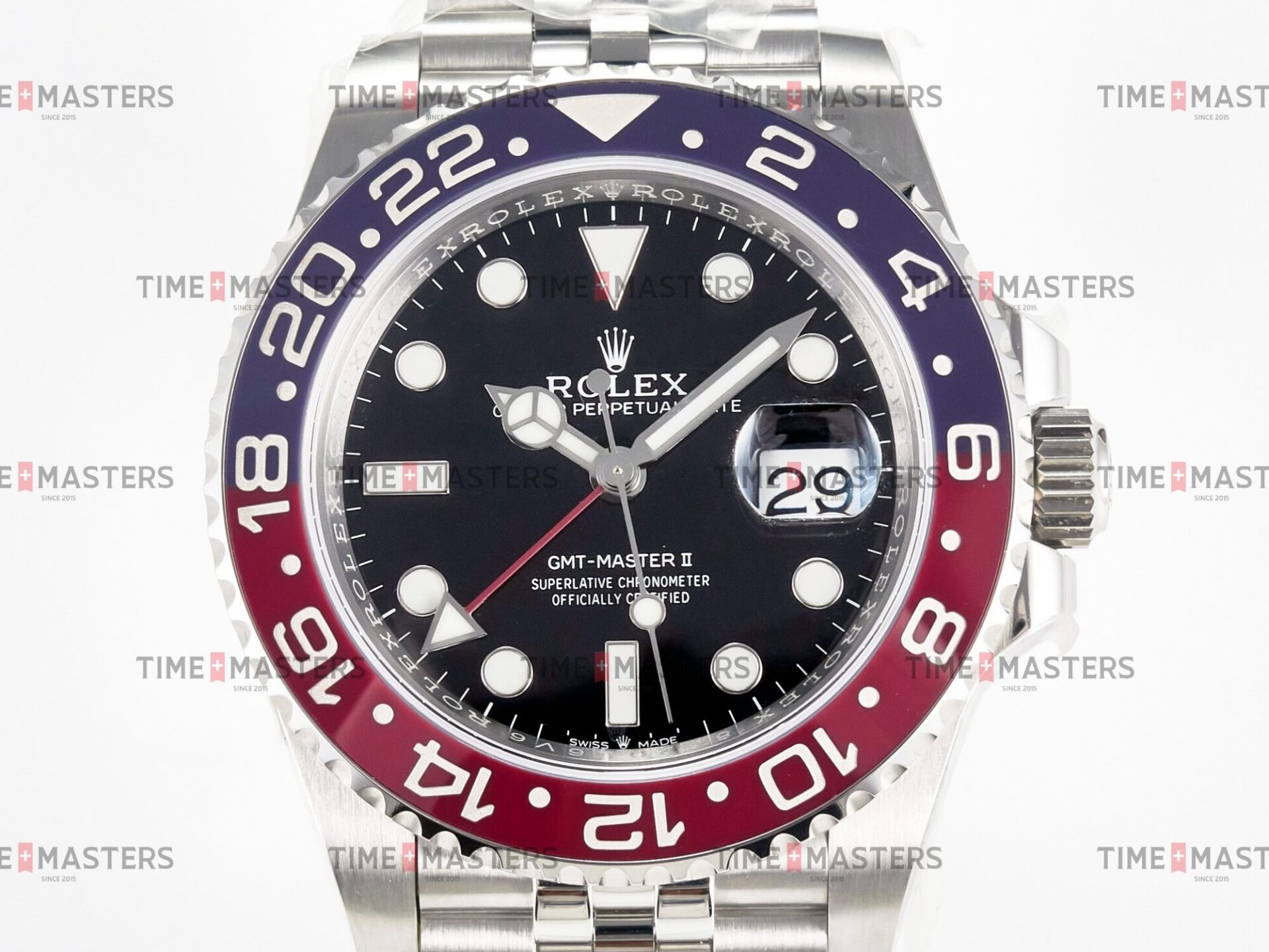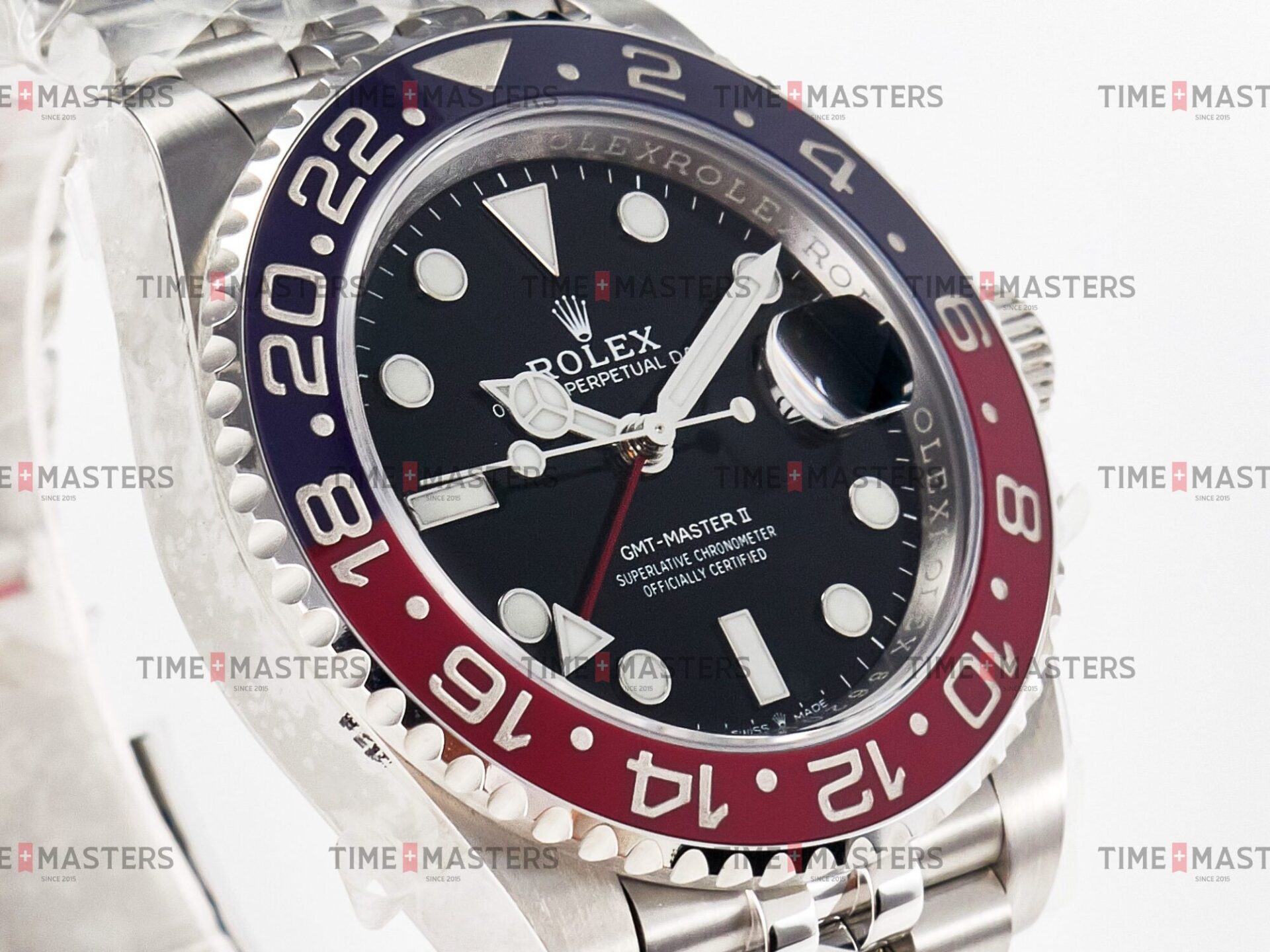 Rolex GMT-Master II – 40 mm – פלדה קרמידה כחולה ואדומה רצועת ג'ובלי – פפסי גימור קצה
