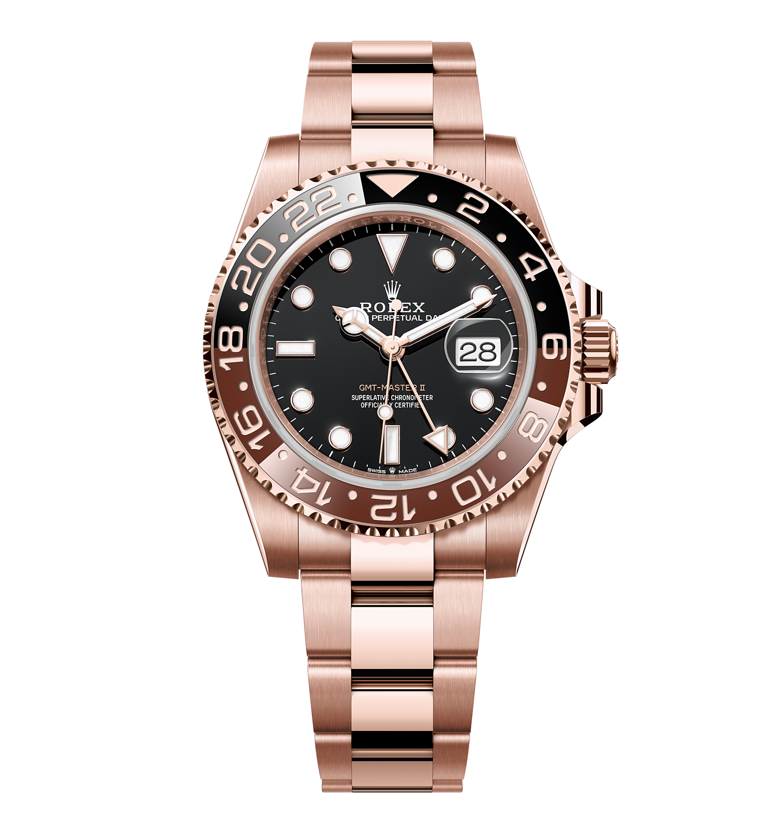 Rolex GMT-Master II – 40 mm – רוז גולד לוח שחור גימור שוויצרי