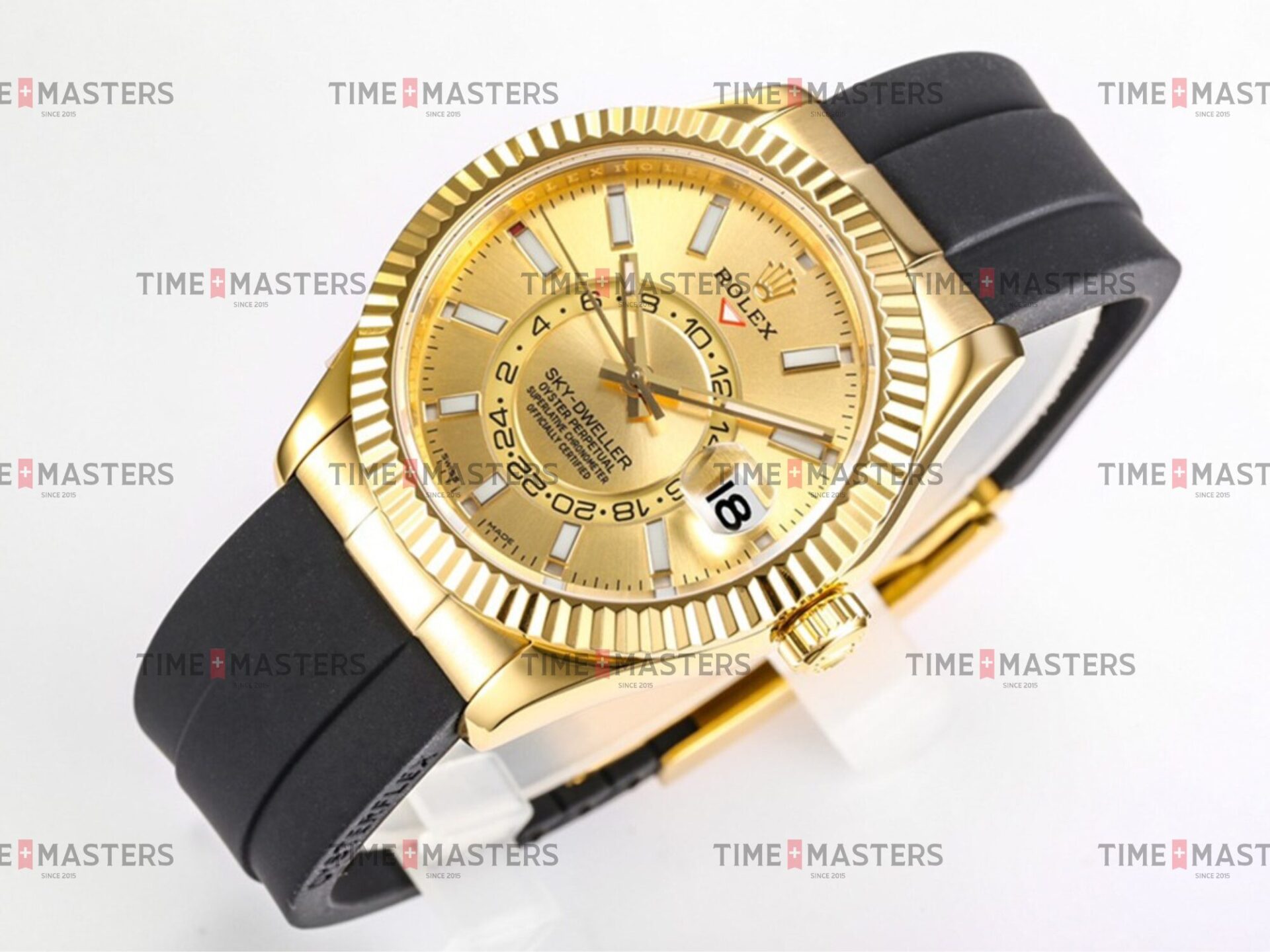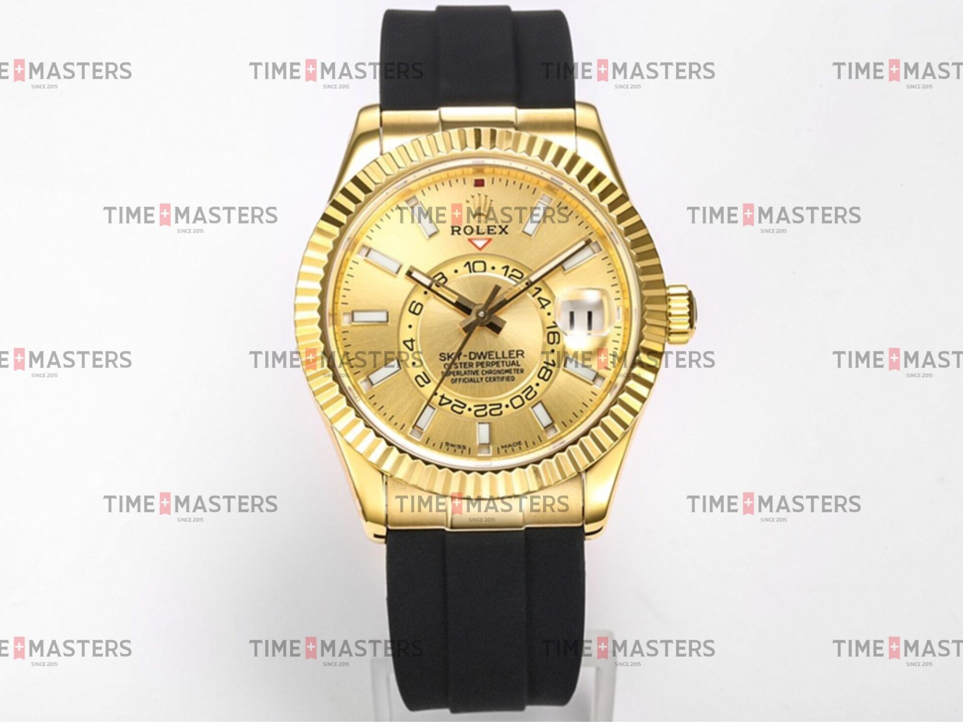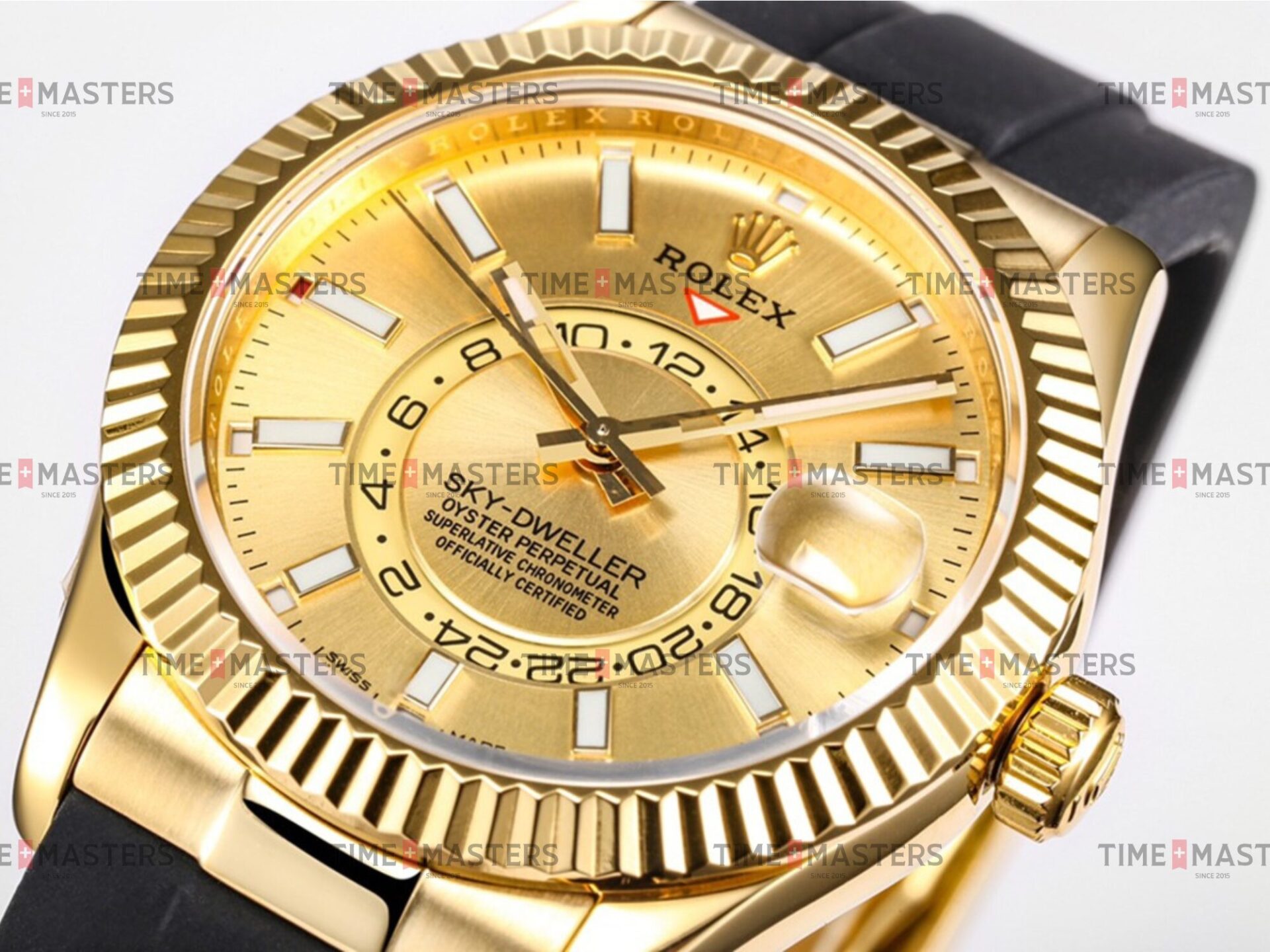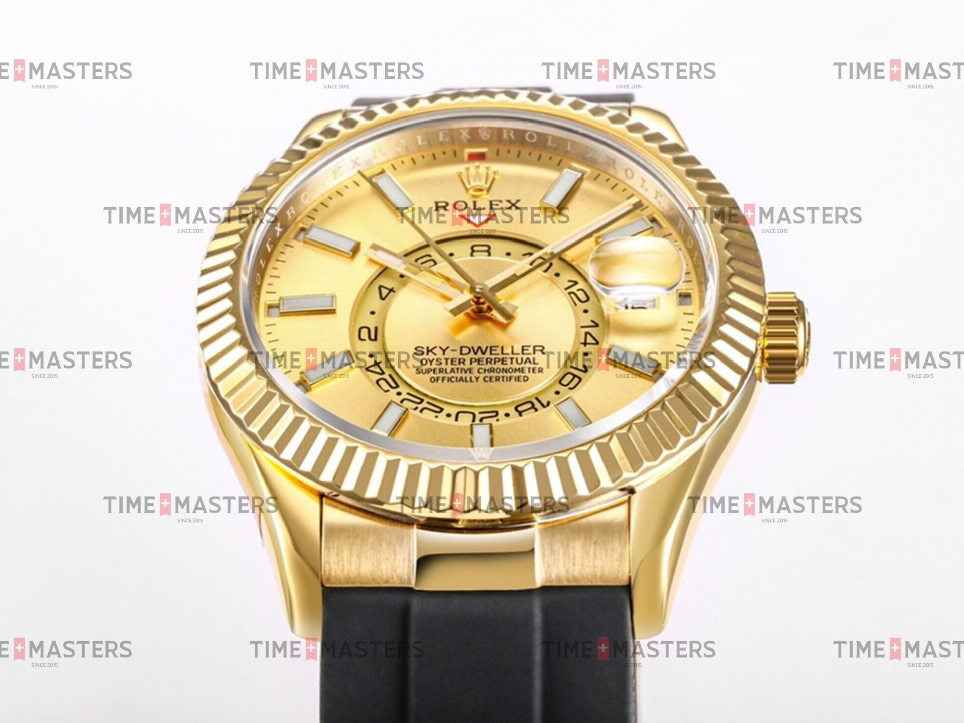 Rolex Sky Dweller – 42 mm – זהב צוהב לוח זהב צהוב רצועת אויטסרפלקס גימור קצה