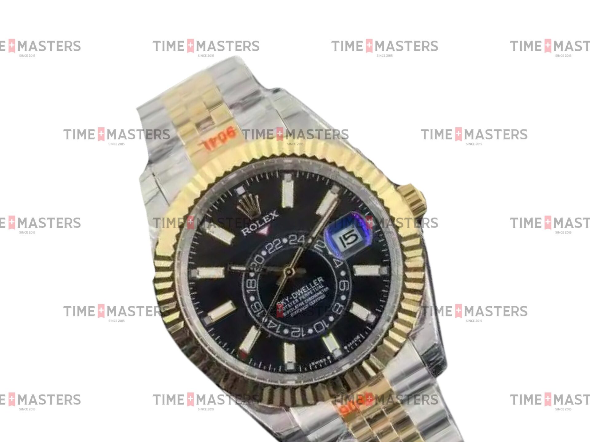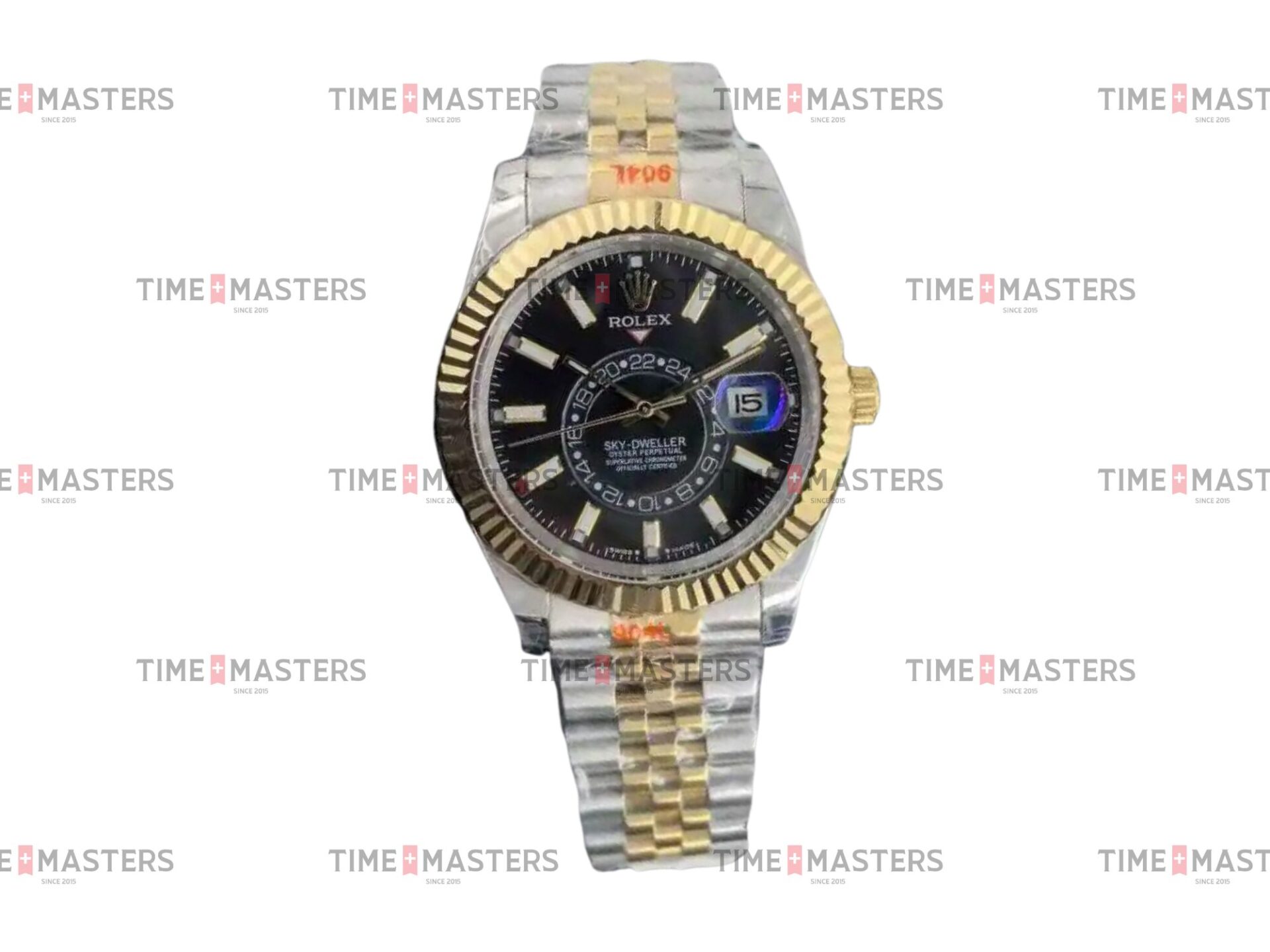Rolex Sky Dweller – 42 mm – טו טון זהב צוהב לוח שחור רצועת ג׳ובלי גימור שוויצרי