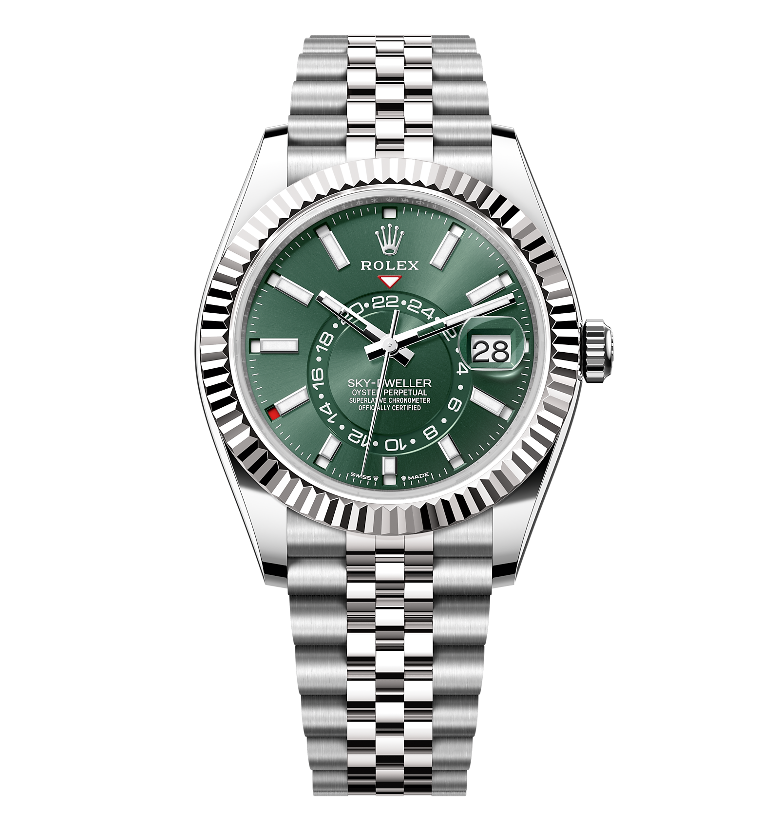 Rolex Sky Dweller – 42 mm פלדה לוח ירוק רצועת ג׳ובלי גימור קצה