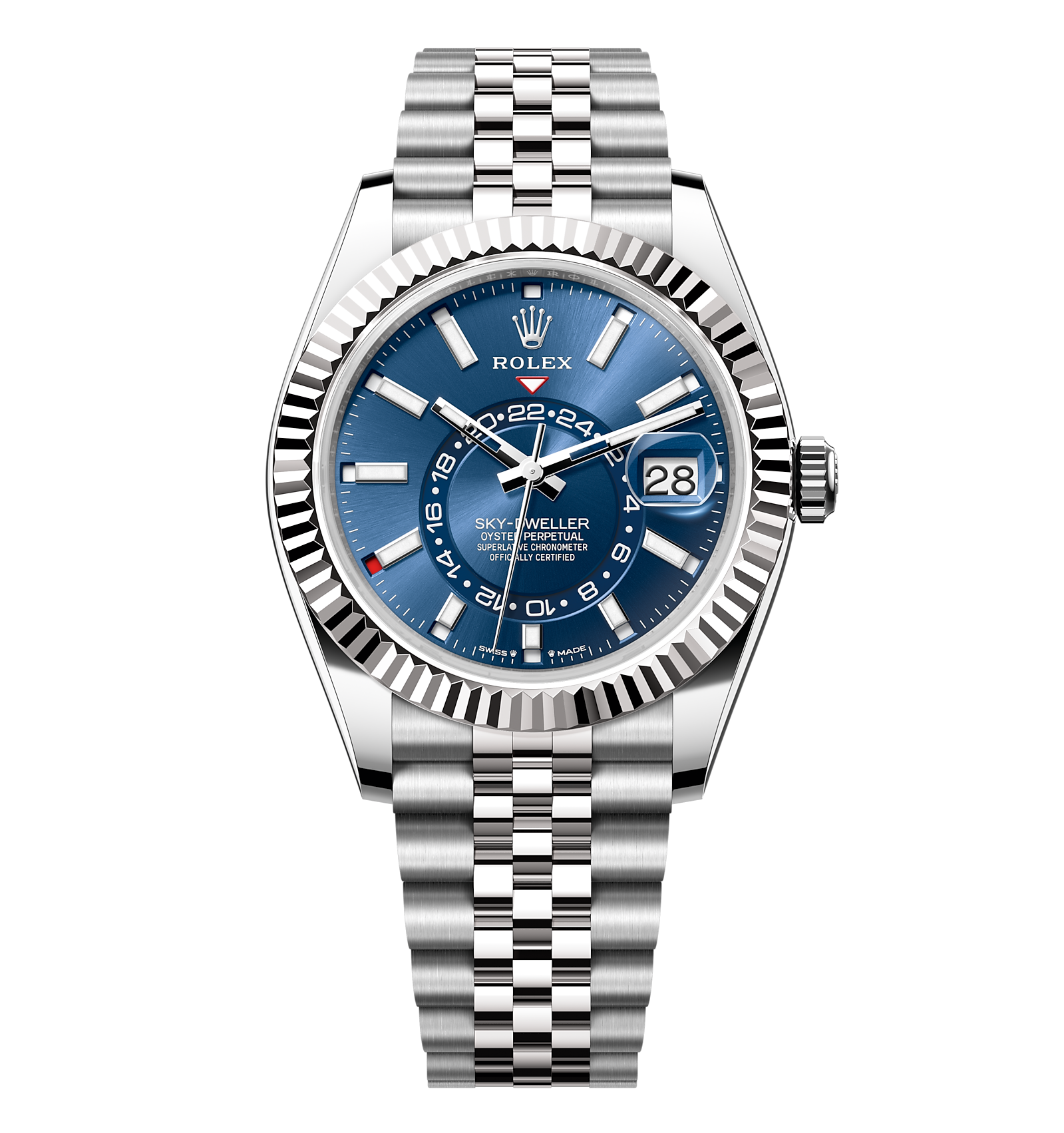 Rolex Sky Dweller – 42 mm – פלדה לוח כחול רצועת ג׳ובלי גימור קצה