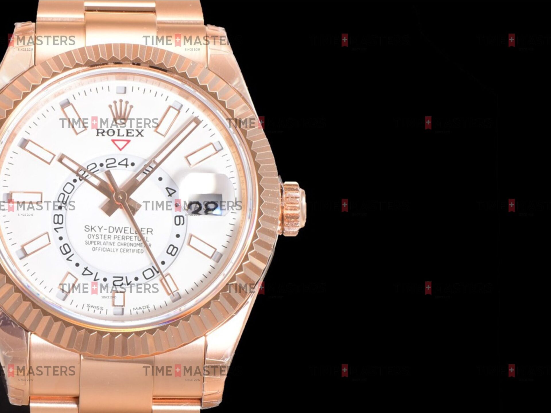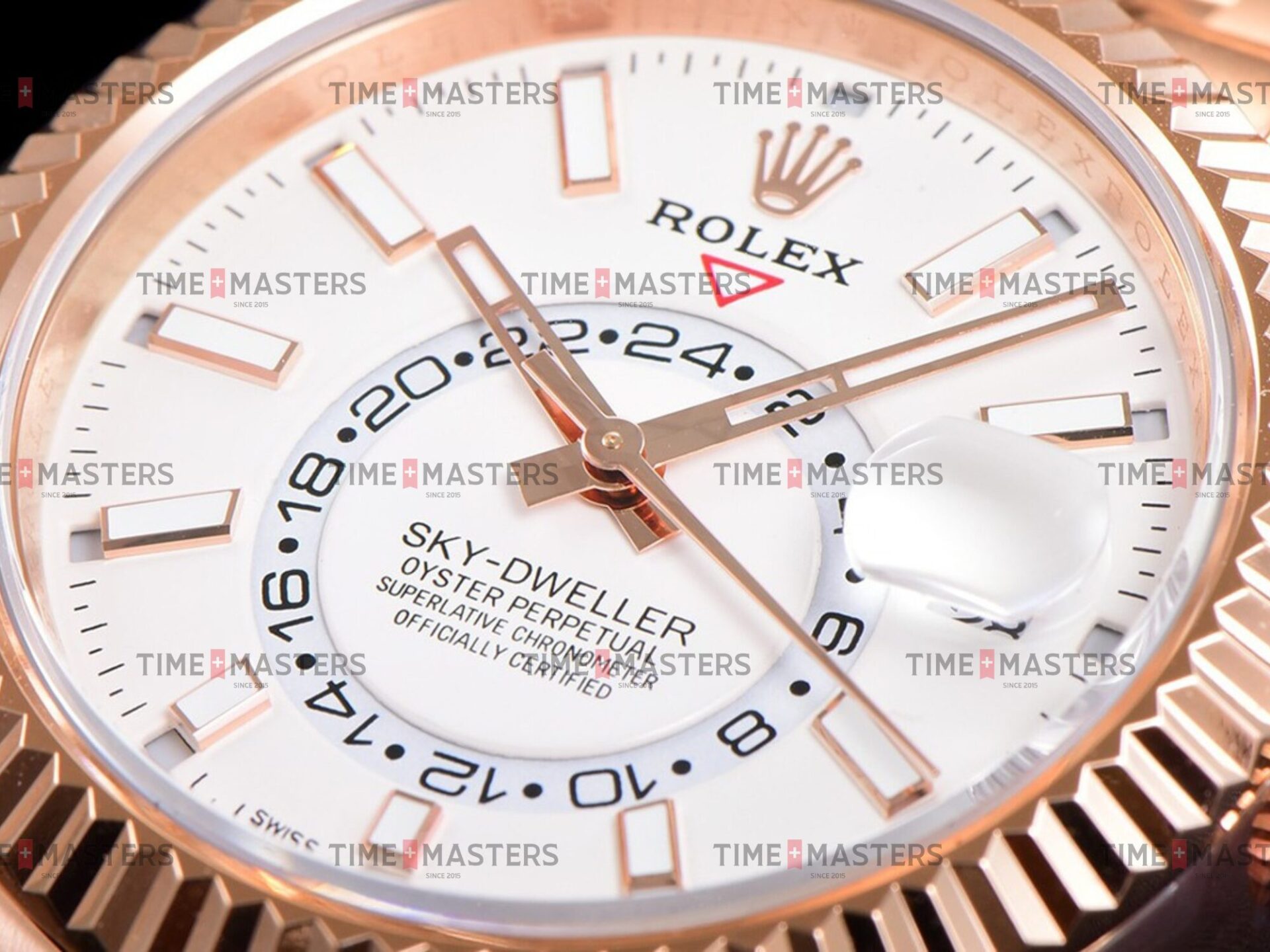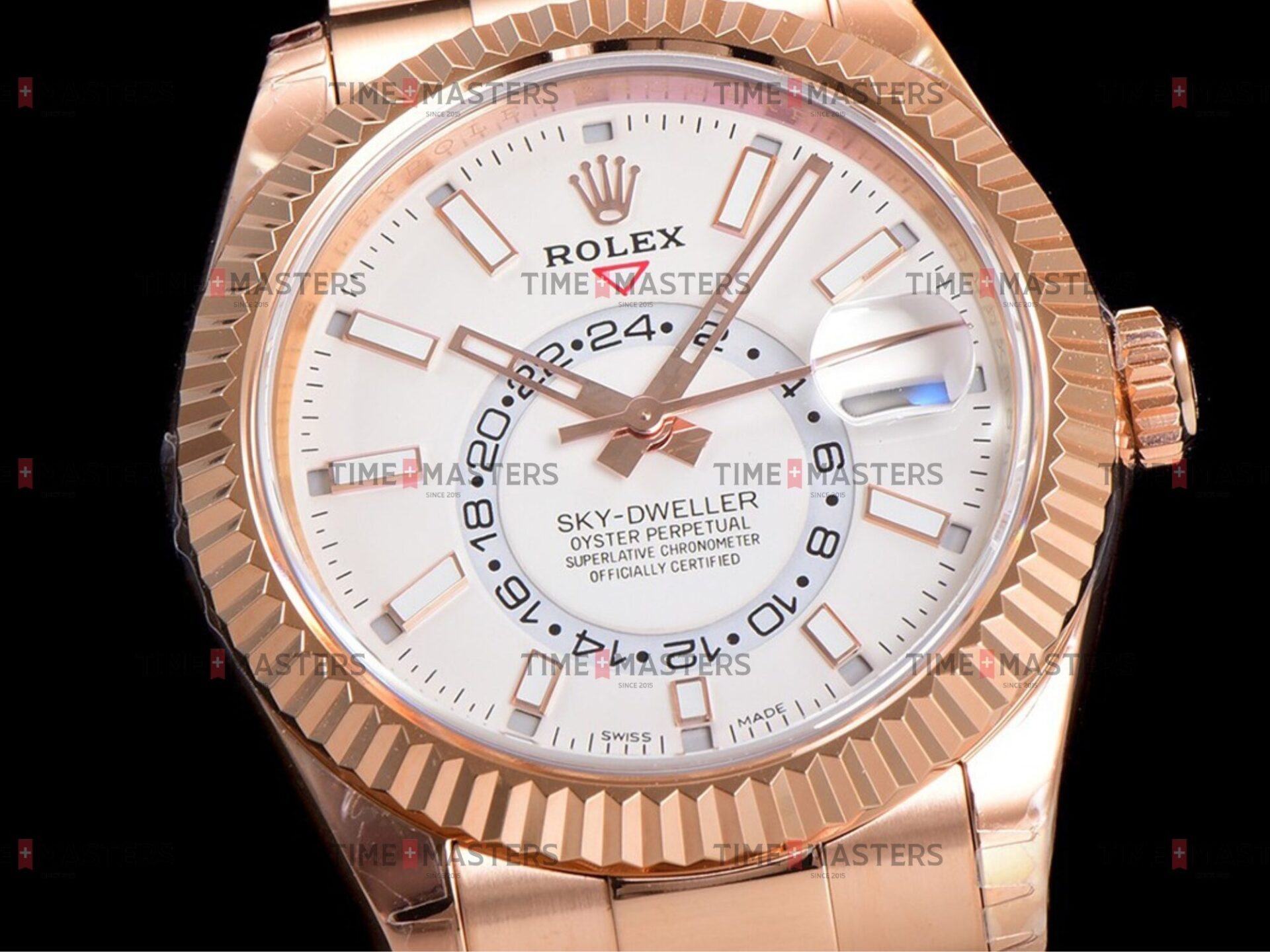 Rolex Sky Dweller – 42 mm – רוז גולד לוח לבן גימור קצה
