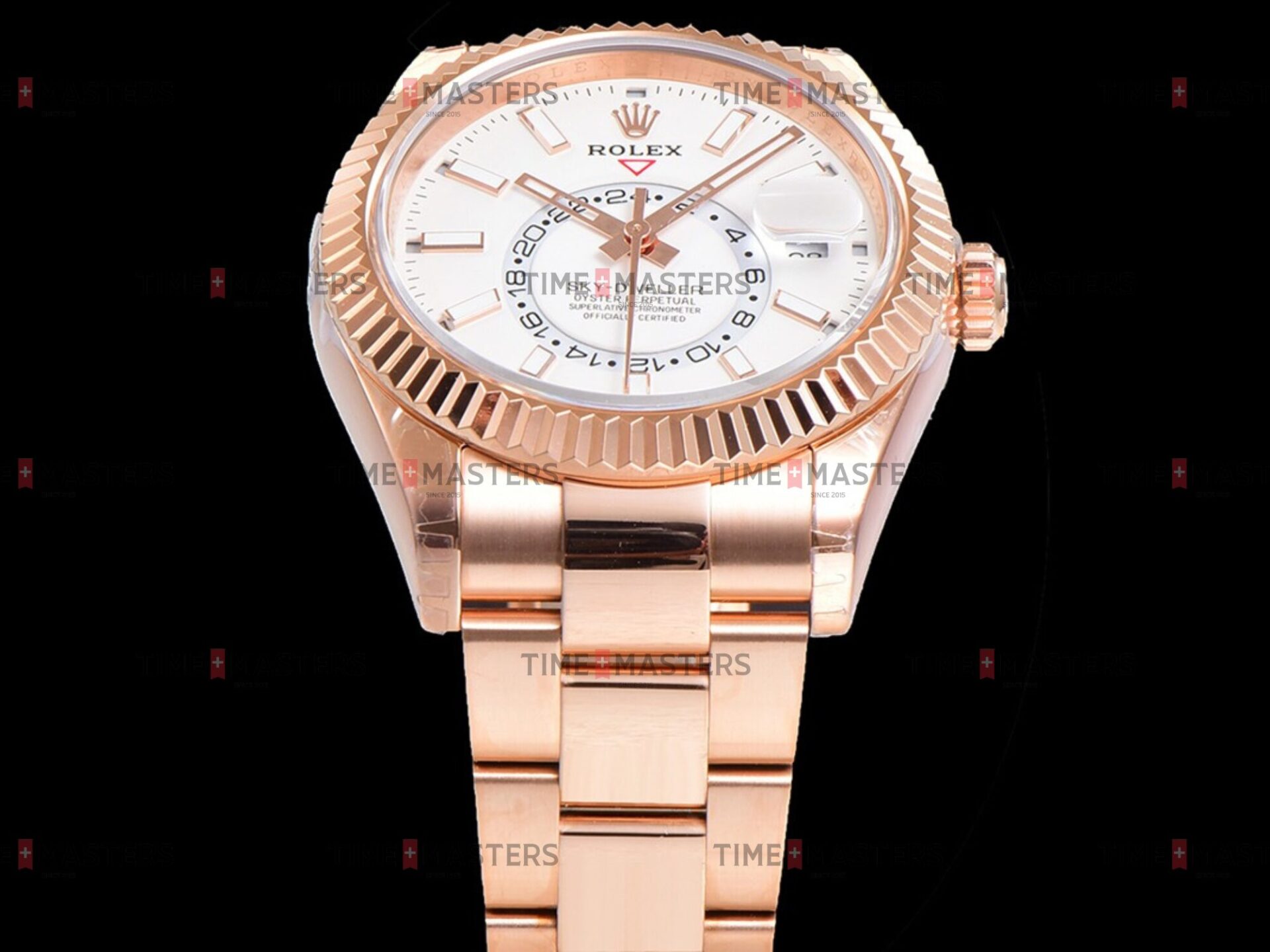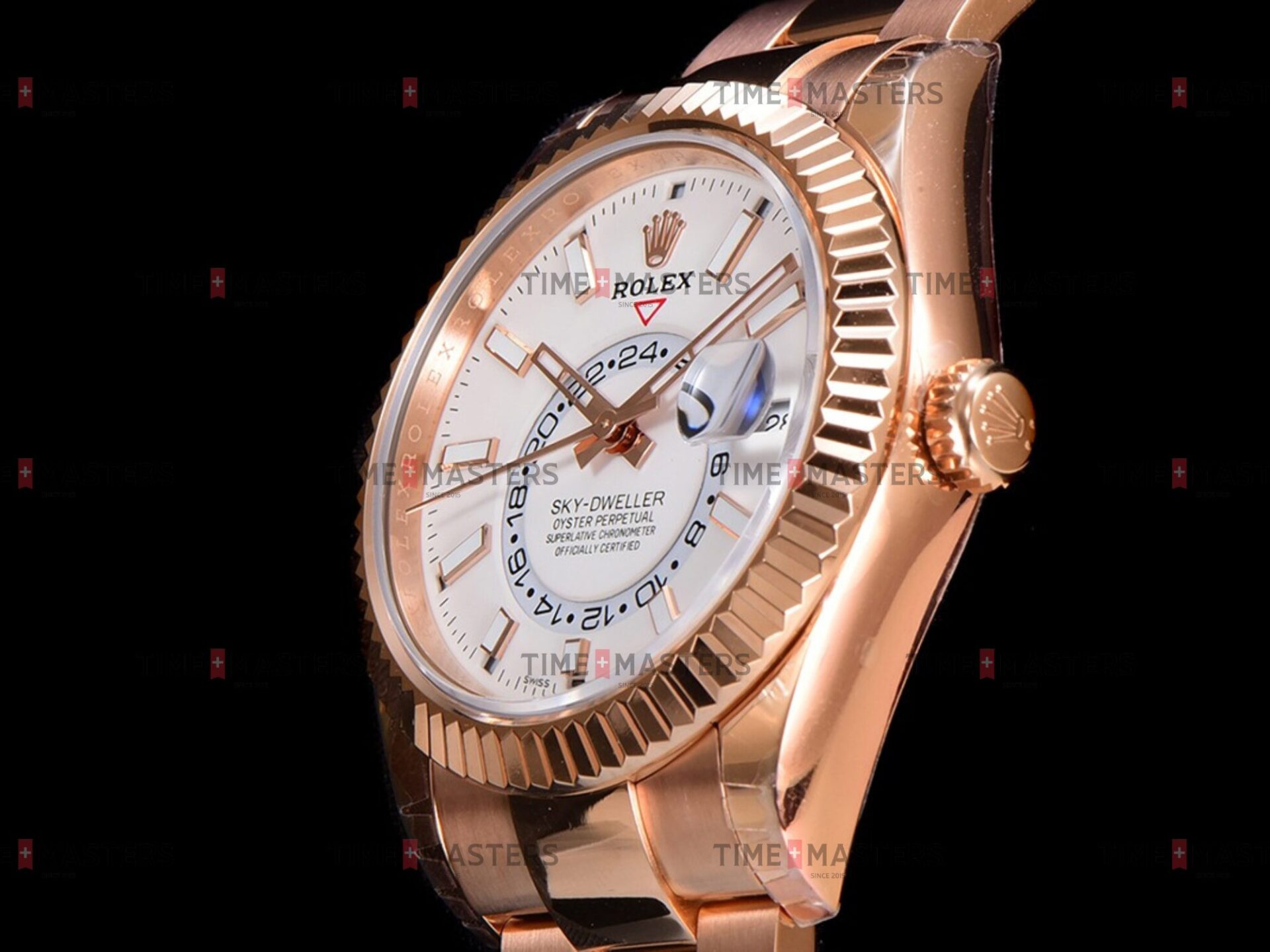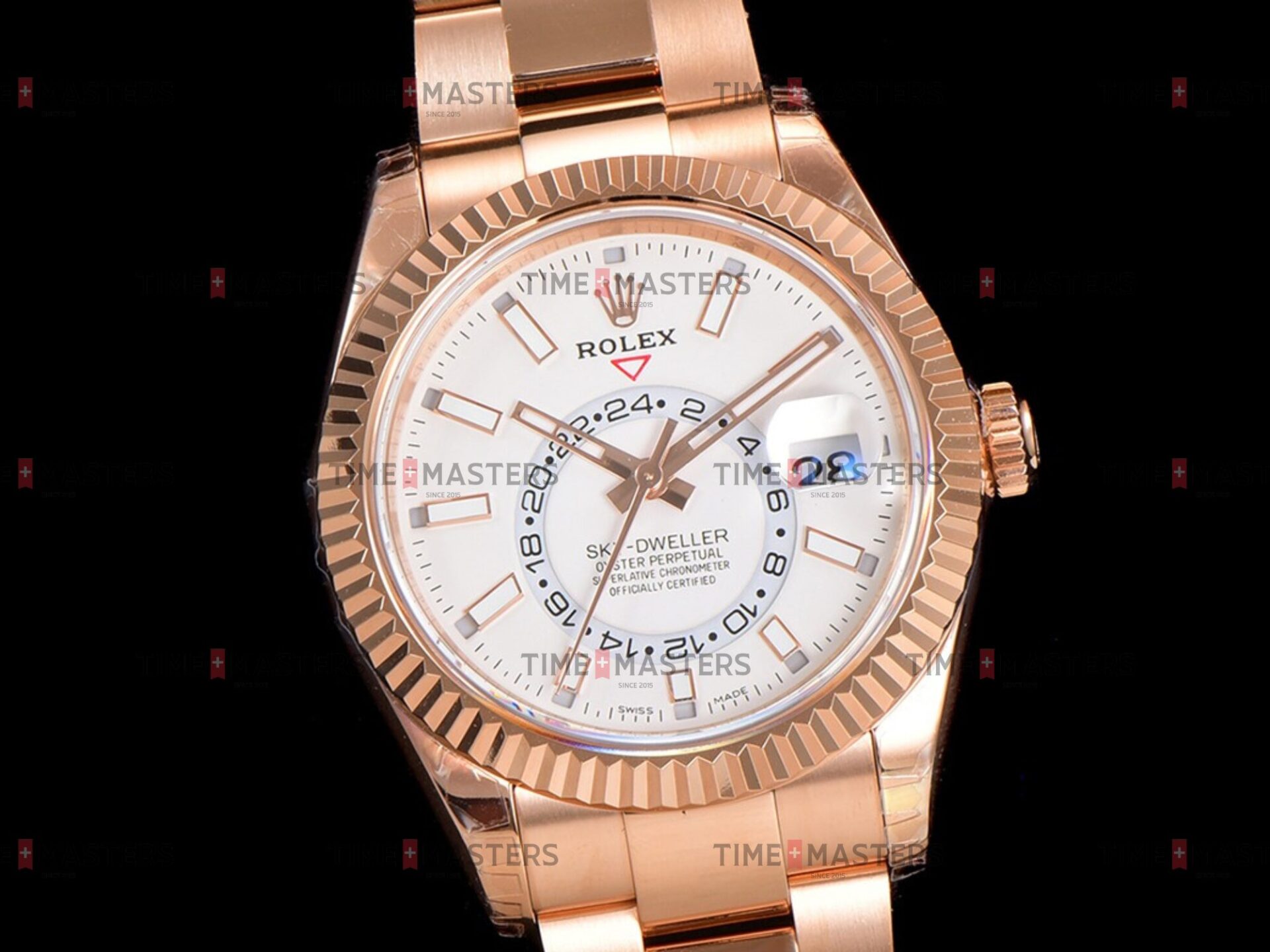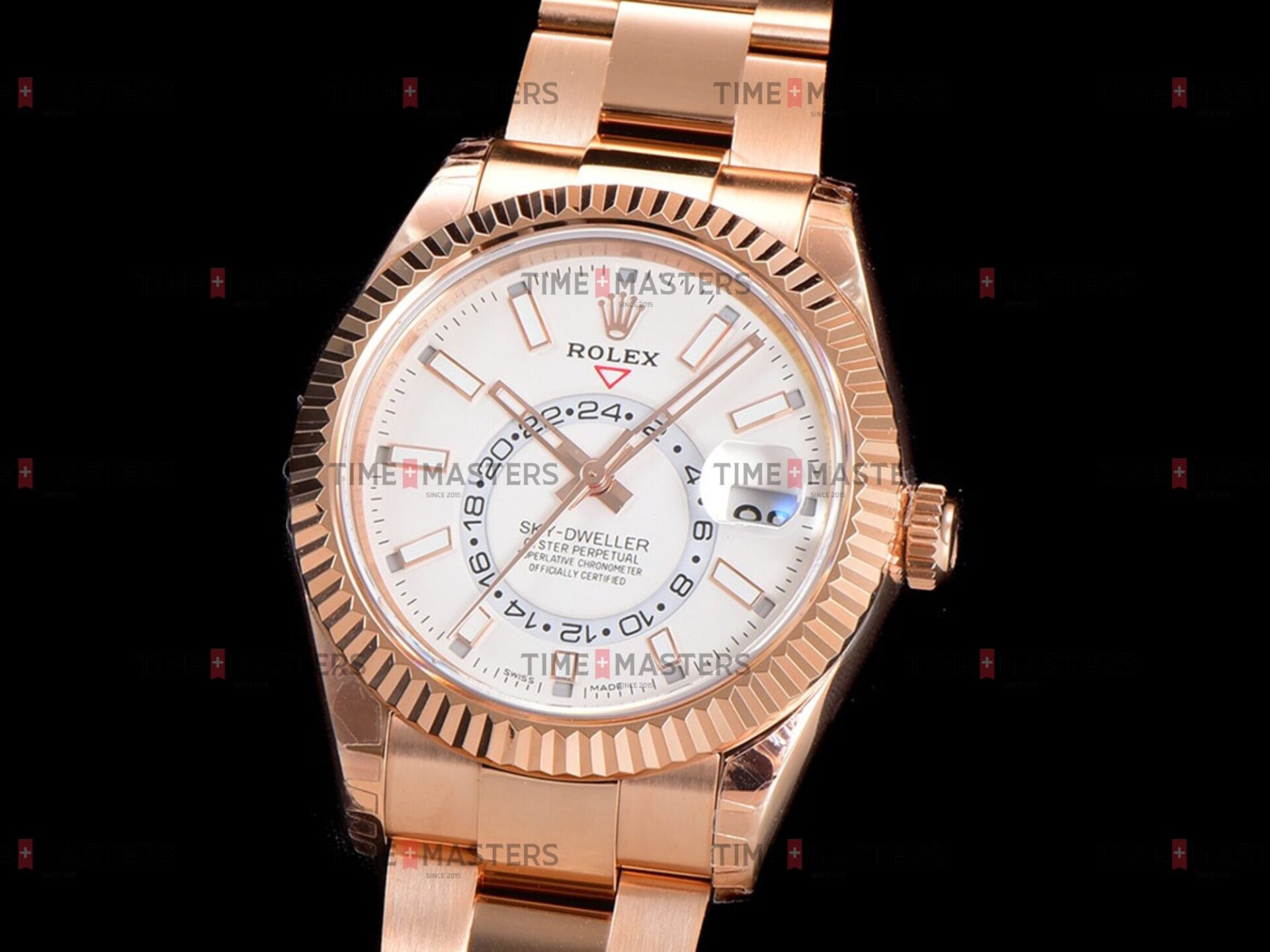 Rolex Sky Dweller – 42 mm – רוז גולד לוח לבן גימור קצה