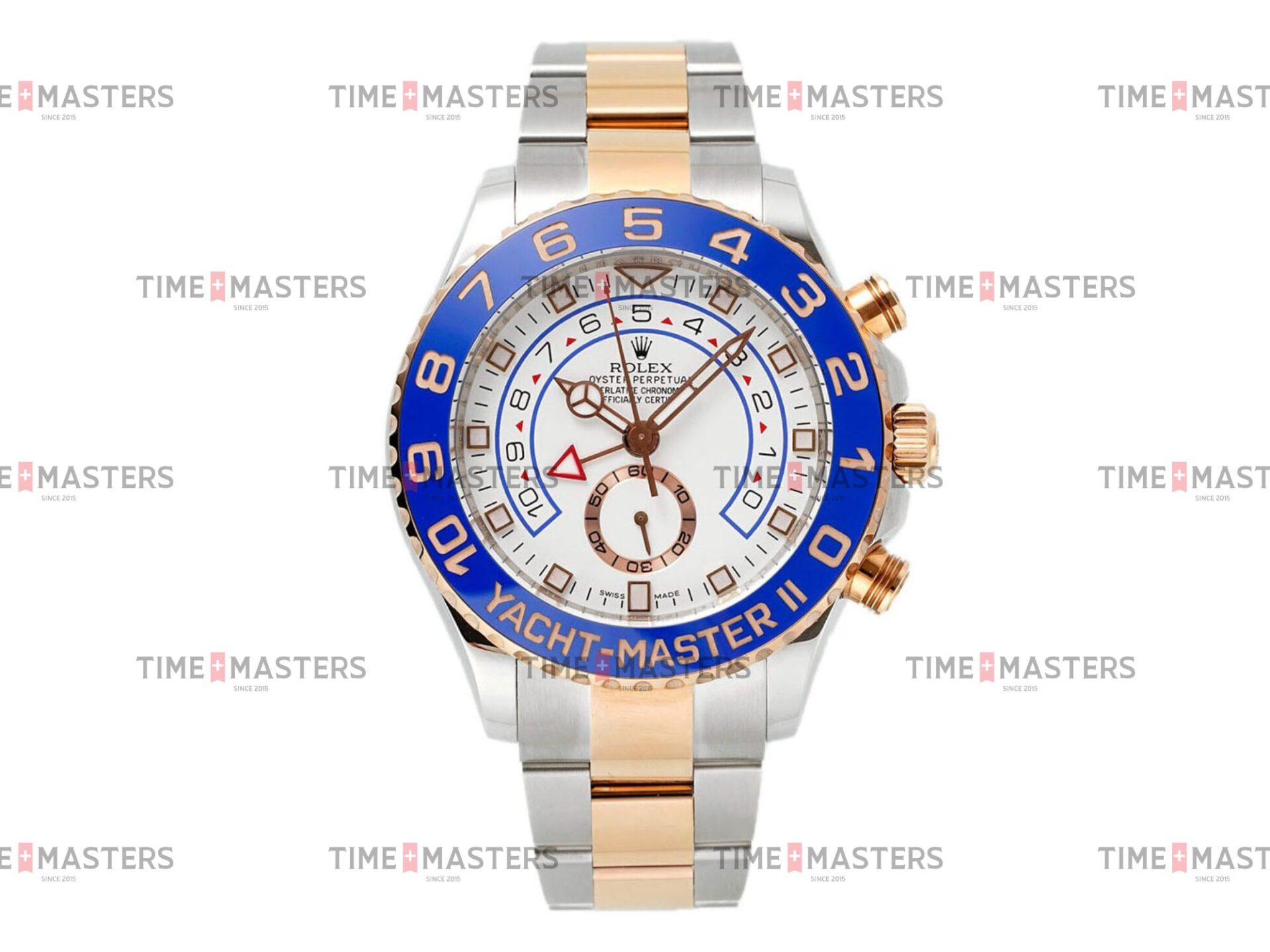 Rolex Yacht-Master II – 44 mm – טו טון רוז גולד באזל כחול לוח לבן גימור קצה